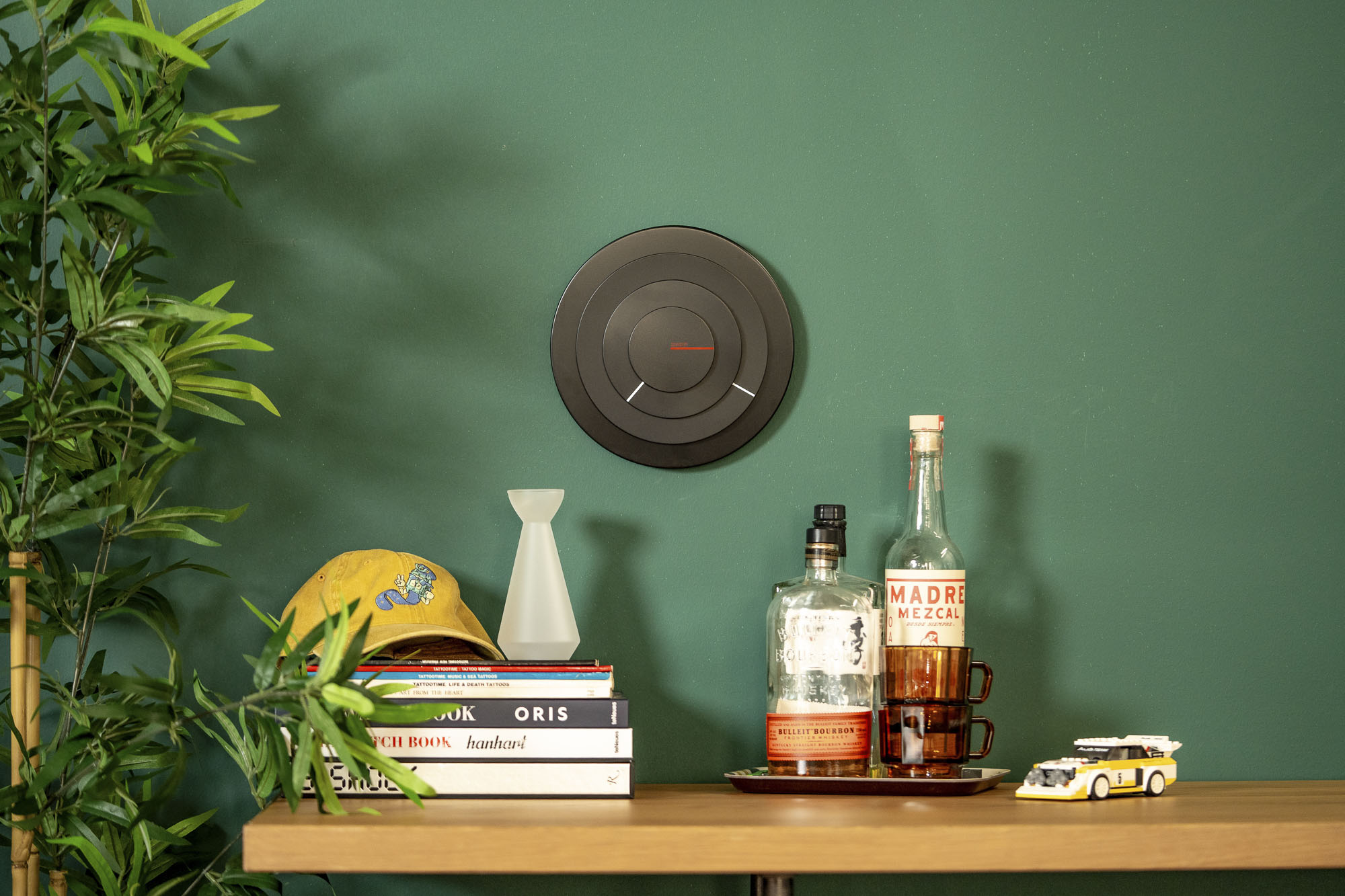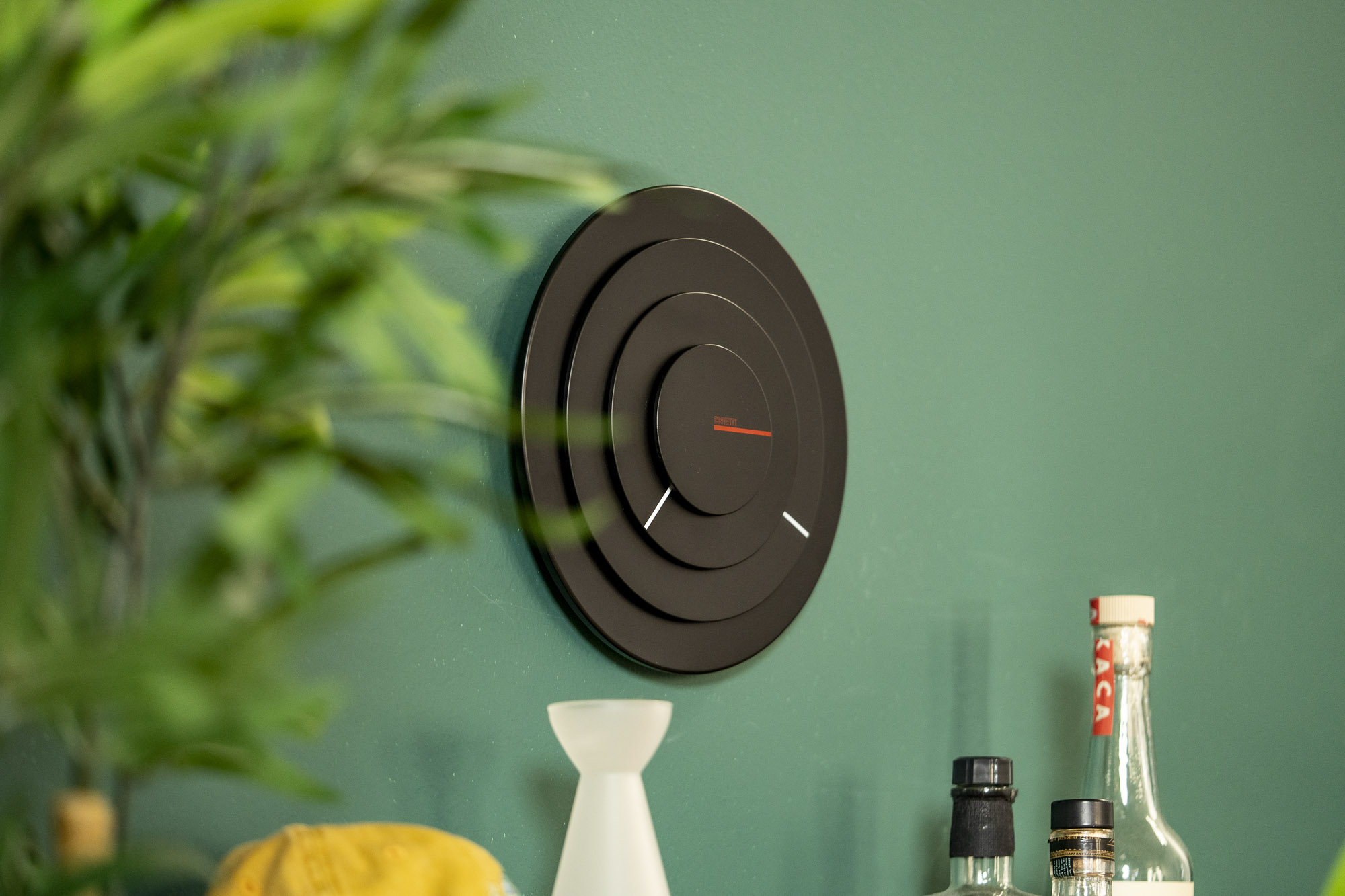 Unlike traditional clocks, the Space Wall Clock tells time through three individual rotating discs, each representing a different unit of time. The largest disc marks the hours, the medium-sized disc represents the minutes, and the smallest disc tracks the seconds. The current time is indicated by the alignment of the cutout markers on each disc as they rotate in sync. While unconventional, this display offers a fascinating and artistic way to track time, making the clock as much a sculptural centerpiece as a functional timepiece.