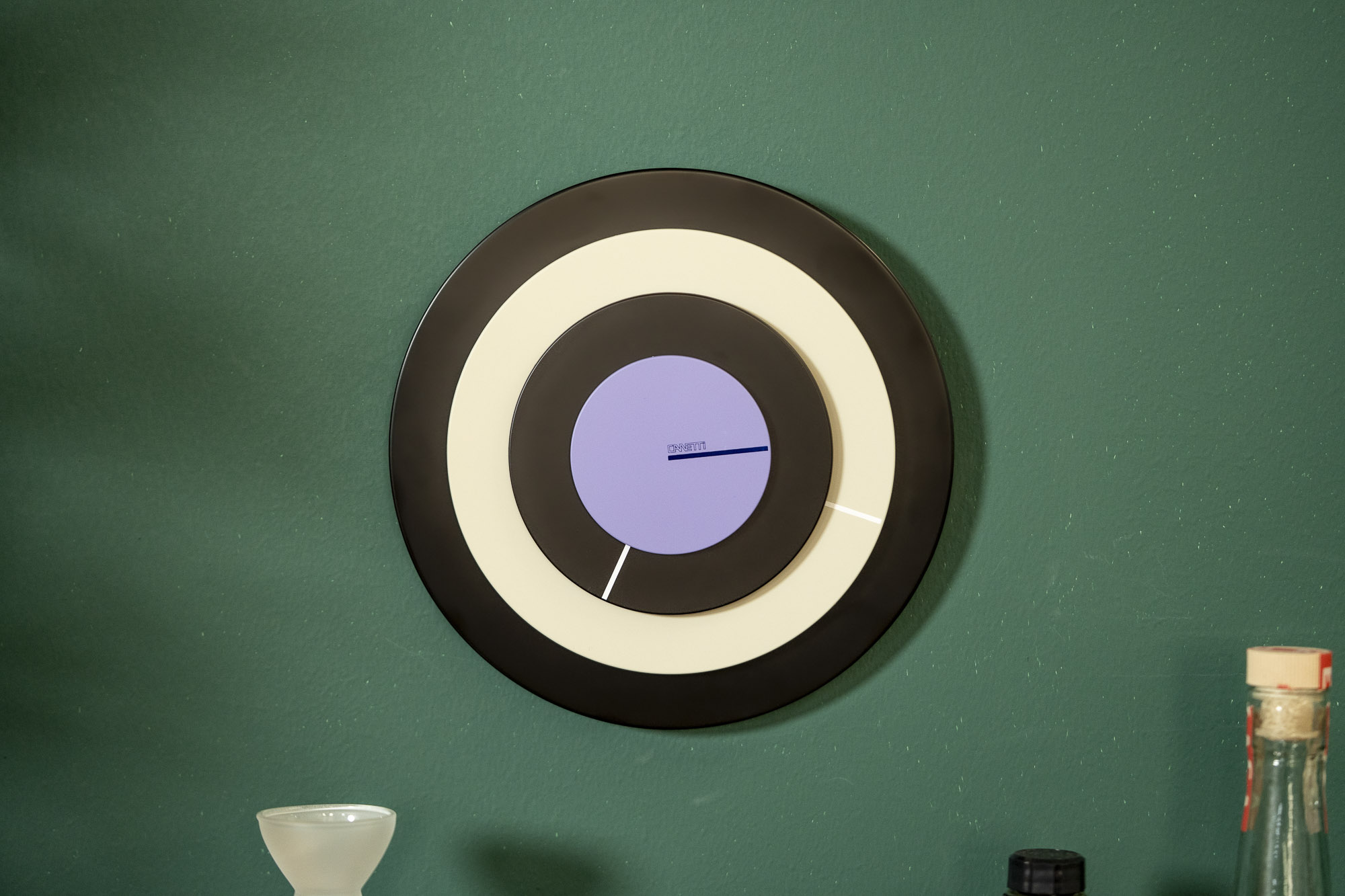 A bold statement in postmodern design, the Canetti Space Wall Clock is a striking, award-winning timepiece originally introduced in 1984 and now reissued to mark Canetti’s 40th anniversary. Featuring a unique layered disc design, the clock’s three overlapping time-telling discs move smoothly around a central axis, creating a mesmerizing visual effect. Available in Purple, Black, and a Multicolor combination of Purple, Gray, and Black, the Space Wall Clock embodies Canetti’s innovative and unconventional approach to timekeeping.