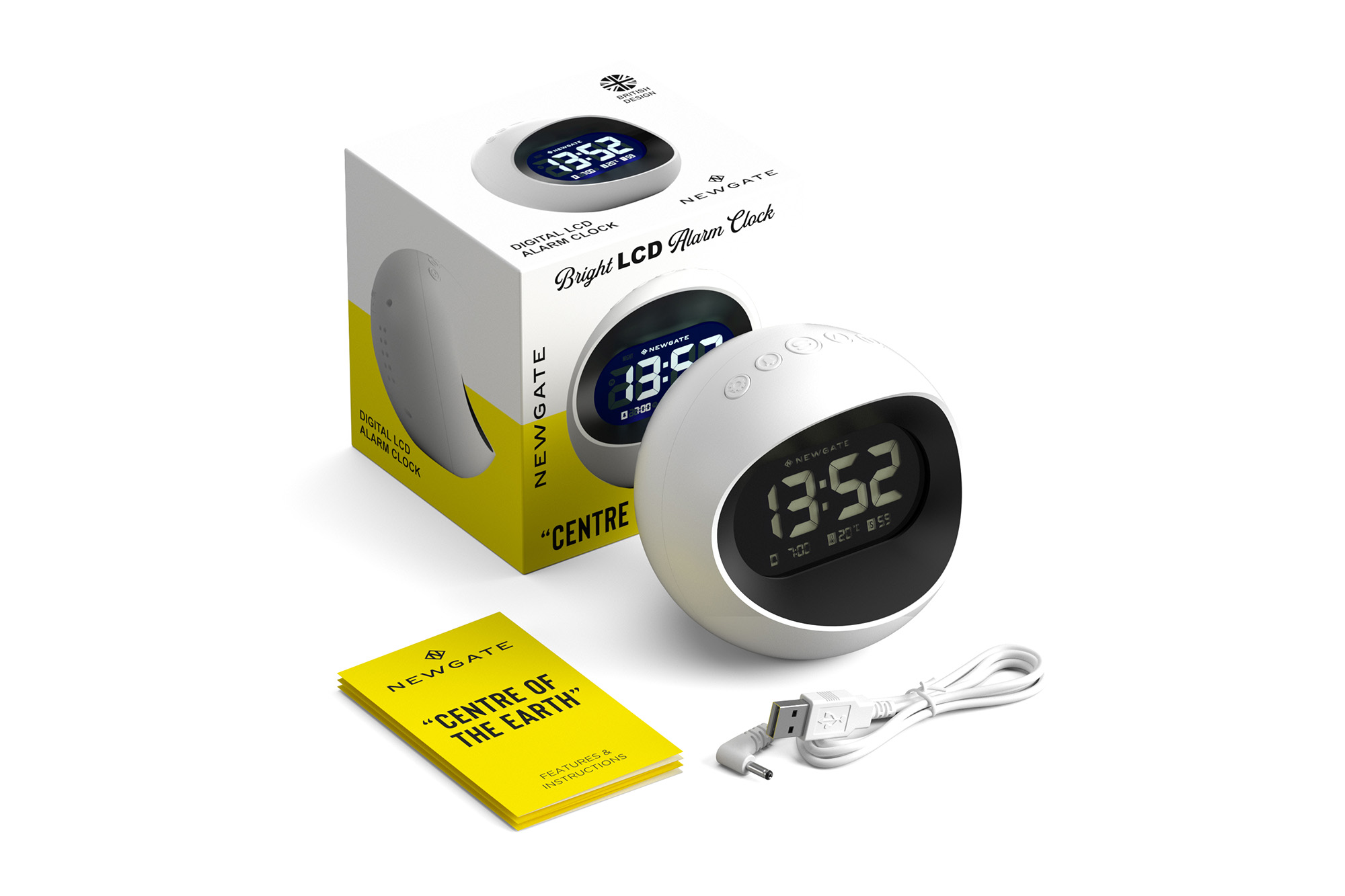 In terms of functionality, the unique British designed alarm clock incorporates a 12 or 24 hour time display, a digital alarm and snooze function, and temperature display. It can either be powered by three AAA batteries (not included) or a USB cable.
