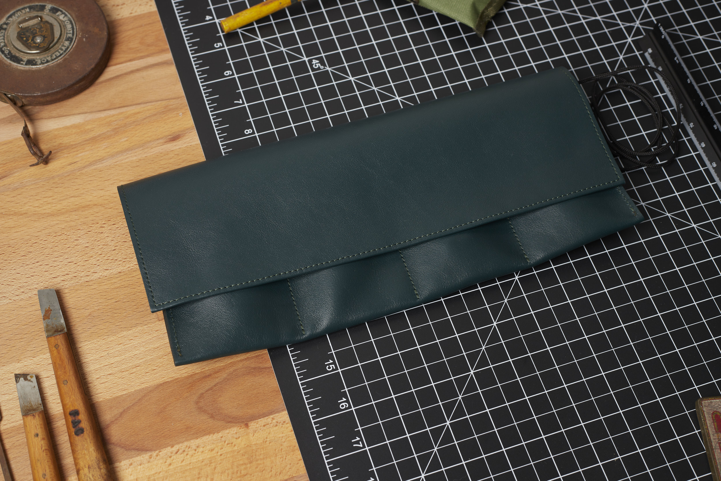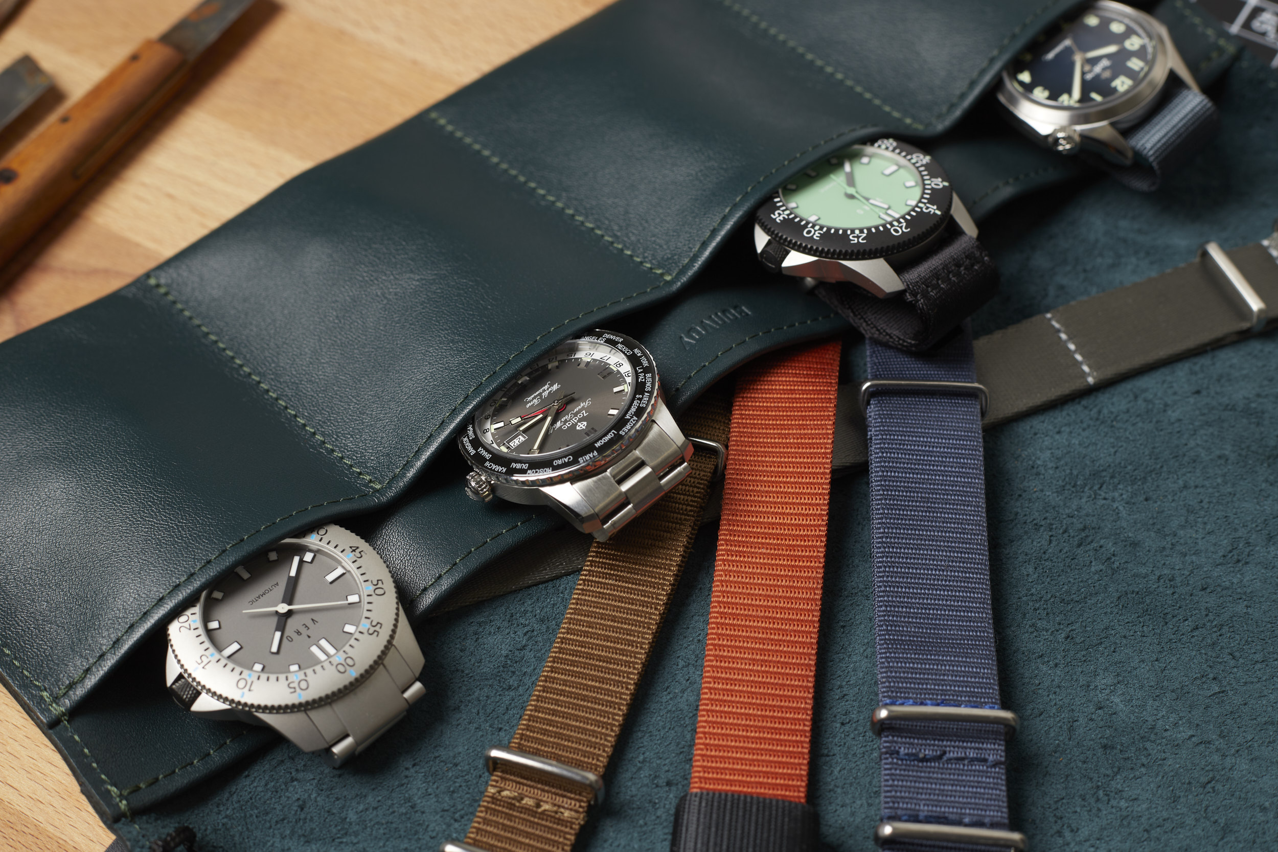 Designed to house four wristwatches with a large additional pocket for straps and tools, the Nappa Leather Watch Roll achieves more than most rolls with less. The roll is secured with a tether of braided cord and an Italian vegetable-tanned Buttero leather toggle. This keeps it closed when in your bag and on the go.