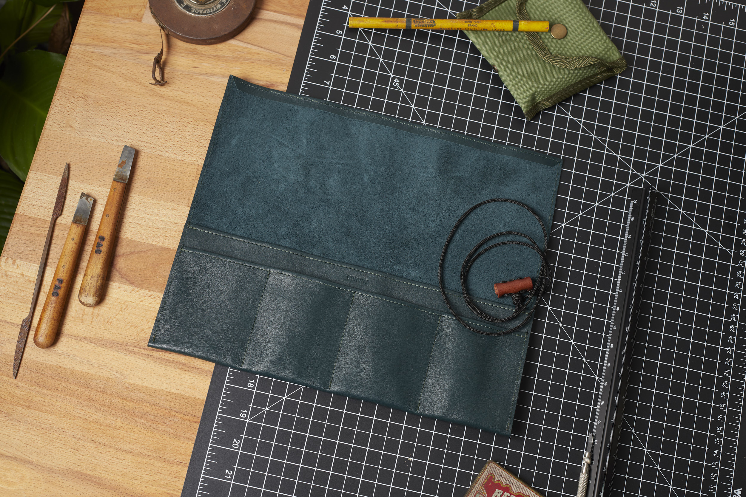 Convoy Co. started in 2013 as a creative outlet to release a collection of leather goods and to collaborate with various companies for product development work. In 2018, they moved into their current design studio in Kuala Lumpur, Malaysia. Drawing inspiration from modernist architecture and the tropical environment, they pride themselves on creating original designs that are the result of constant refinements. Each object is made by hand using natural materials such as leather and suede, ensuring that each piece is unique. Their designs are built on a foundation of superb construction, functionality and minimal material wastage to reduce environmental impact.