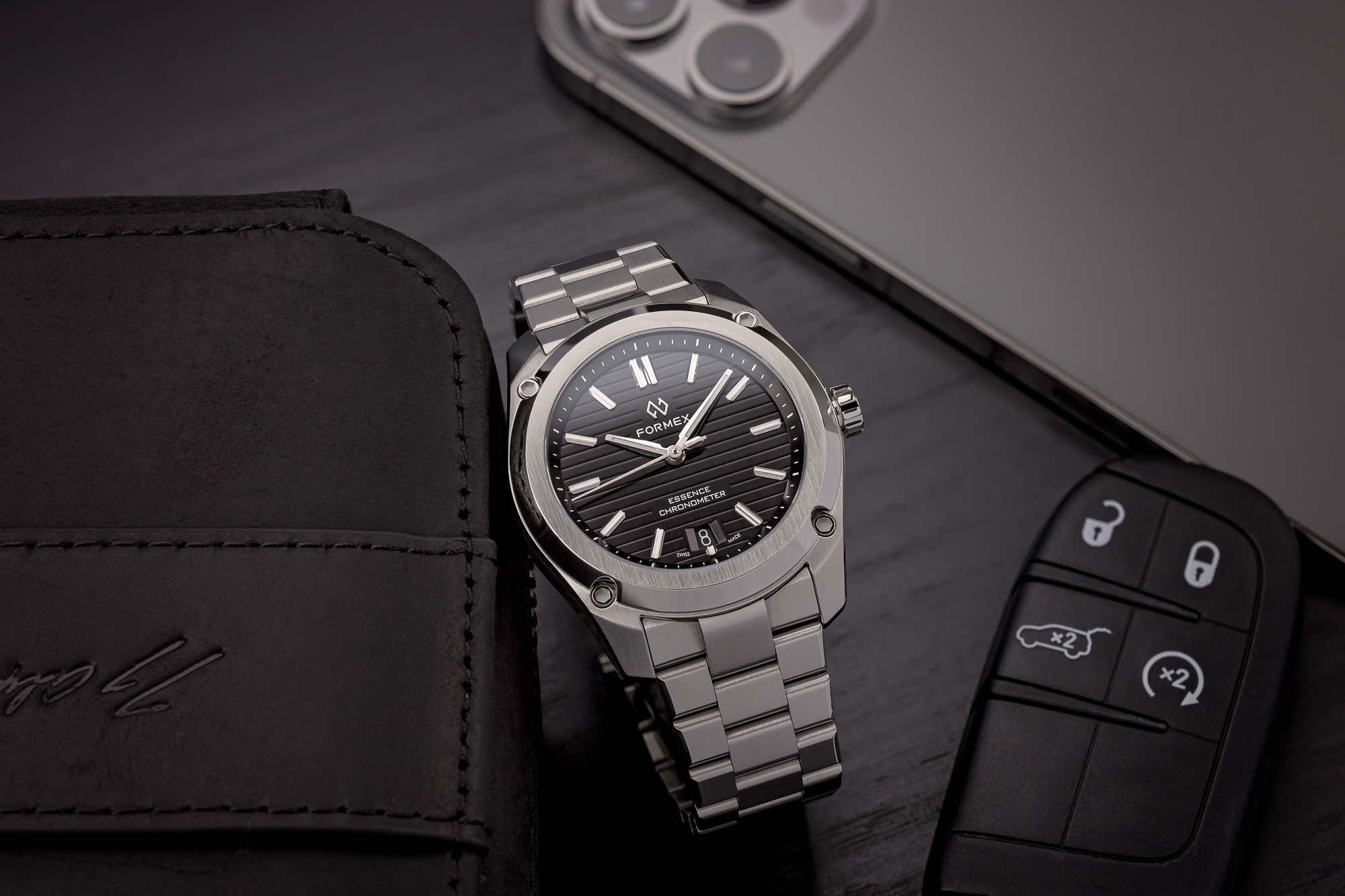 Powering the Essence ThirtyNine is the Sellita SW200-1, a chronometer-certified automatic movement that delivers smooth 28,800 bph operation, hacking, hand-winding, and a 41-hour power reserve. The watch comes fitted with a stainless steel bracelet equipped with a tool-free micro-adjust clasp, making it a timepiece built to wear all day, every day — with no compromise.
