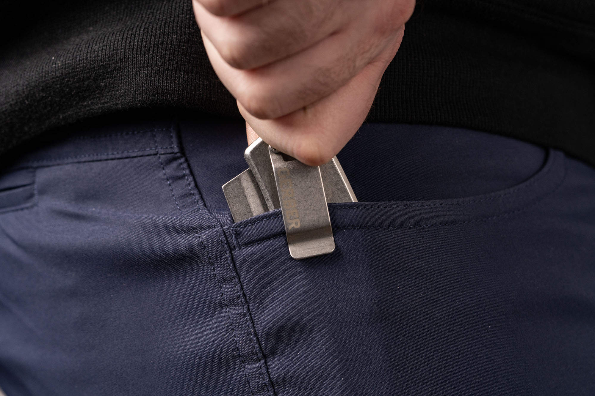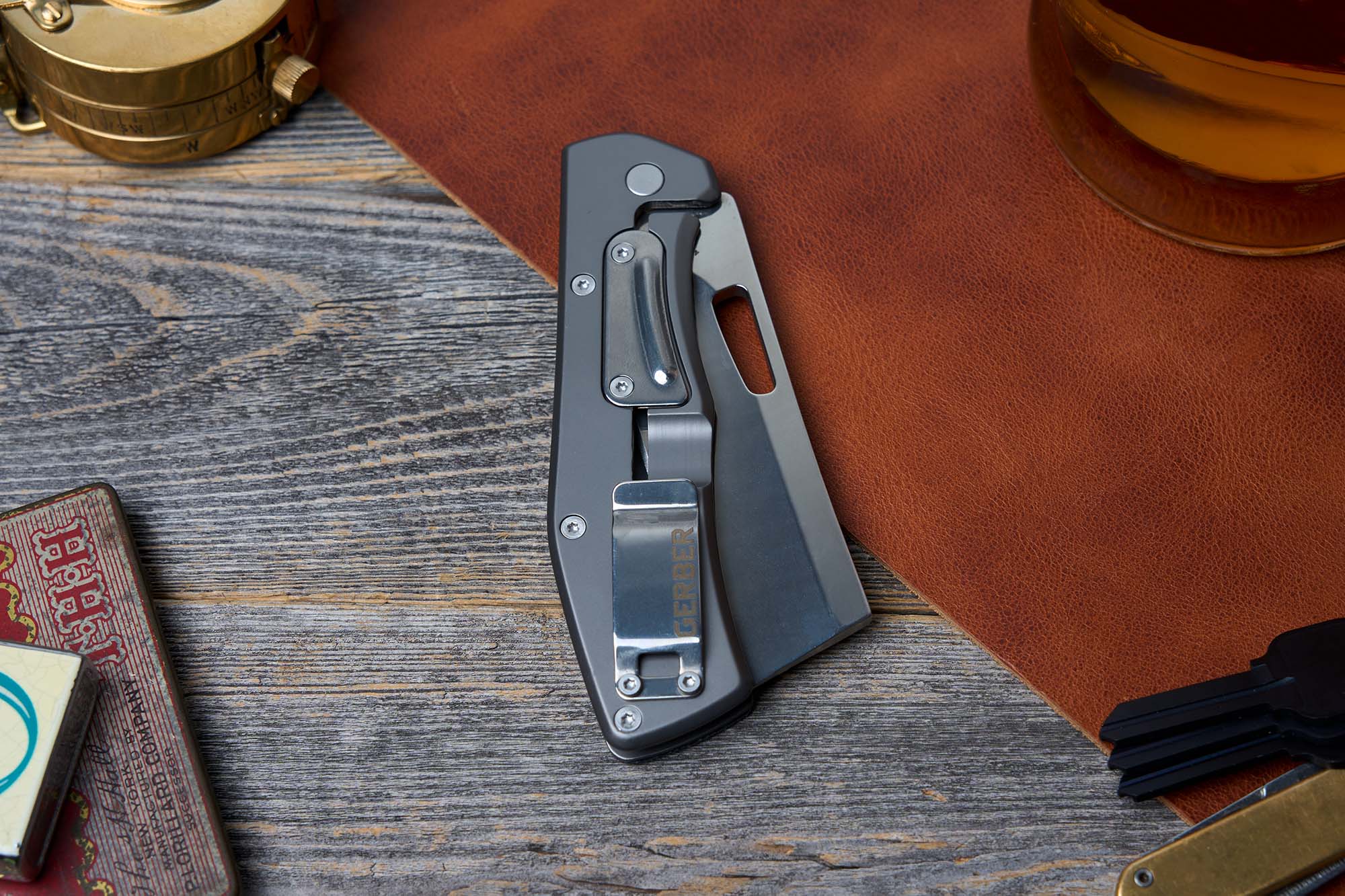 Arguably the most prominent feature, the cleaver blade is bold and trend forward. The sleek thumb-hole opening allows a sturdy place to engage when opening and closing the blade. A large finger choil ensures solid hand placement for secure control when choking up. Additionally, the pocket clip is specifically designed for a low profile carry that doesn't draw attention.