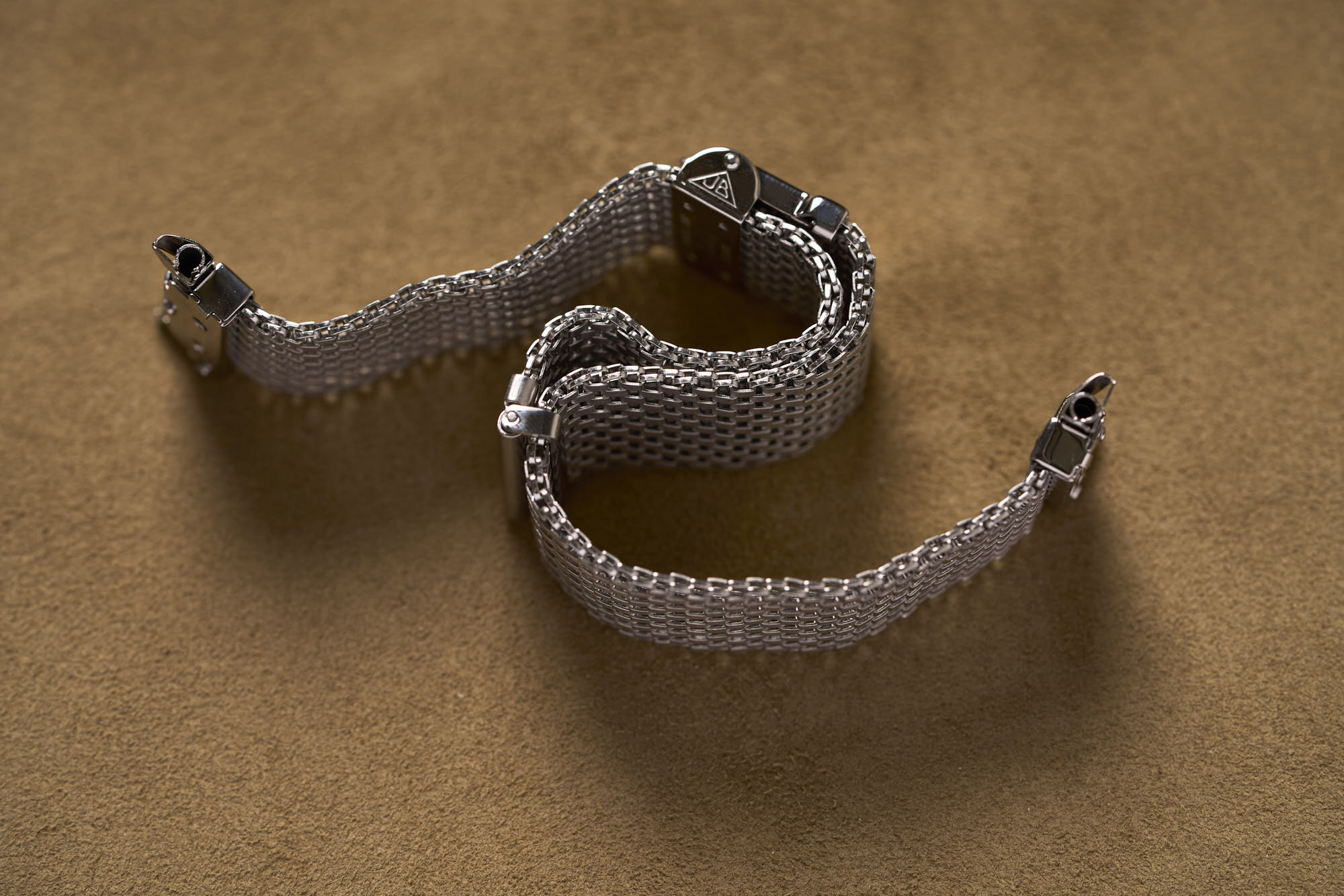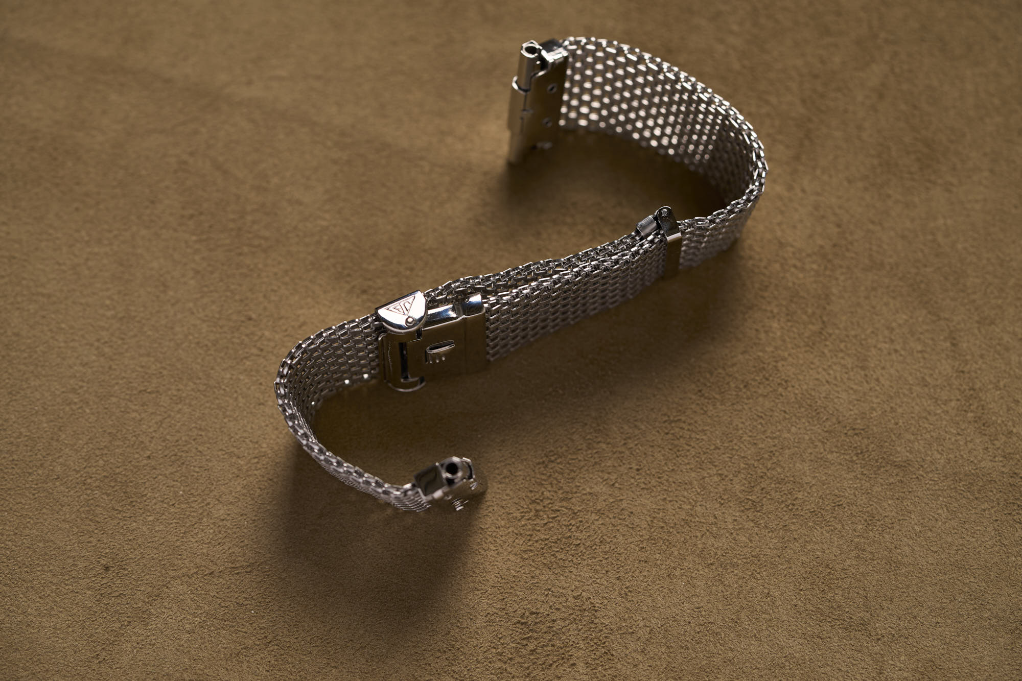 Forstner's stainless steel expandable mesh watch band (called the "Komfit") was one of the only watch bracelets sanctioned by NASA for use on manned space missions. It was worn by astronauts throughout the Mercury, Gemini, and Apollo programs, and even made it to the surface of the moon. Now, after a long hiatus during which time only vintage models could be sourced at high prices, we have reissued and improved this classic watch strap.