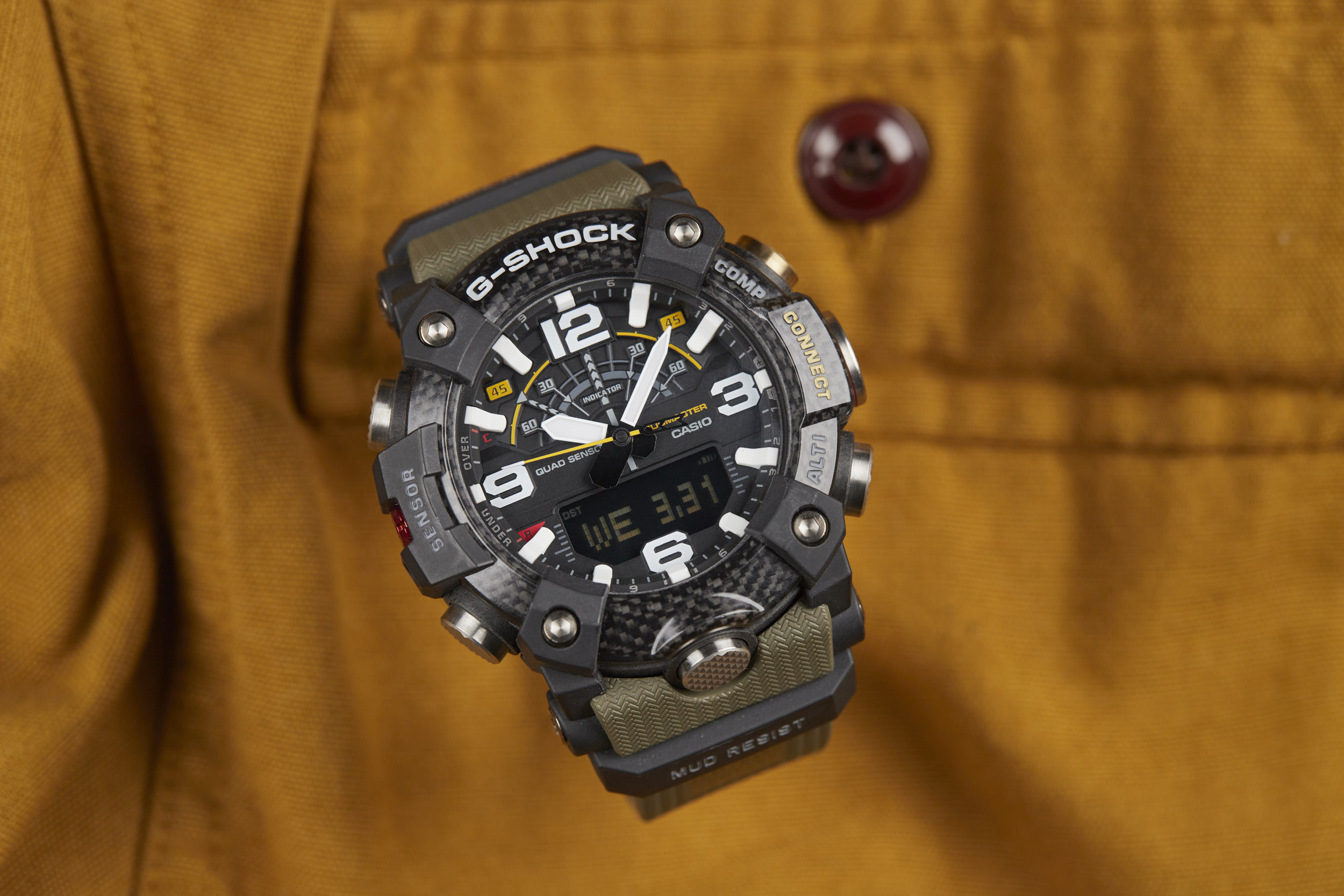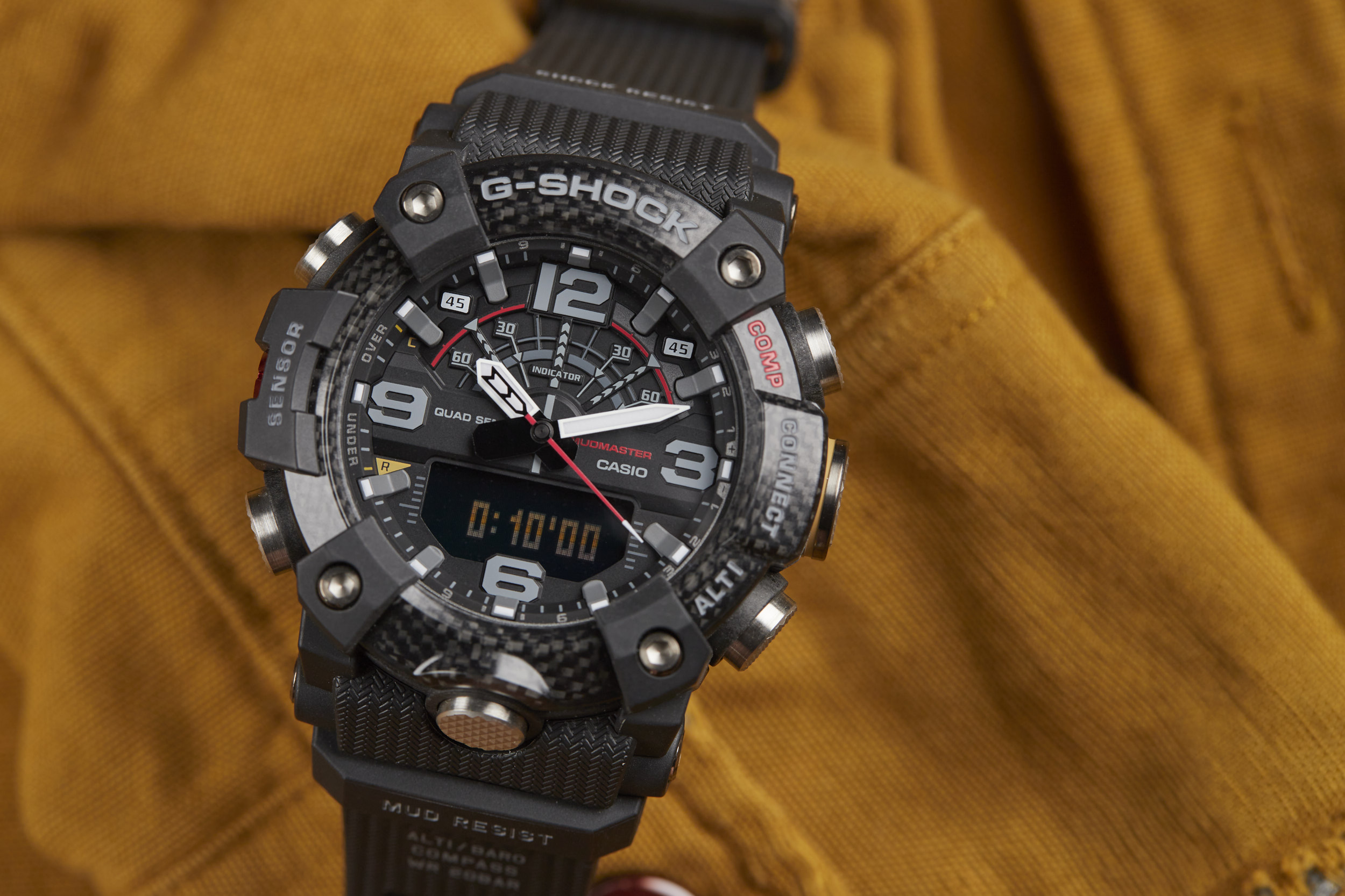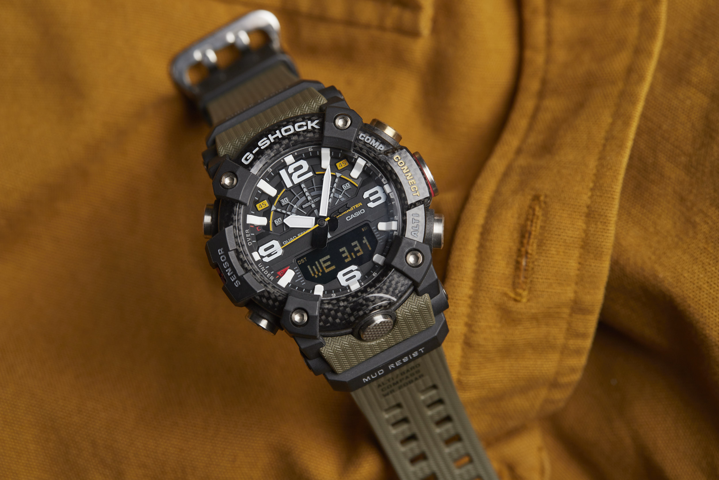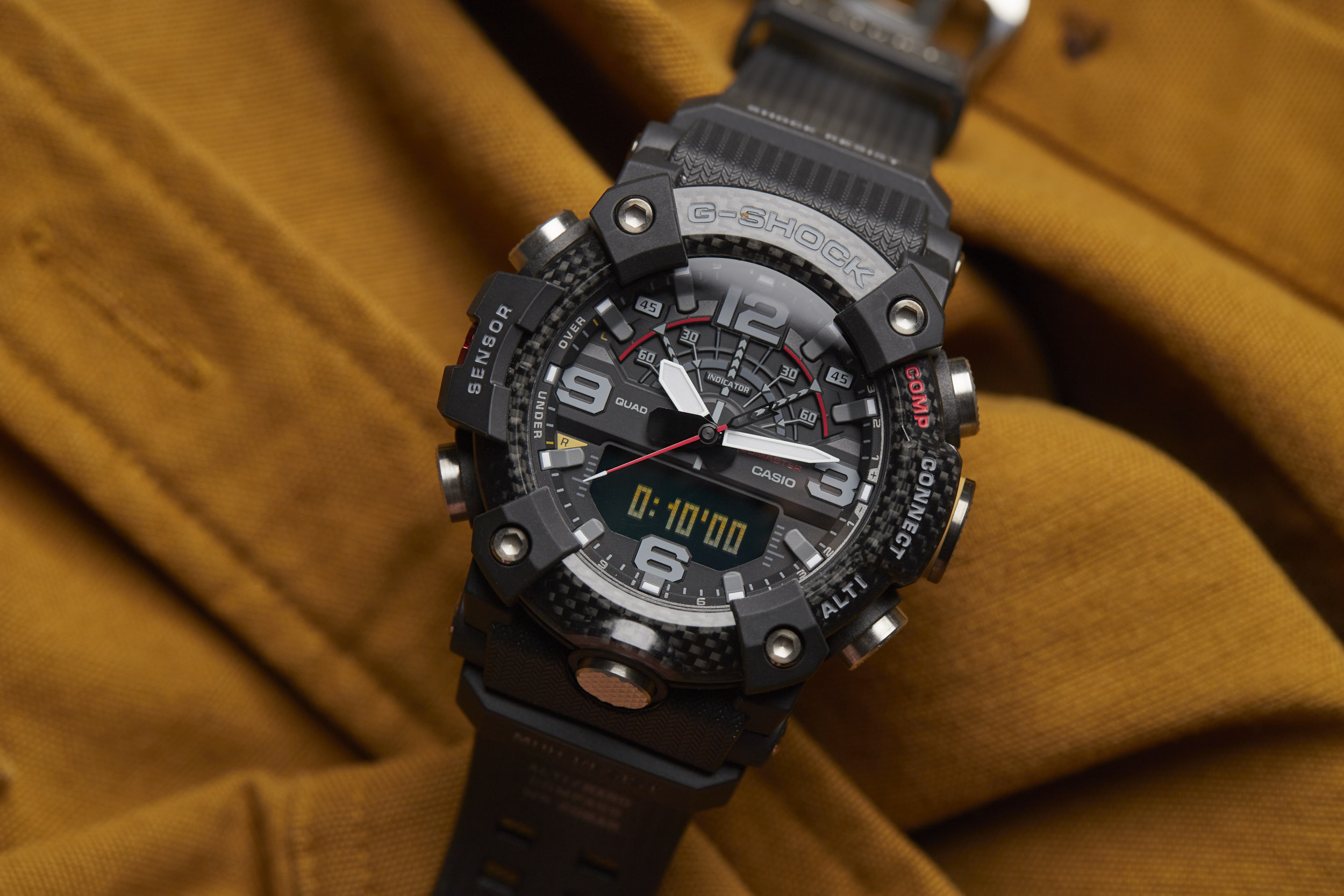 The Mudmaster runs on the 5594 module -- a Bluetooth-connected analog/digital timekeeping device that’s programmable via the G-SHOCK Connected app. The module has a unique “Mission Log” function that combines information from the watch and the GPS in your smartphone to provide a readout of your latest adventure. Additional features like a calorie calculator, automatic time adjustment, phone finder, and world time for over 300 cities make this function-packed watch even more of a powerhouse.