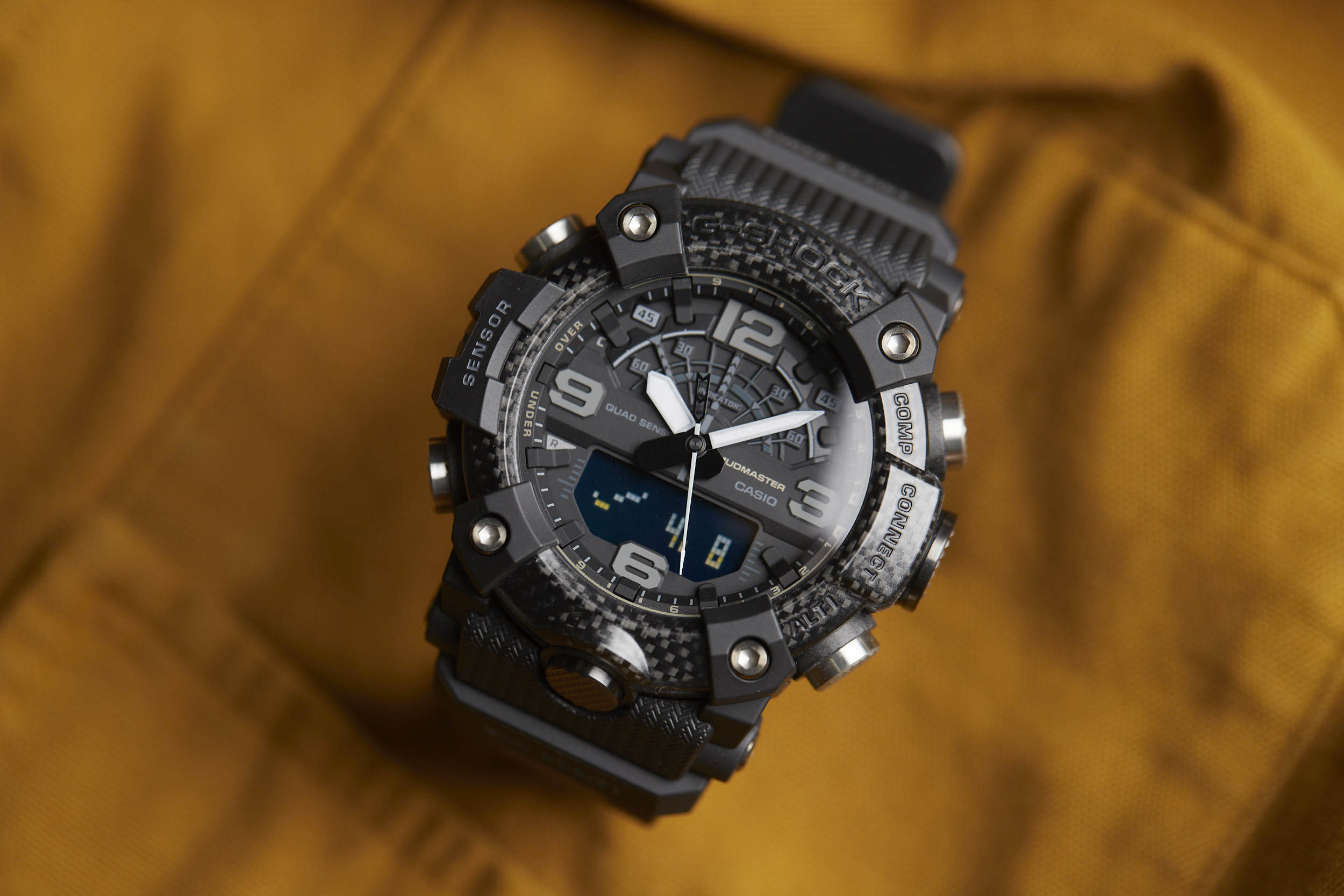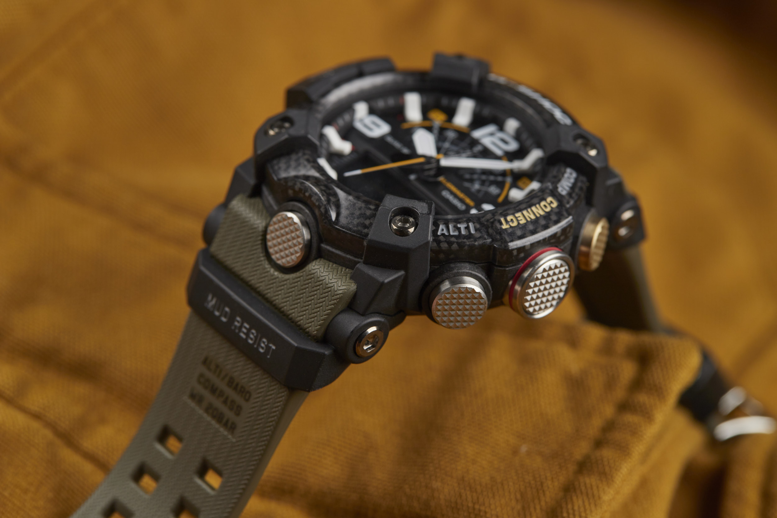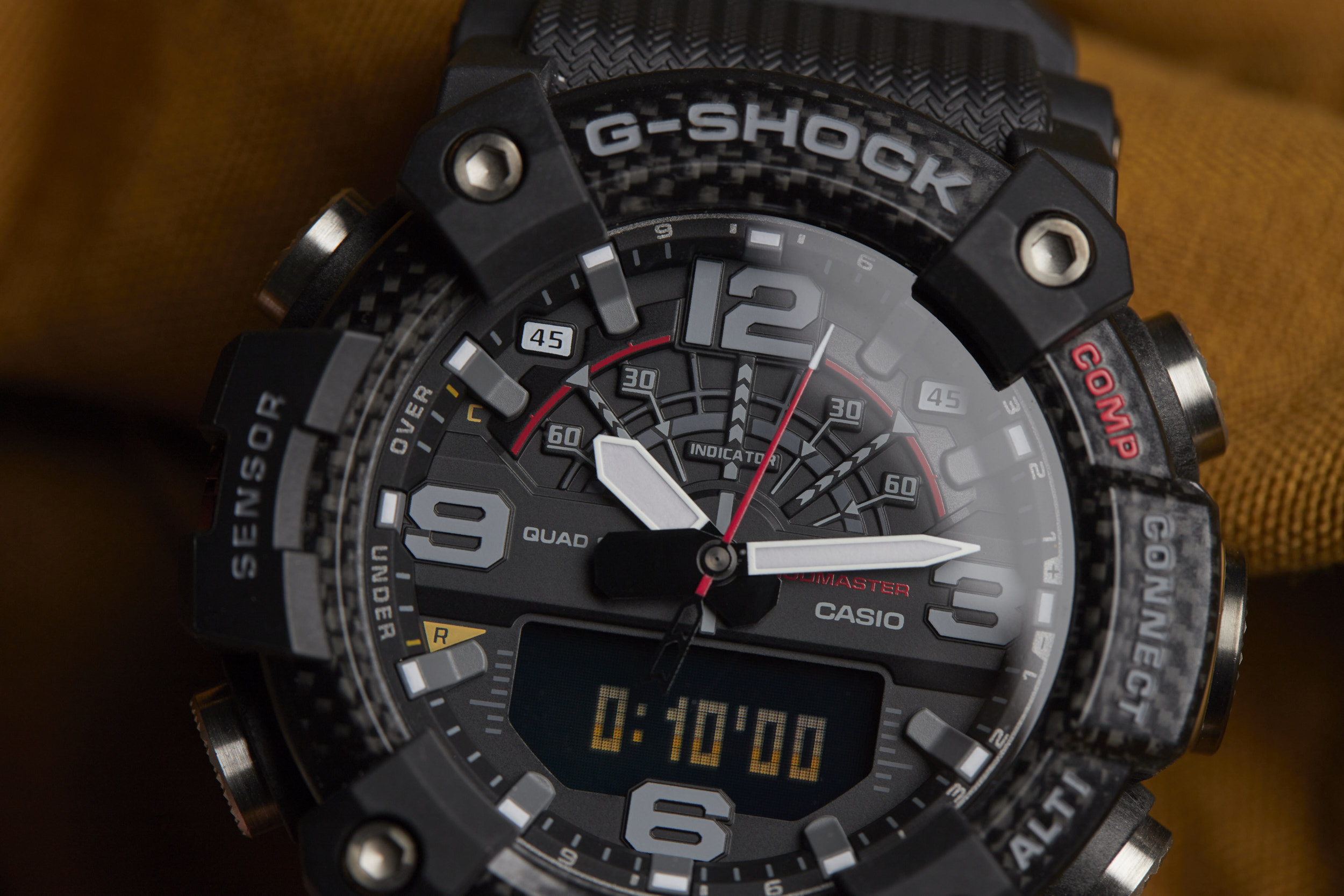 The Mudmaster runs on the 5594 module -- a Bluetooth-connected analog/digital timekeeping device that’s programmable via the G-SHOCK Connected app. The module has a unique “Mission Log” function that combines information from the watch and the GPS in your smartphone to provide a readout of your latest adventure. Additional features like a calorie calculator, automatic time adjustment, phone finder, and world time for over 300 cities make this function-packed watch even more of a powerhouse.