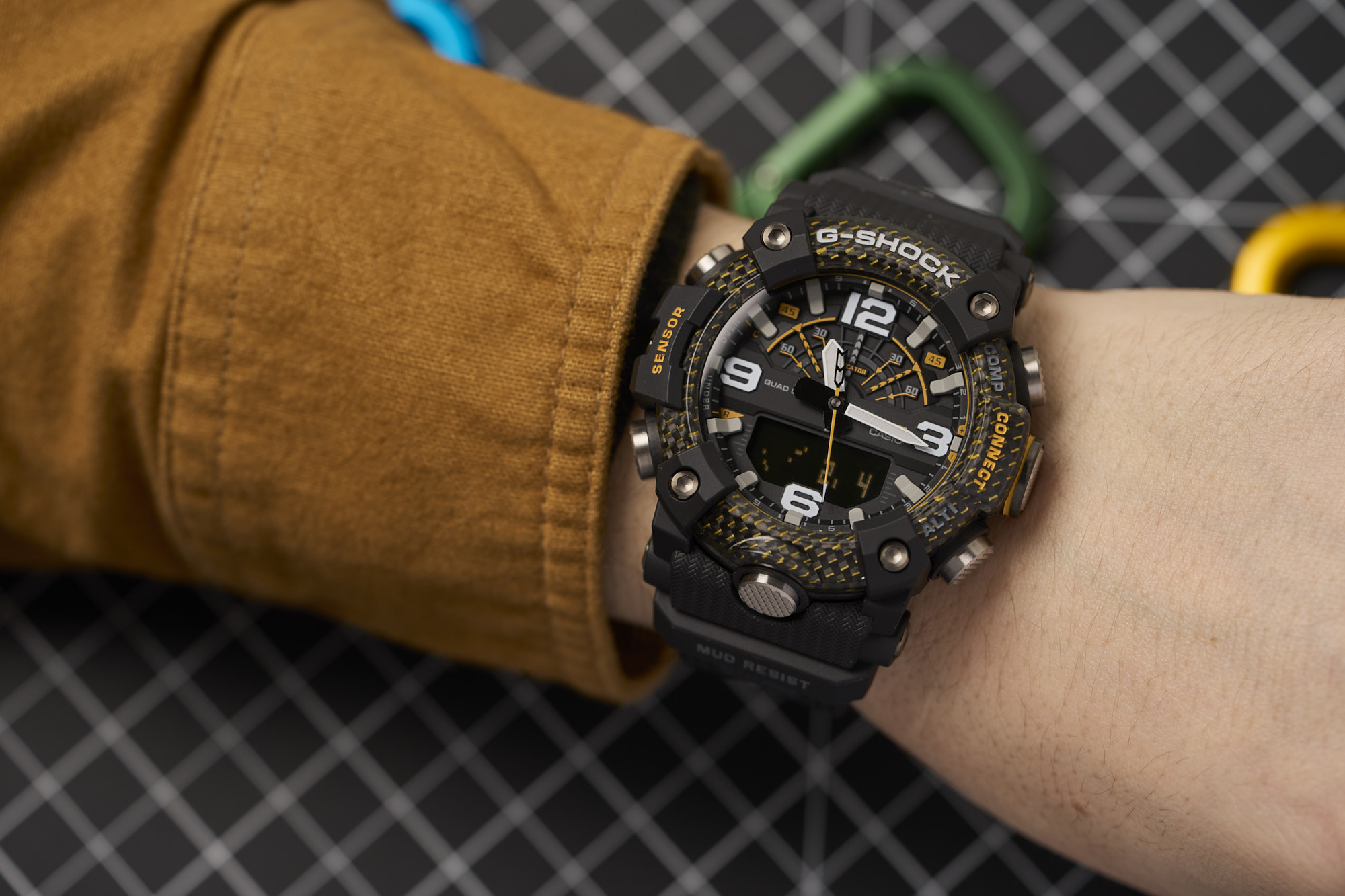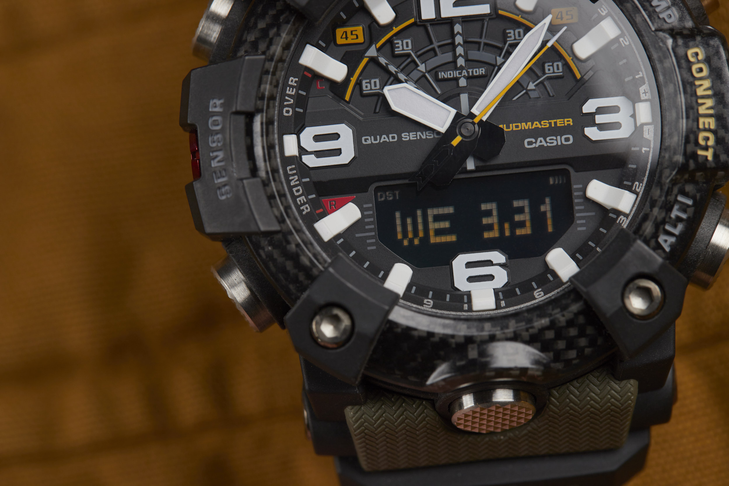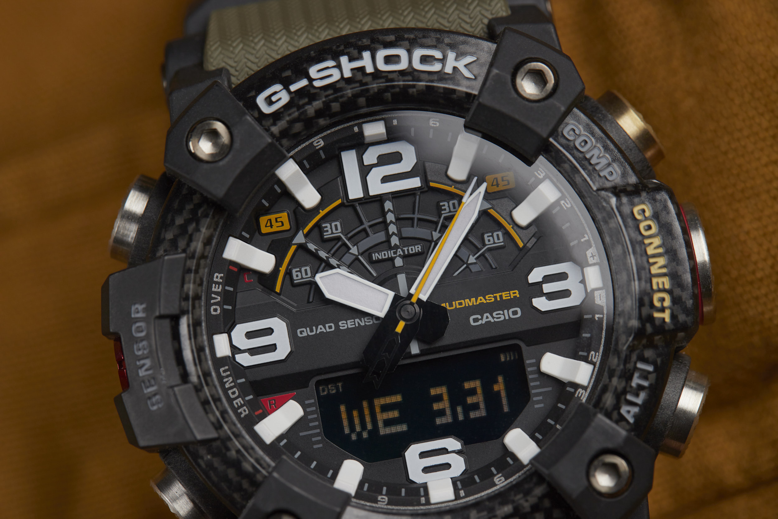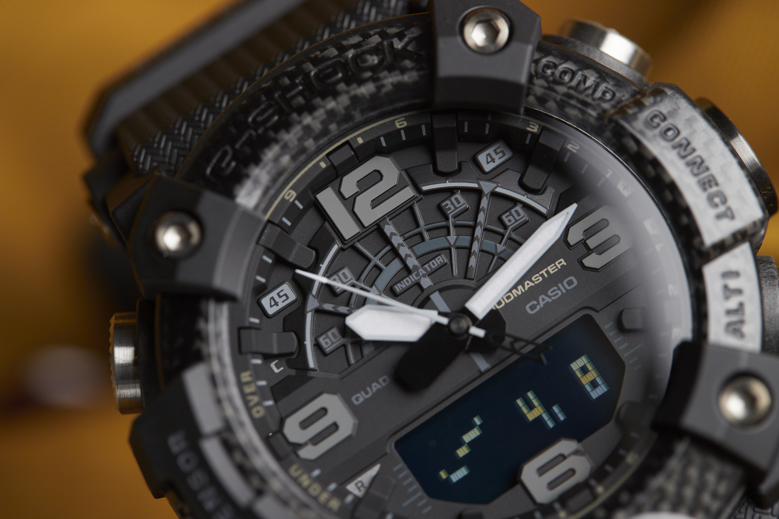 The Mudmaster runs on the 5594 module -- a Bluetooth-connected analog/digital timekeeping device that’s programmable via the G-SHOCK Connected app. The module has a unique “Mission Log” function that combines information from the watch and the GPS in your smartphone to provide a readout of your latest adventure. Additional features like a calorie calculator, automatic time adjustment, phone finder, and world time for over 300 cities make this function-packed watch even more of a powerhouse.