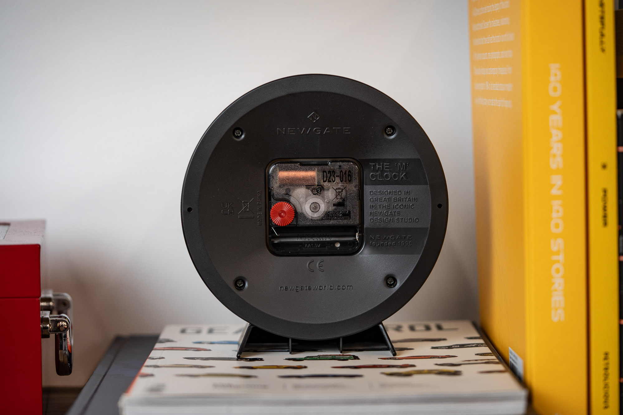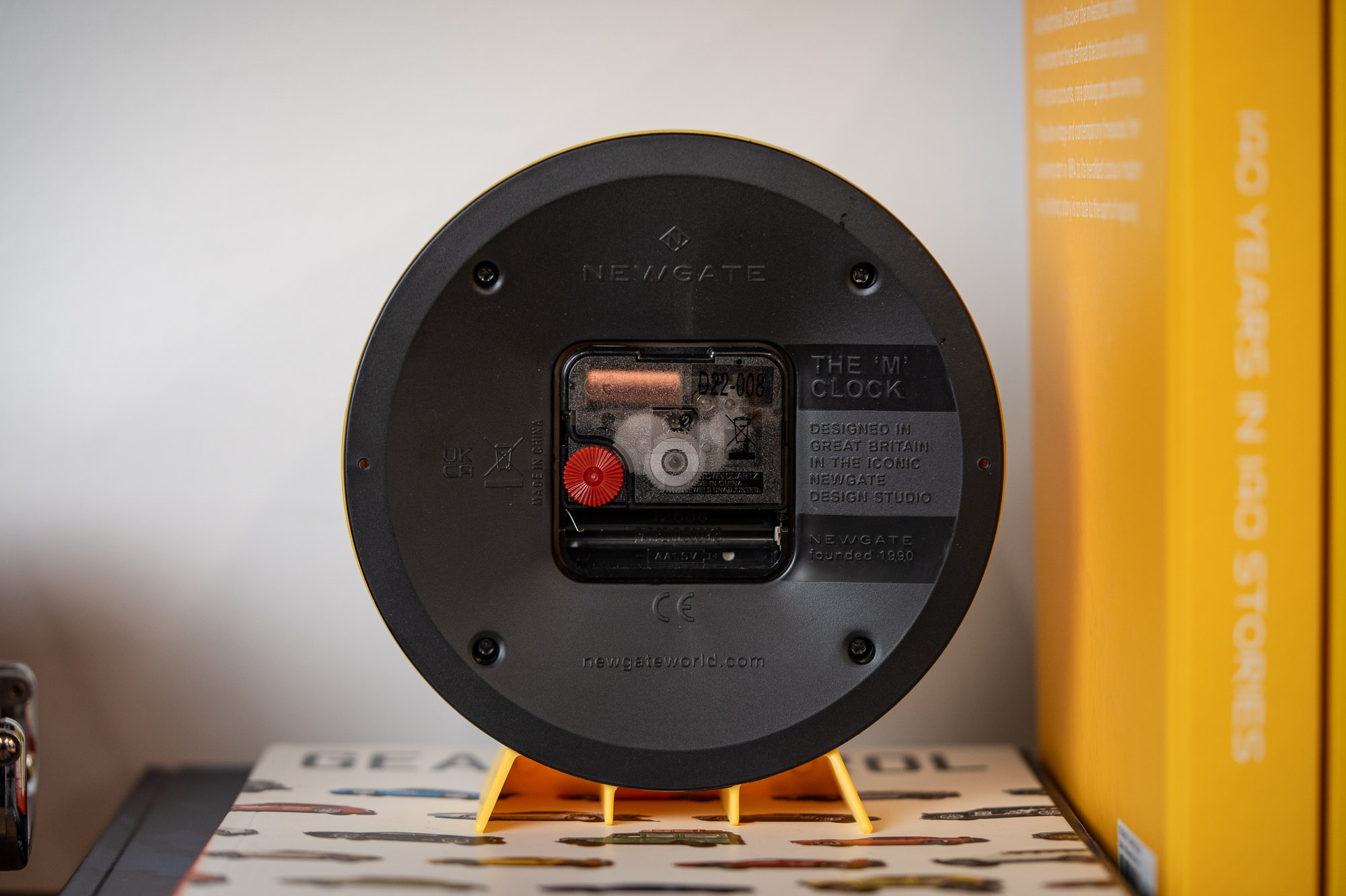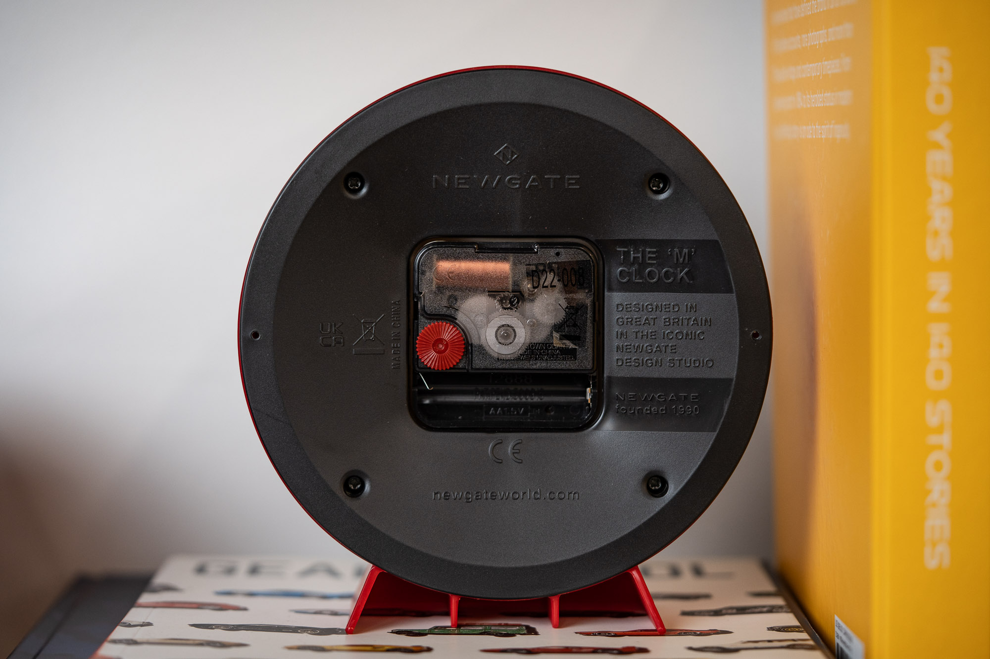It's crafted from acrylic with a matte finish, complemented by metal hands and a glass lens. The clock comes in either a matte black case, red case or yellow case.