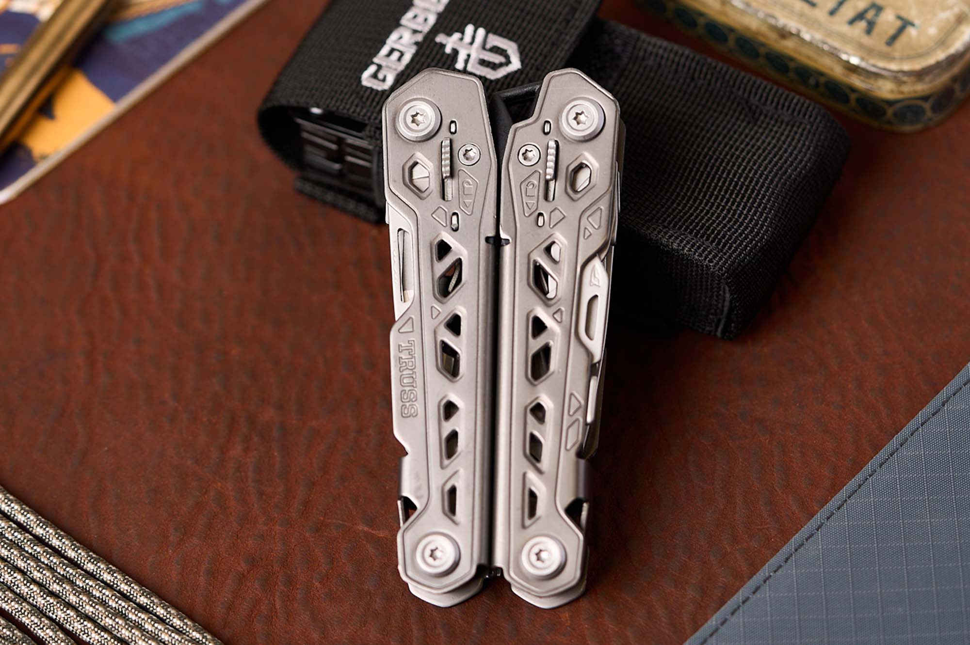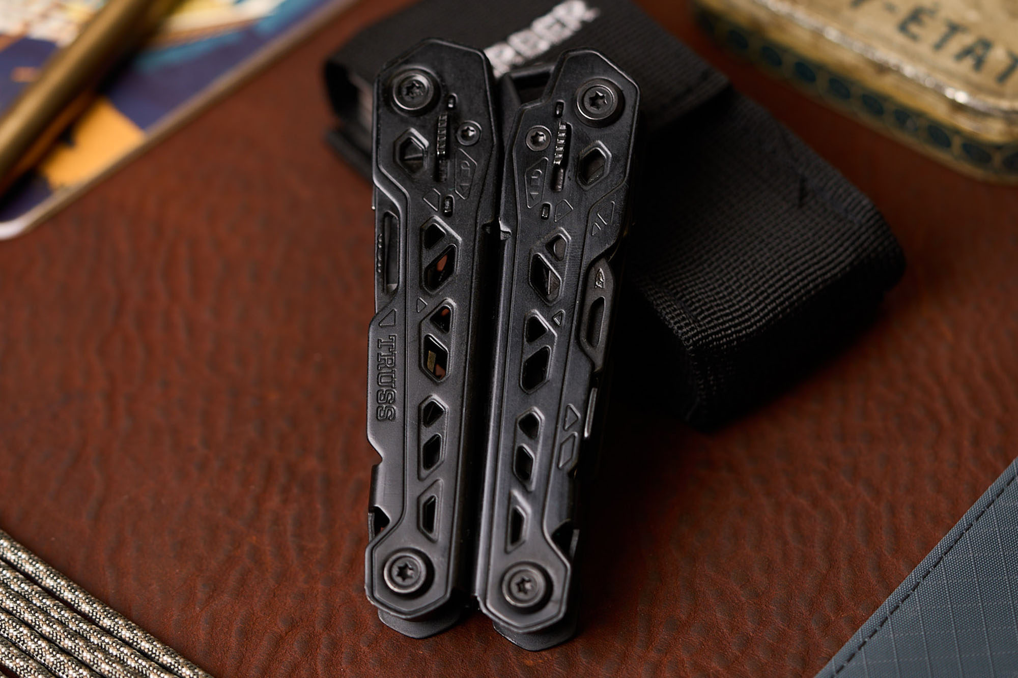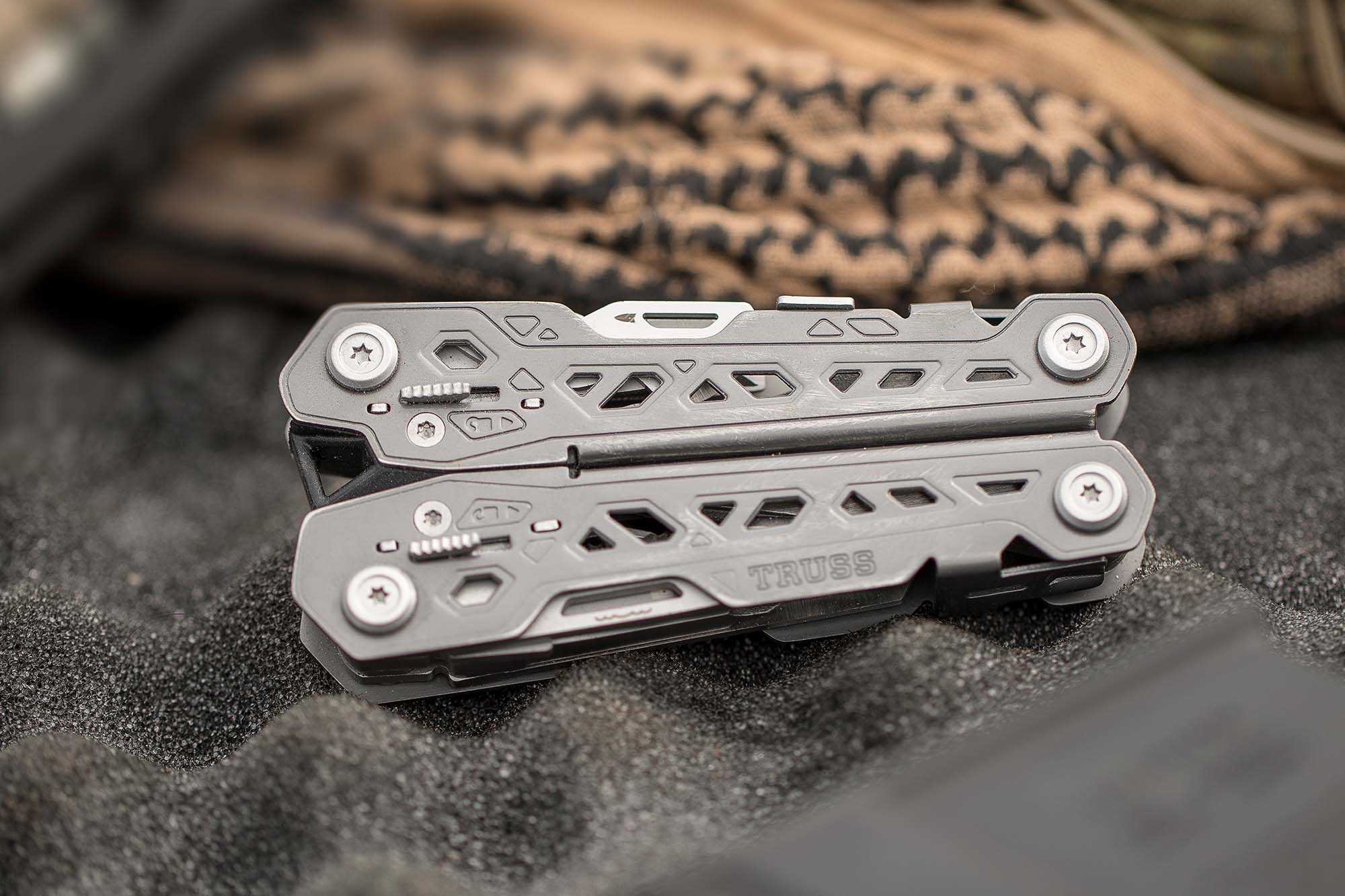 An evolution of the original Suspension chassis, the Truss includes the benchmark features: all outboard tools, all locking tools, and spring-loaded pliers New features to the Truss include: wire stripper, medium flathead driver, awl, file, and ruler The low-profile sheath can be mounted vertically or horizontally on belt.