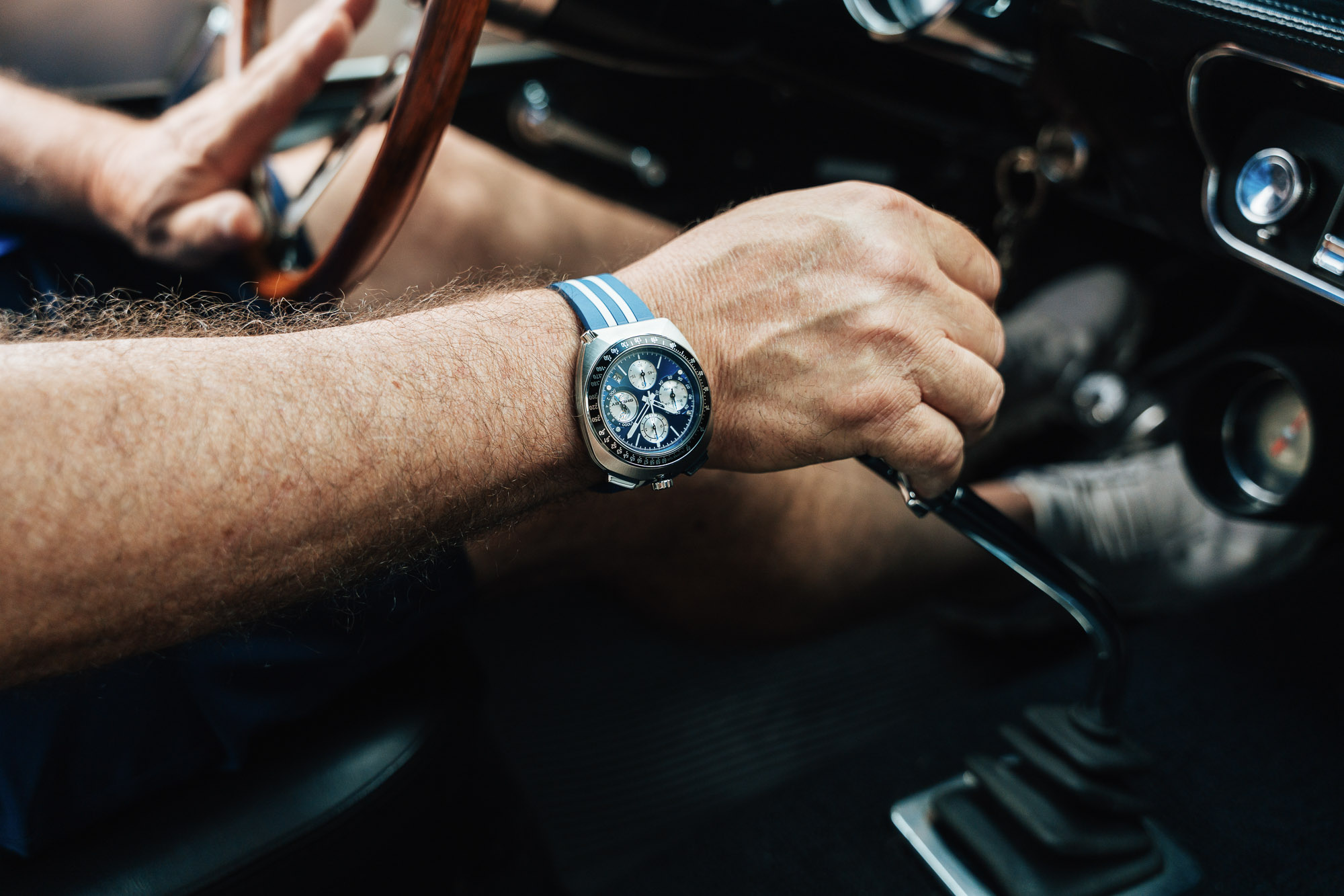 The Bulova SHELBY® Racer Chronograph is a limited-edition, high-energy tribute to Carroll Shelby’s legendary racing legacy—built with Bulova’s modern performance tech and a design language pulled straight from American muscle. Between the signature blue-and-white colorway, the bold bullhead case profile, and racing-forward dial details (including the Shelby Cobra logo), this is a watch that wears like a piece of motorsport history—loud, purposeful, and unapologetically fun.