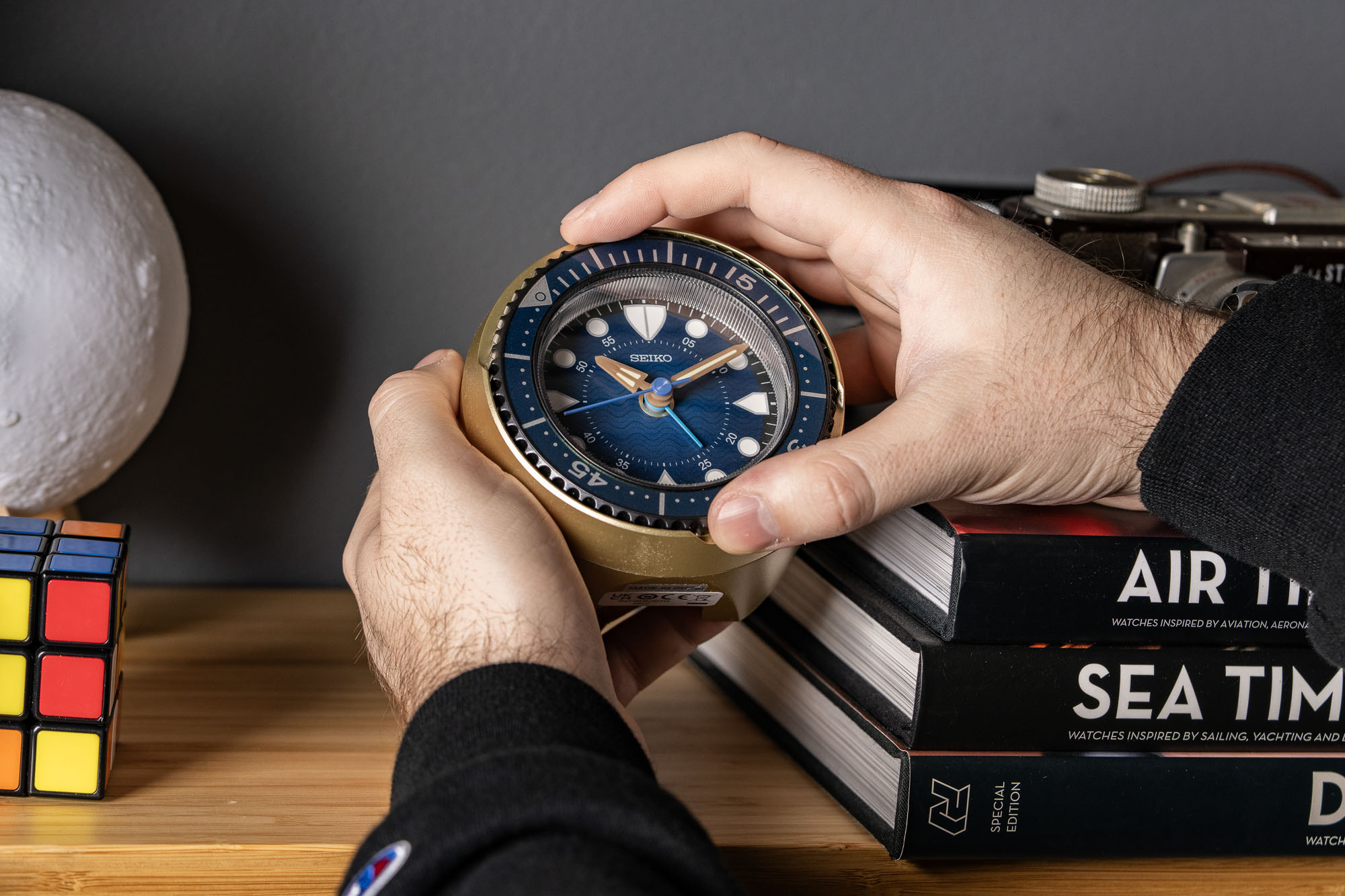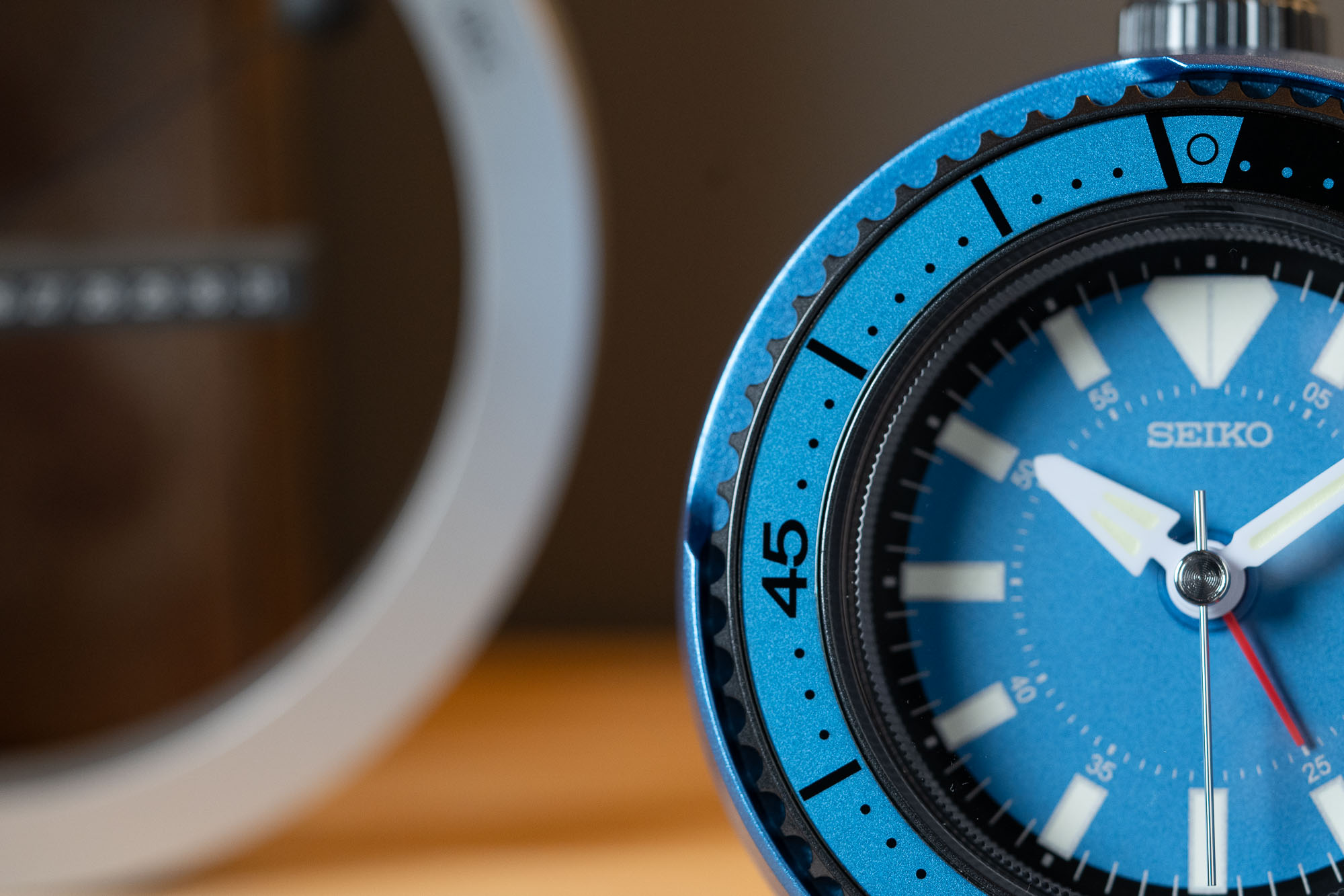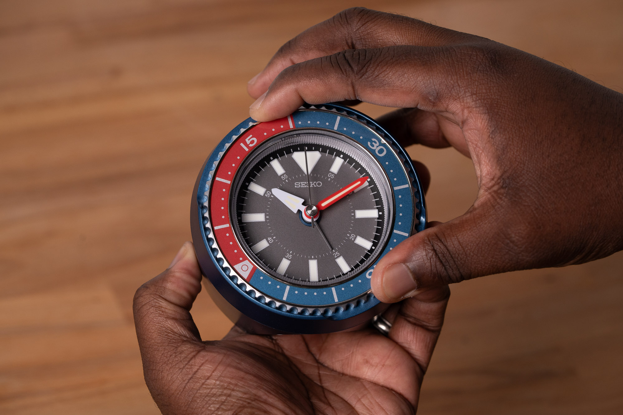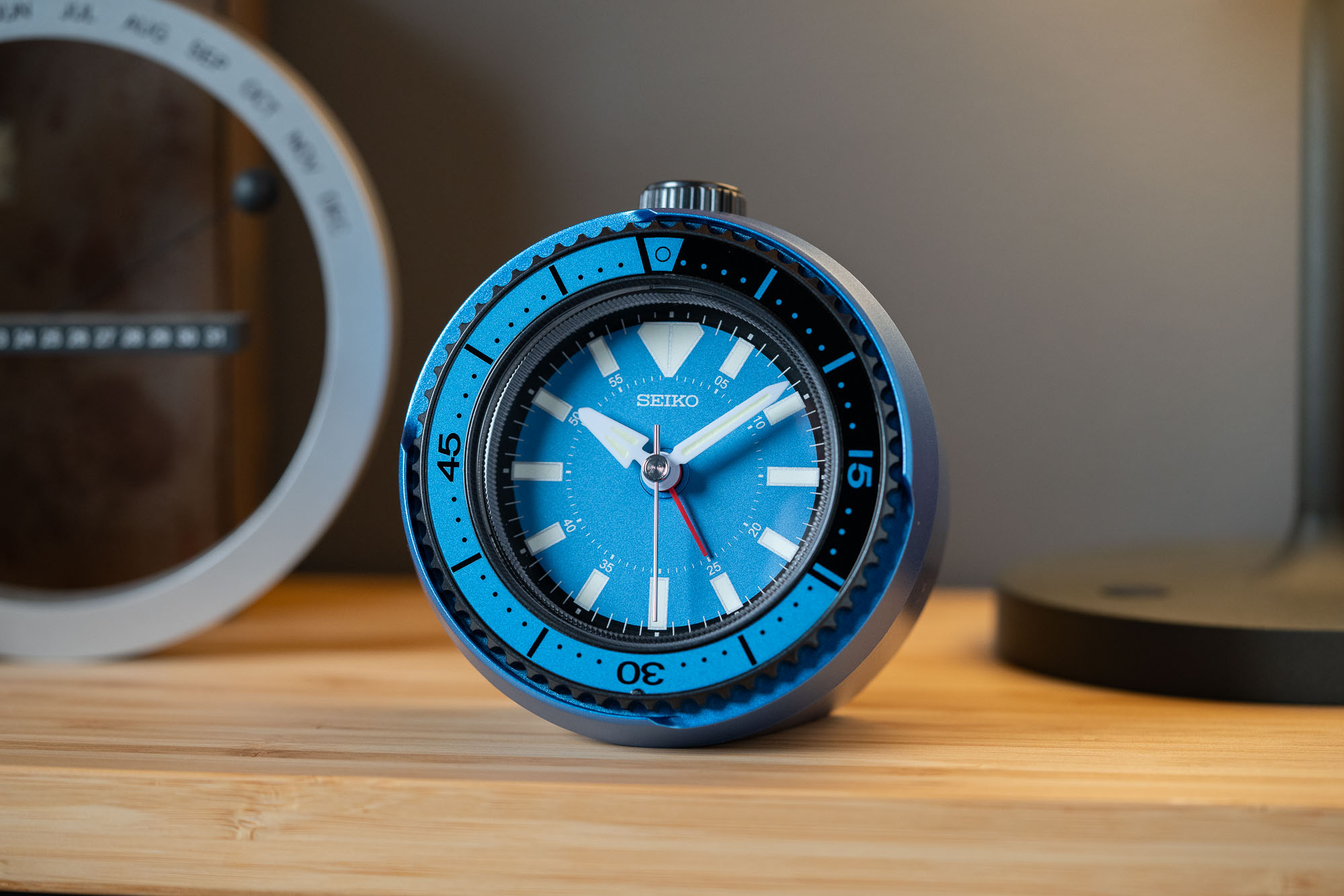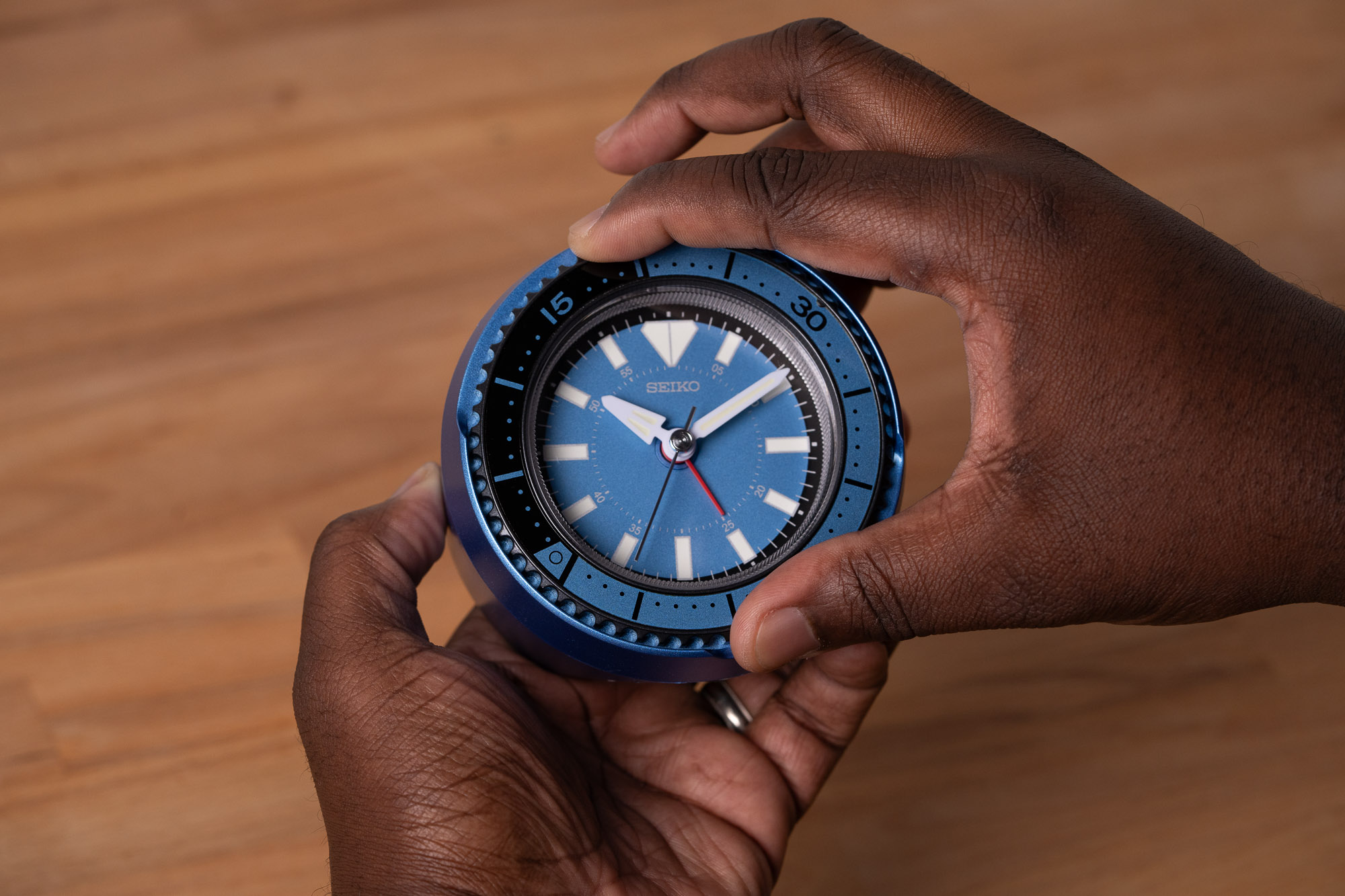 The Mai alarm clock is available in multiple metallic colors: Silver, Dark Silver, Black, Blue, and Blue & Red. With so many options to choose from, you can find one that matches your favorite Seiko dive watch, or just suits the style of your room.