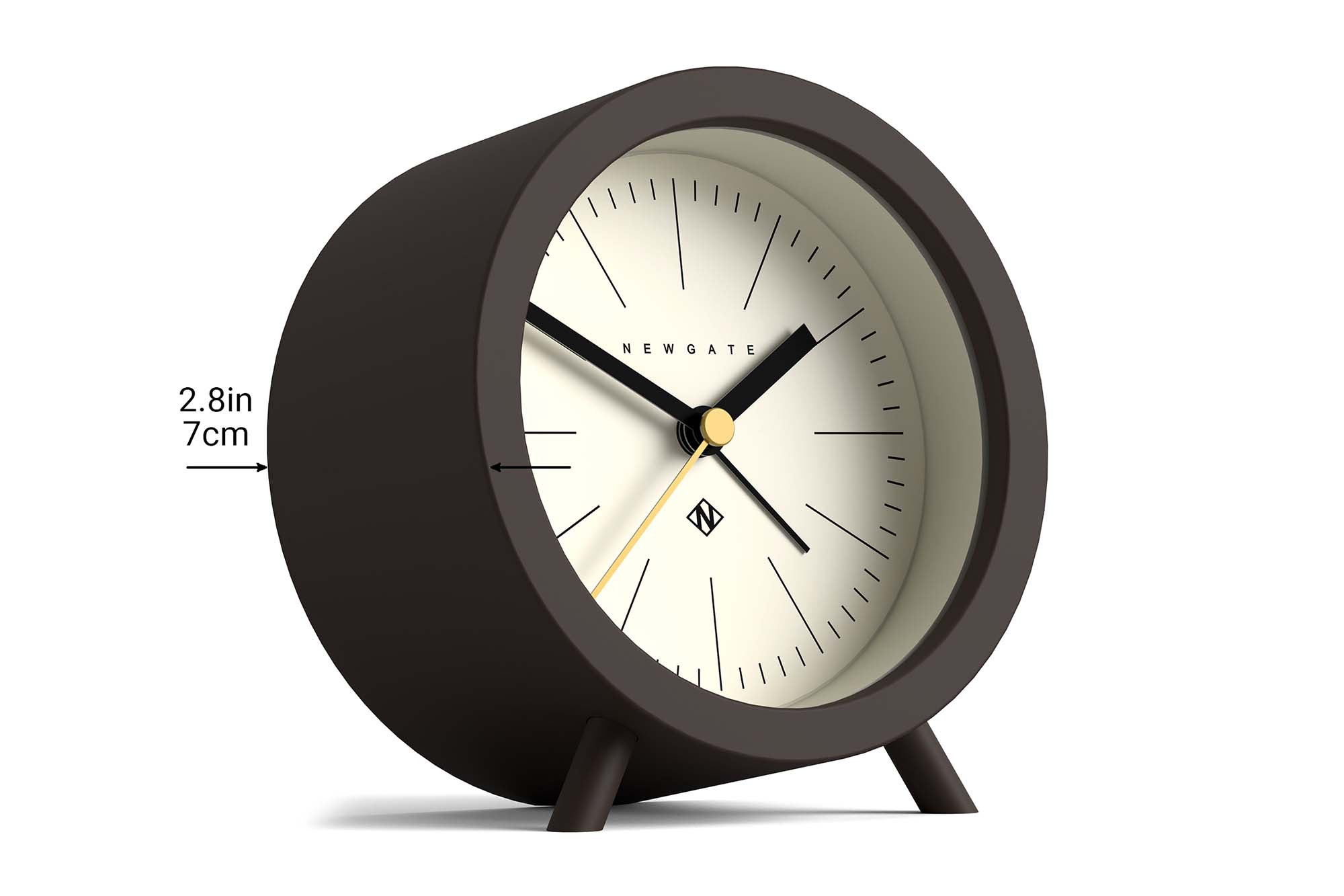 Imagine stepping into a mid-Century modern oasis with our mesmerizing alarm clock in the sumptuous shade of 'Chocolate Brown'. This timepiece evokes the essence of that iconic era, captivating the eyes with its matte silicone-finish barrel case resting gracefully on angled legs. A blend of classic and contemporary design, this clock showcases a minimalist marker dial and a digital beep alarm, creating a perfect balance between simplicity and functionality.