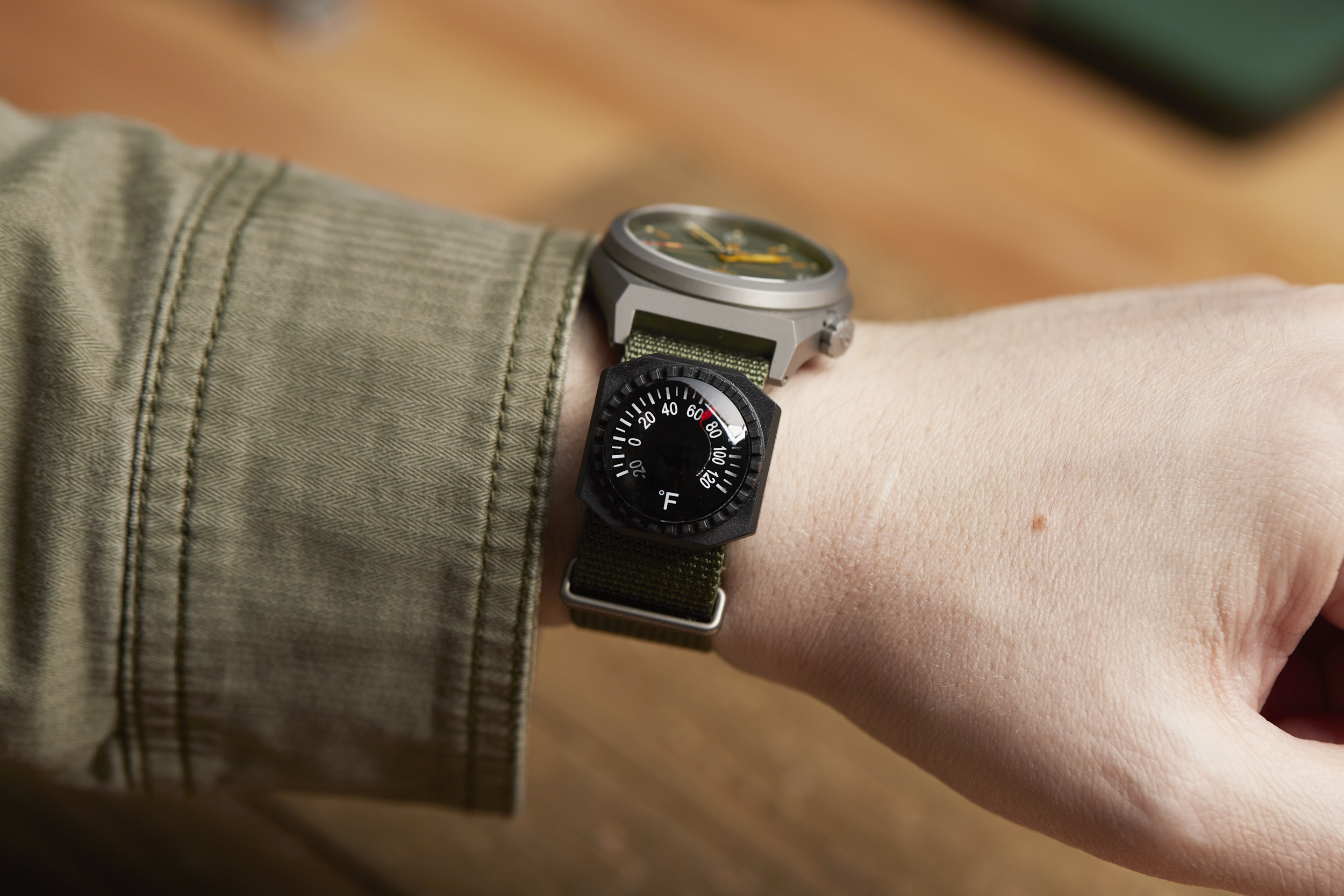 Strap thermometers are handy tools for adventures. This impact-resistant thermometer is a great addition to any watch! Just slip onto your watch strap and go. The Japanese-made dial thermometer measures temperatures from -20º to +120º Fahrenheit or -30º to +80º C. A great addition to any watch!