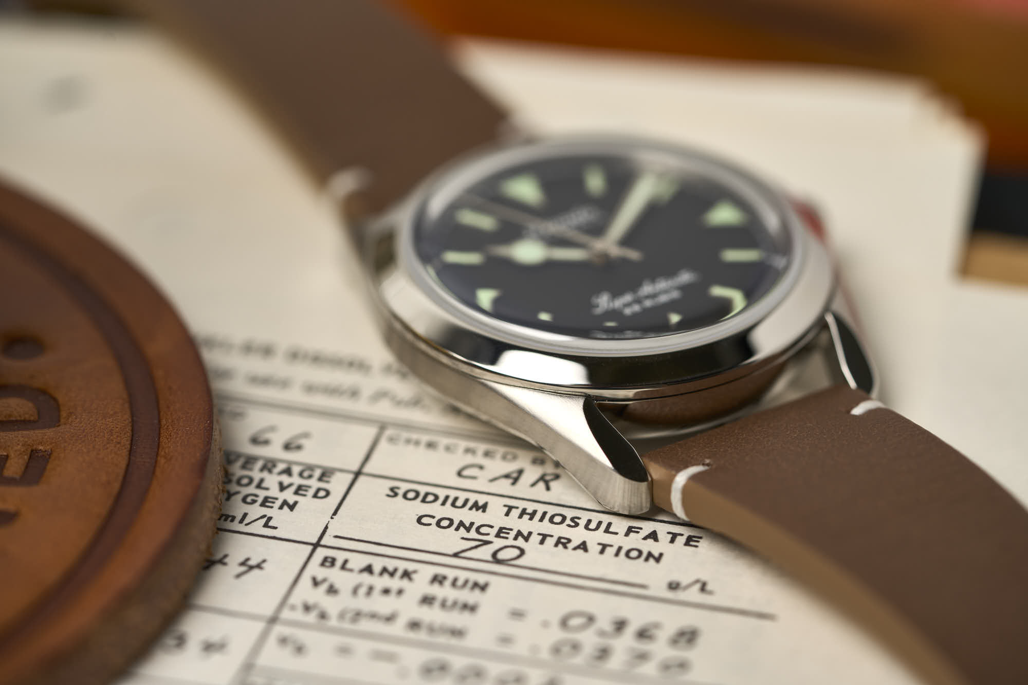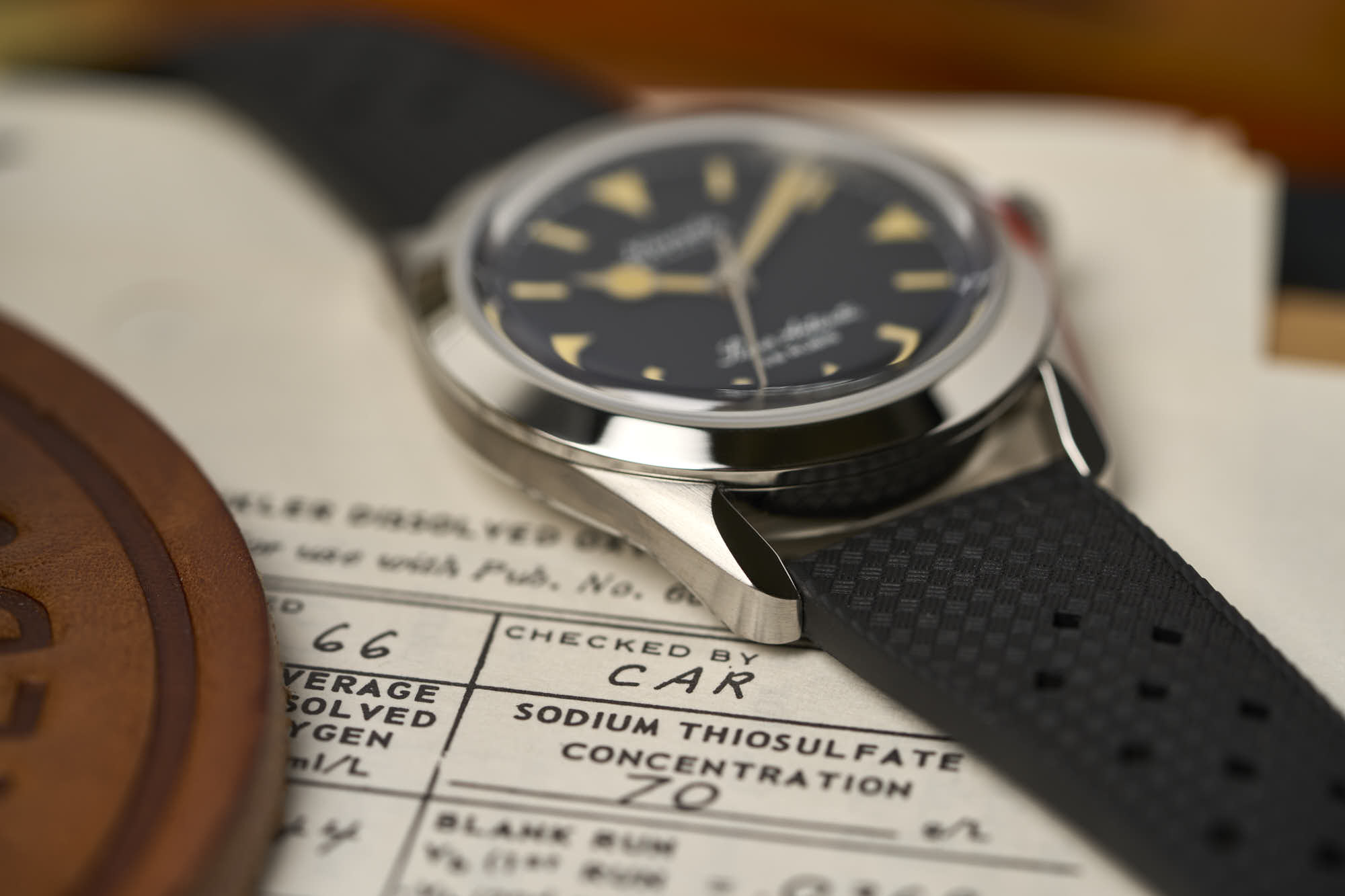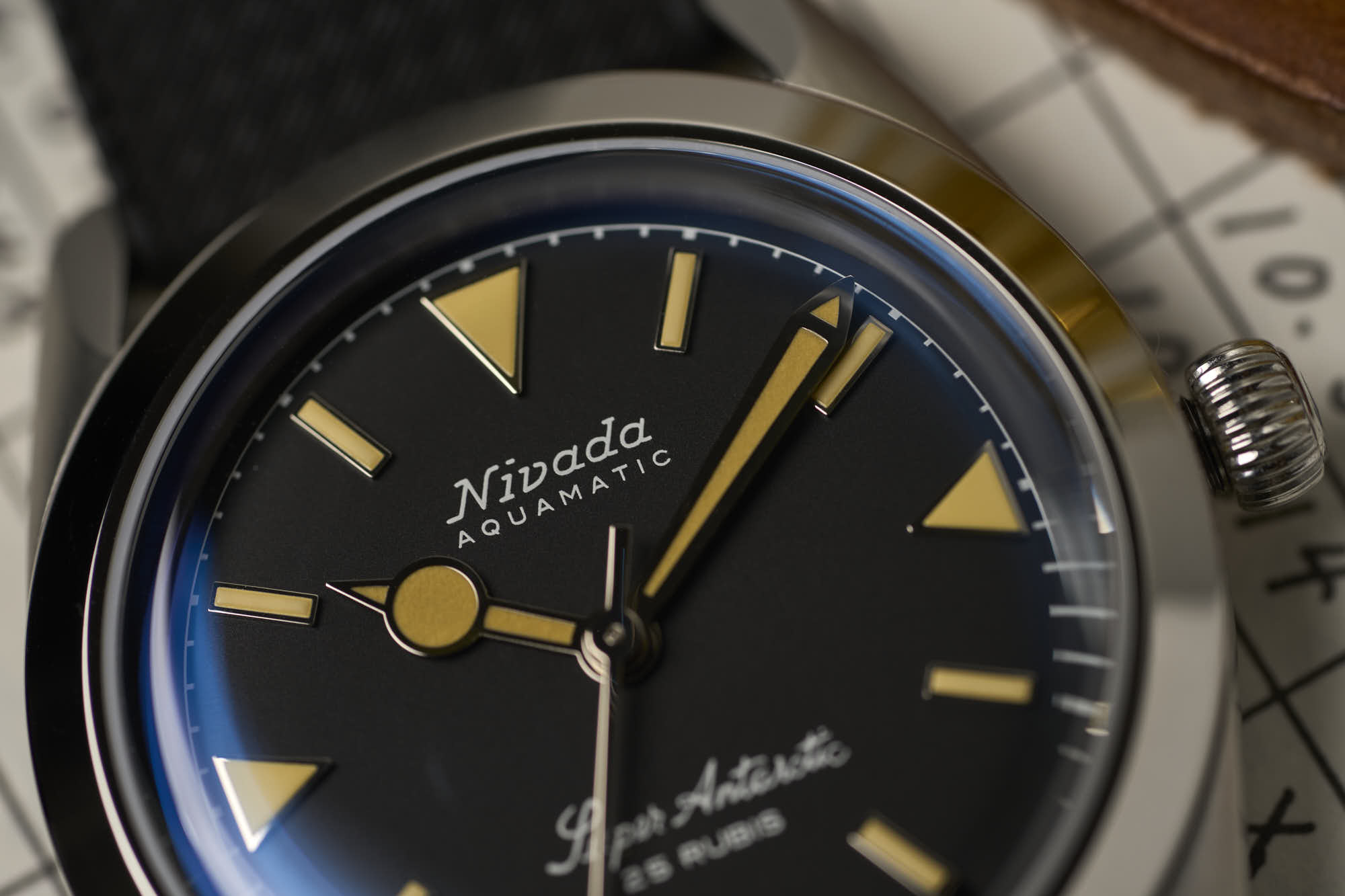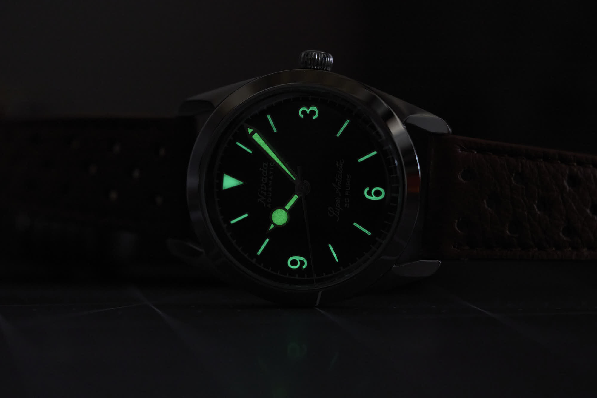 While the hour hand is lollipop-styled, it is contrasted with a sword minute hand. There is a chapter ring around the edge of the dial. As for straps, options vary from leather and rubber, to bracelets as well as. And finally, a screw-down crown ensures 10 ATM of water resistance.