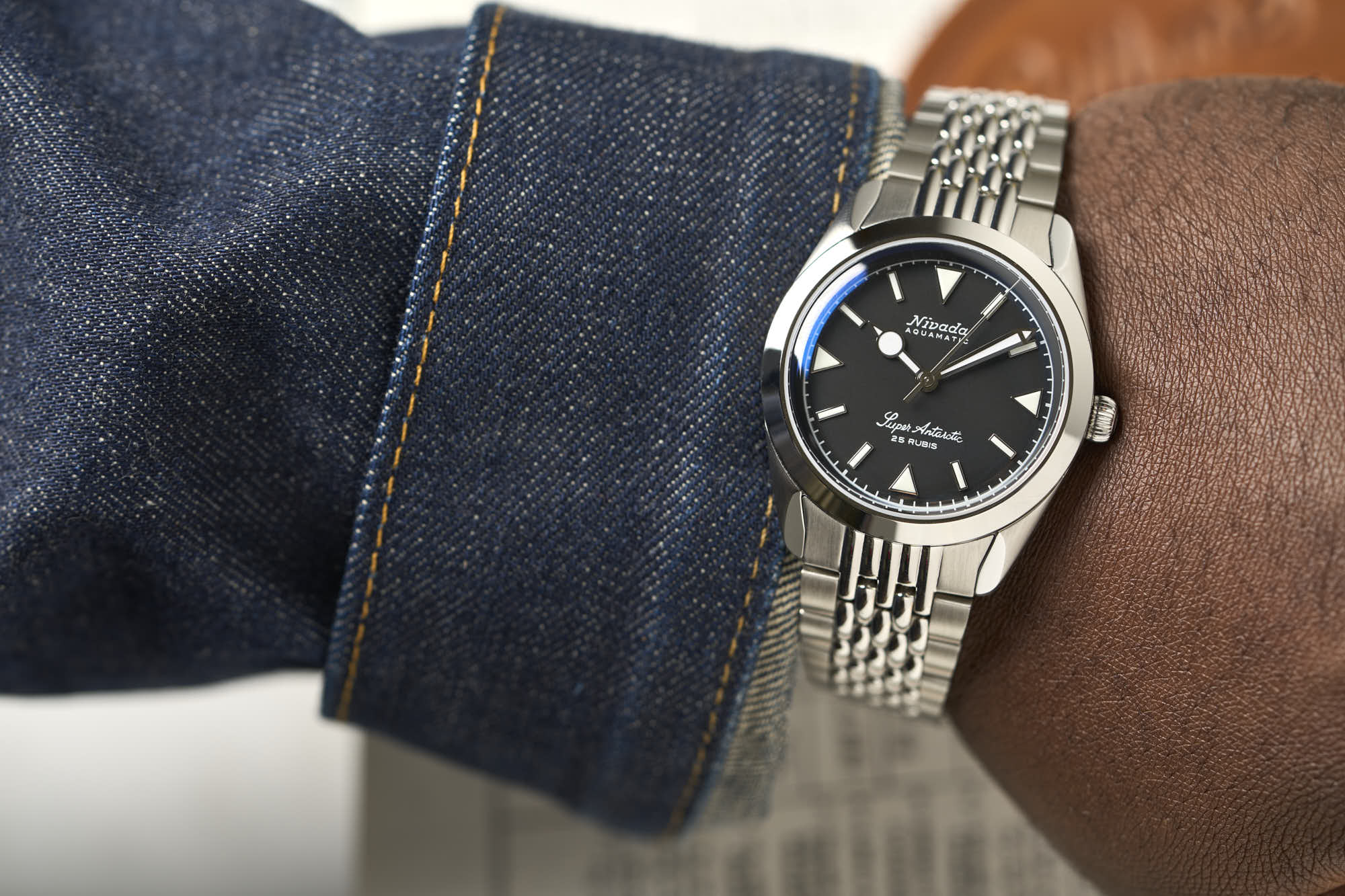 Nivada Grenchen was founded in Grenchen, Switzerland, in 1926 by Jacob Schneider. The firm wasted no time innovating and was one of the first companies to manufacture automatic watches at scale. Known for its accessible and reliable watches, Nivada Grenchen first released the Aquamatic and Sea Blade watches for seafarers. In 1950, the Antarctic, which was based on the Aquamatic, became the brand’s first hit model. It was famously issued to the US Navy during Operation Deep Freeze to the South Pole in 1955 and 1956.
