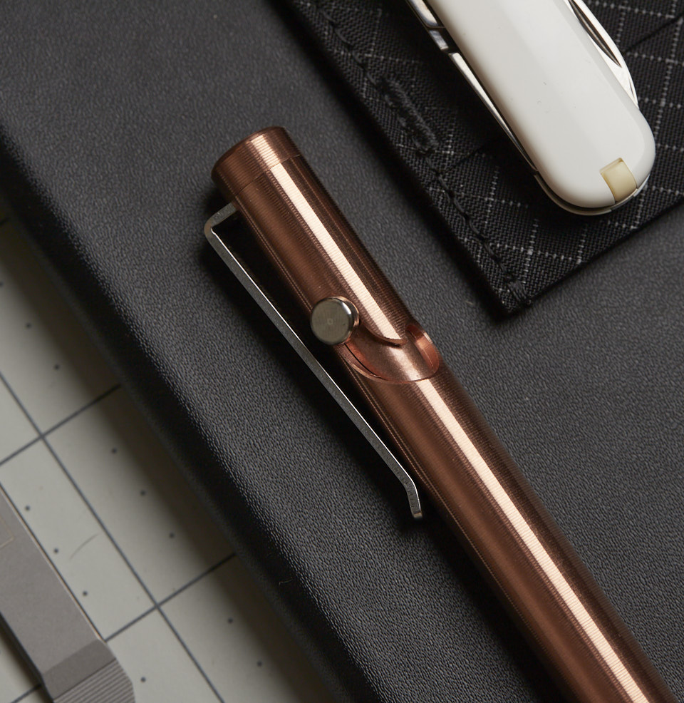 100% made in-house, the Bolt Action Pen is crafted from copper, which will naturally patina with use
