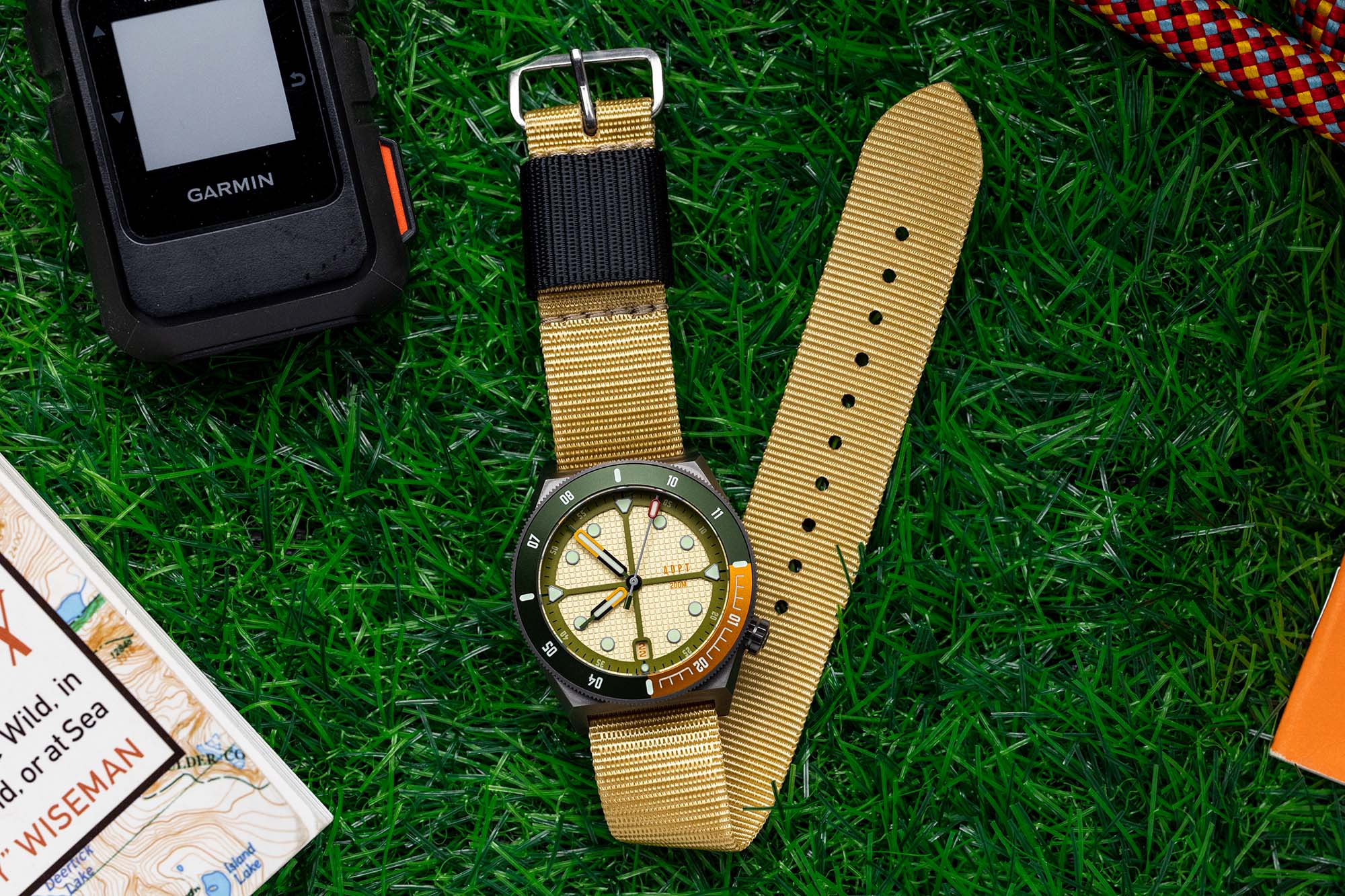 The ADPT Single Pass is a minimal take on the nylon strap, featuring one strip of nylon, a fixed nylon keeper, and a single buckle. Unlike the Mil-Strap, a Single Pass has no extra hardware or flaps of material, creating a cleaner, simpler overall look. The design also allows for watches to sit closer to the wrist, and or the band to be fastened under the wrist, for a more classic look.
