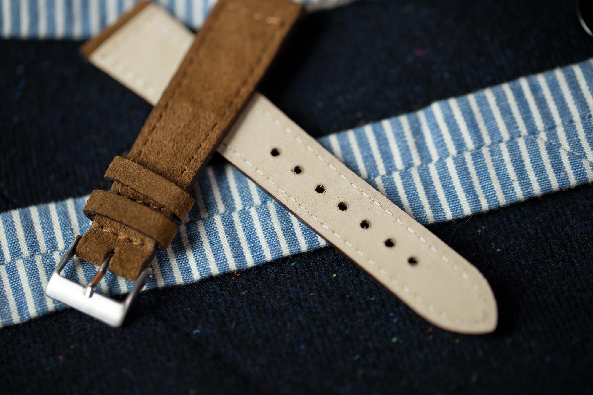 The Sackett is a classic suede watch strap. Timeless, always stylish, the suede uppers provide rich color and appealing texture that is hard not to like. Whether worn with jeans and t-shirt on the weekend, or khakis and a blazer, the Sackett will look at home on your wrist.