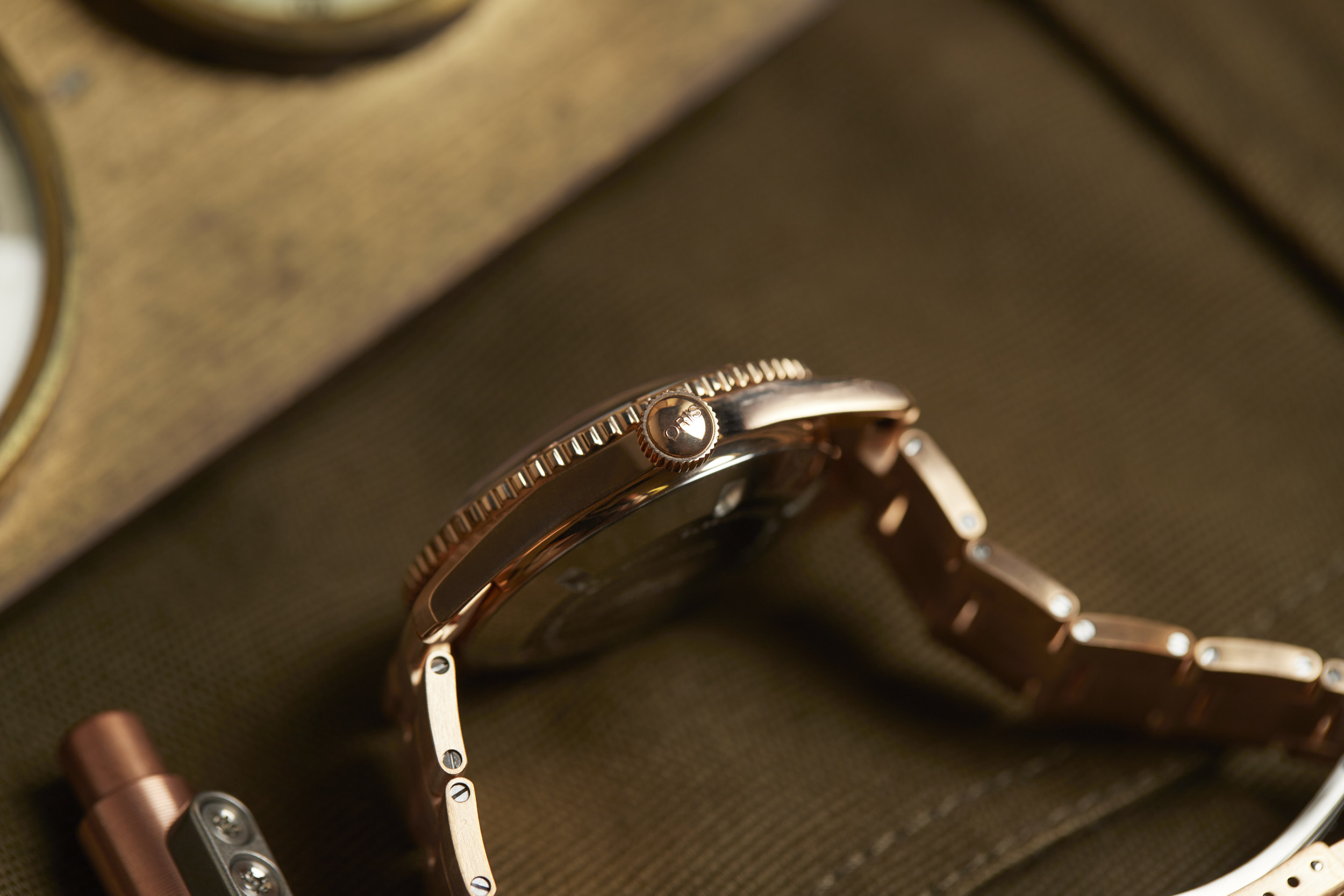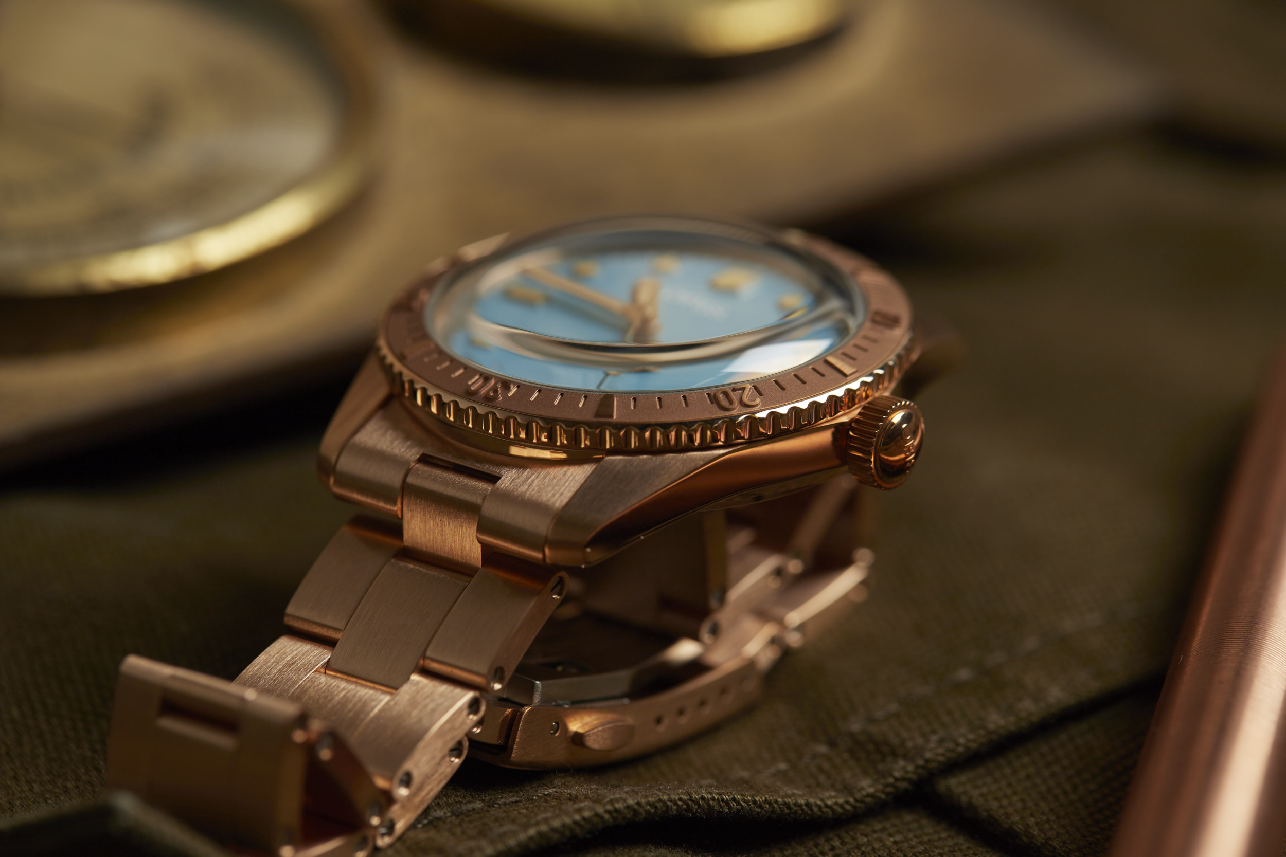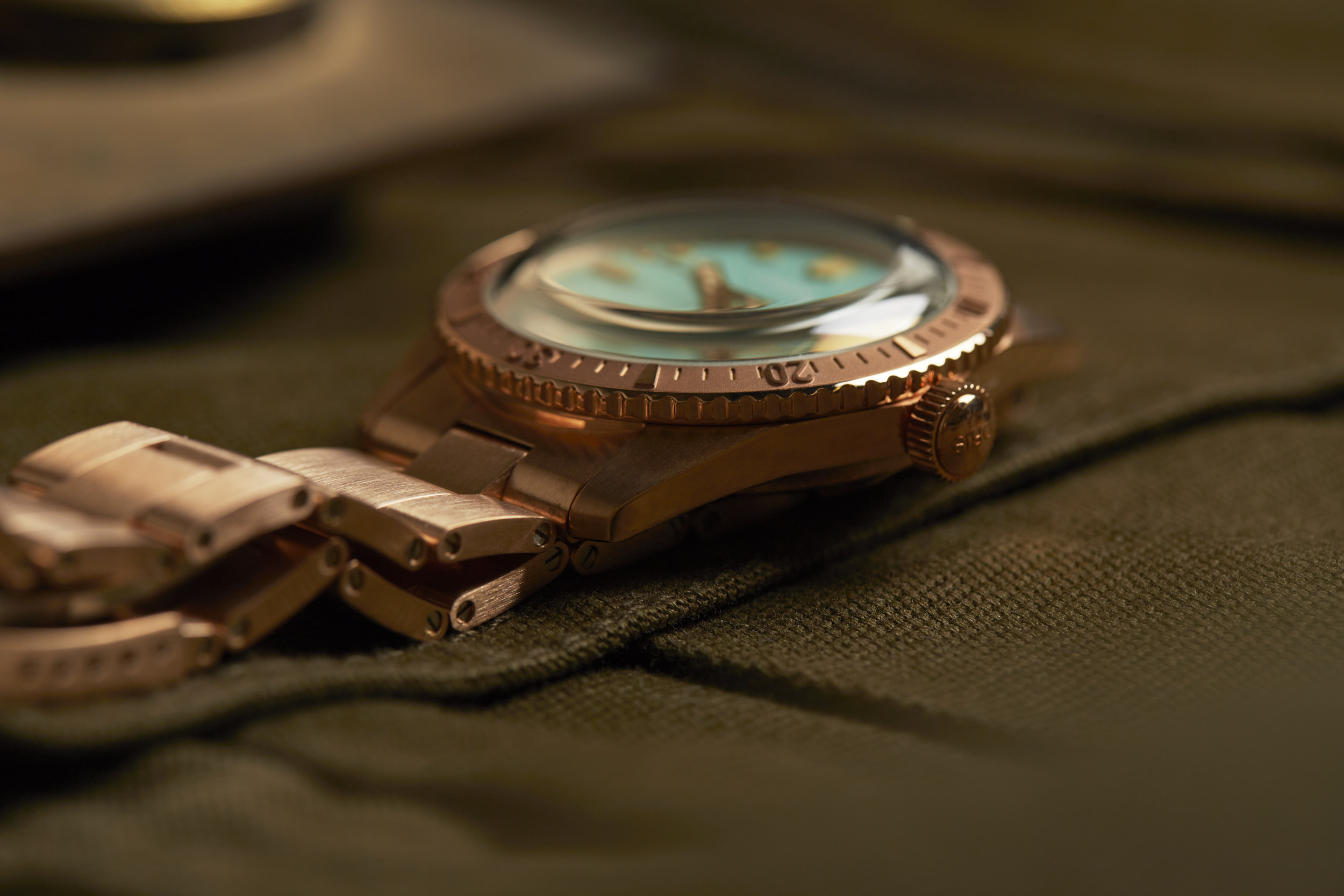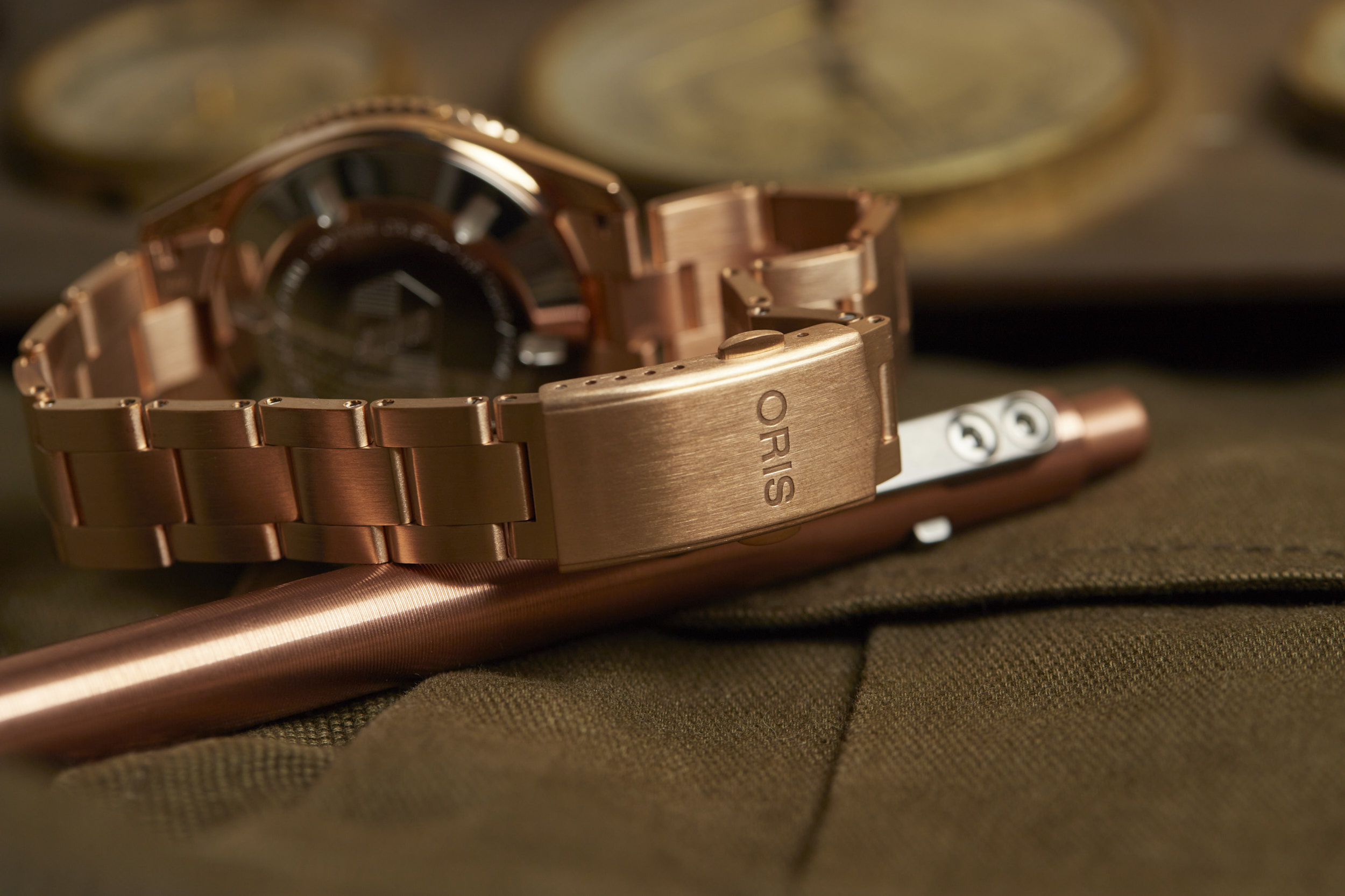 Apart from the dial colors, the standout is the 38mm fully bronze case. However, Oris didn’t stop there. The bezel and bracelet are also bronze, creating a unique look for the Cotton Candy Divers Sixty-Five. The bronze case will oxidize over time and create its own patina that will be unique to your watch. The bronze will become darker as it is worn and the patina acts as a protective layer for the bronze. If you desire, a simple salt and vinegar solution mixed with water will bring the bronze back to its original appearance and ready to start the oxidation process all over again.