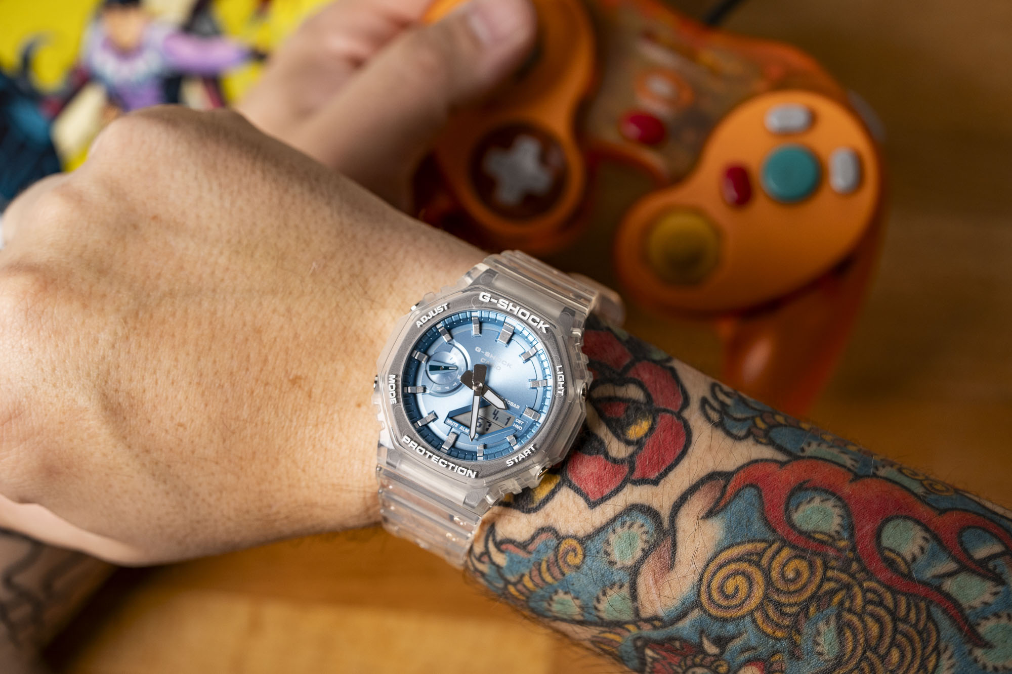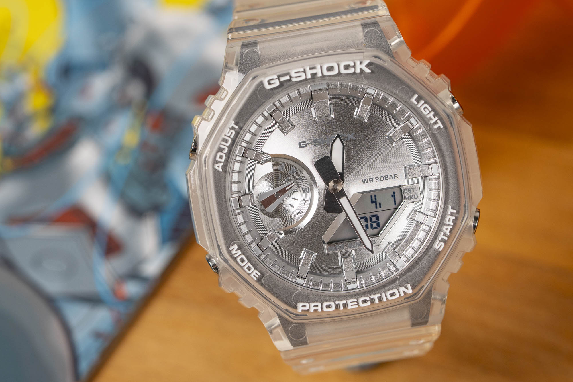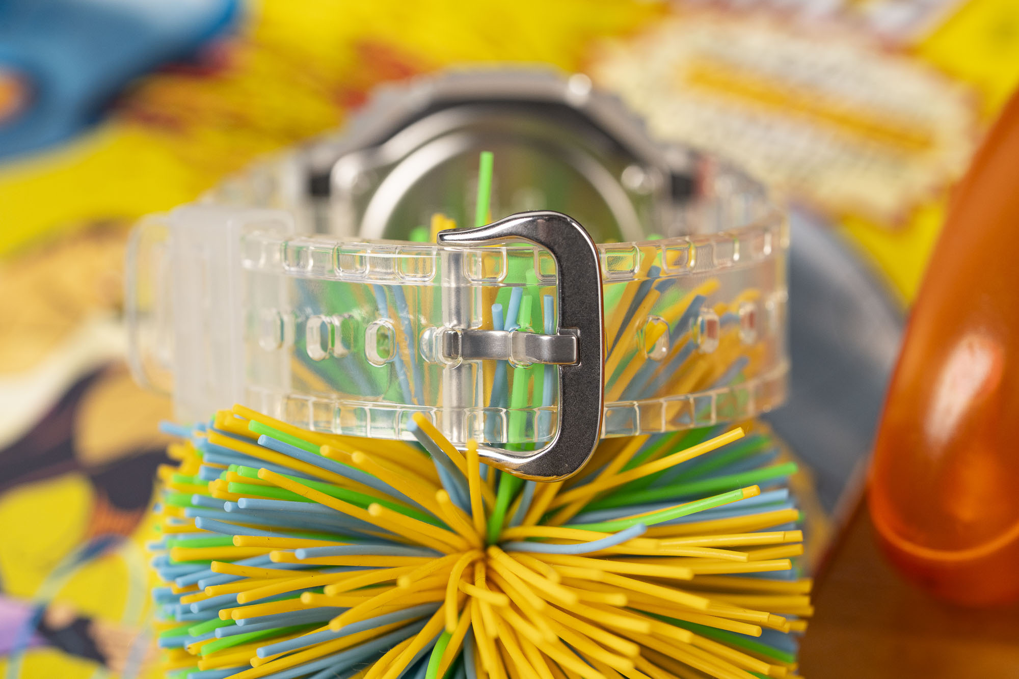 The Bright Metallic Collection is built around the 2100-series’ 45.4mm case, featuring a clear resin case over the watch’s Carbon Core Guard construction for style and durability. This 200m water resistant tool watch is further accented by its three metallic dial offerings — Silver, Ice Blue, and Salmon — each offering a unique take on the rugged G-SHOCK formula. All three variants are fitting on a matching clear resin strap for comfort and durability.