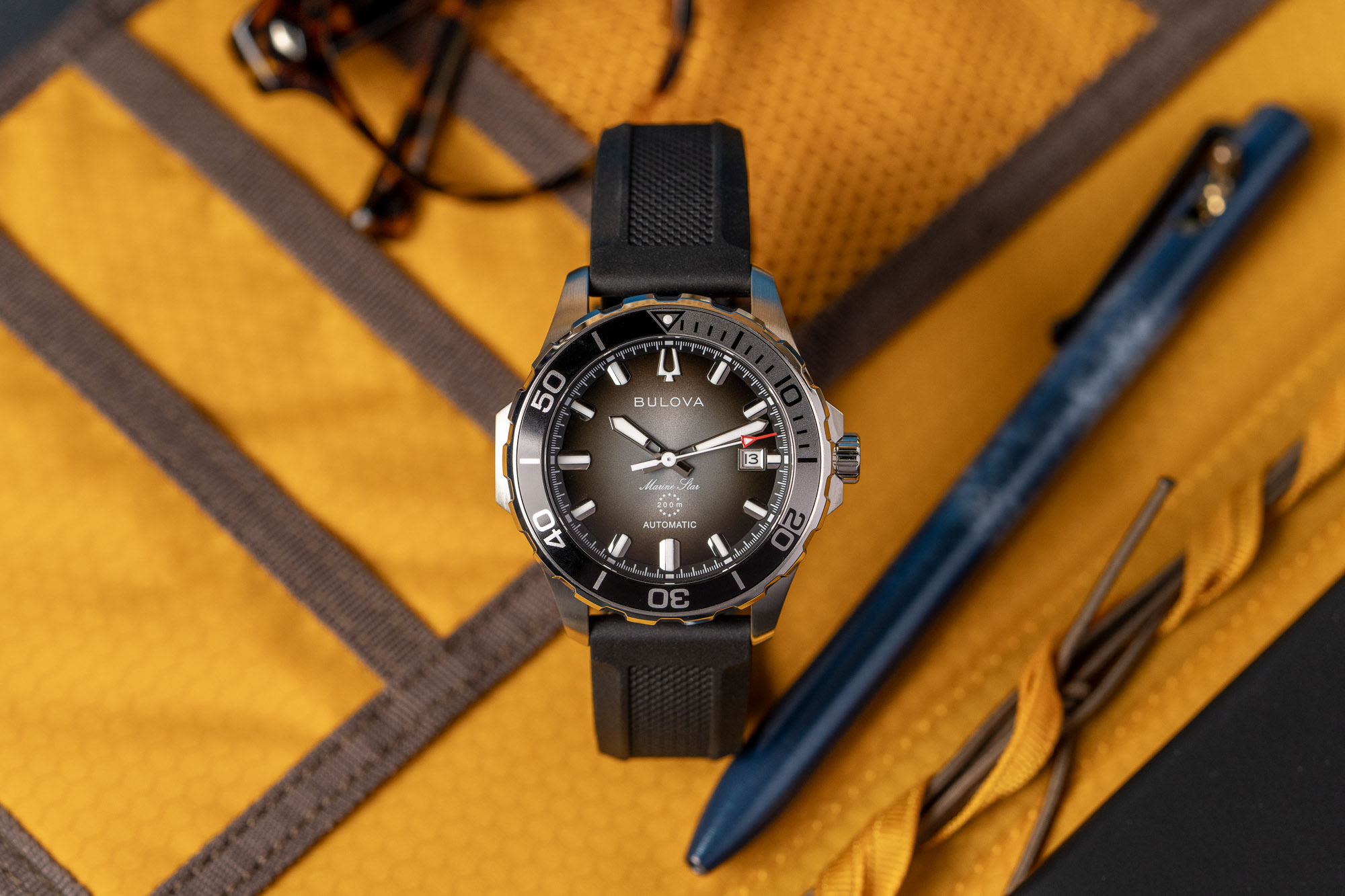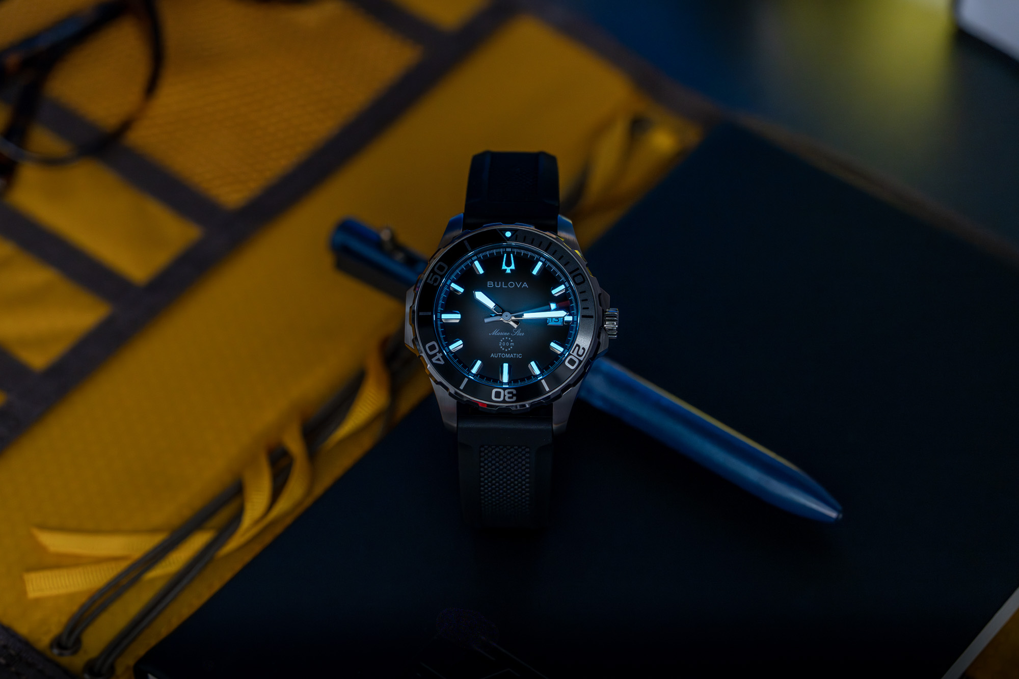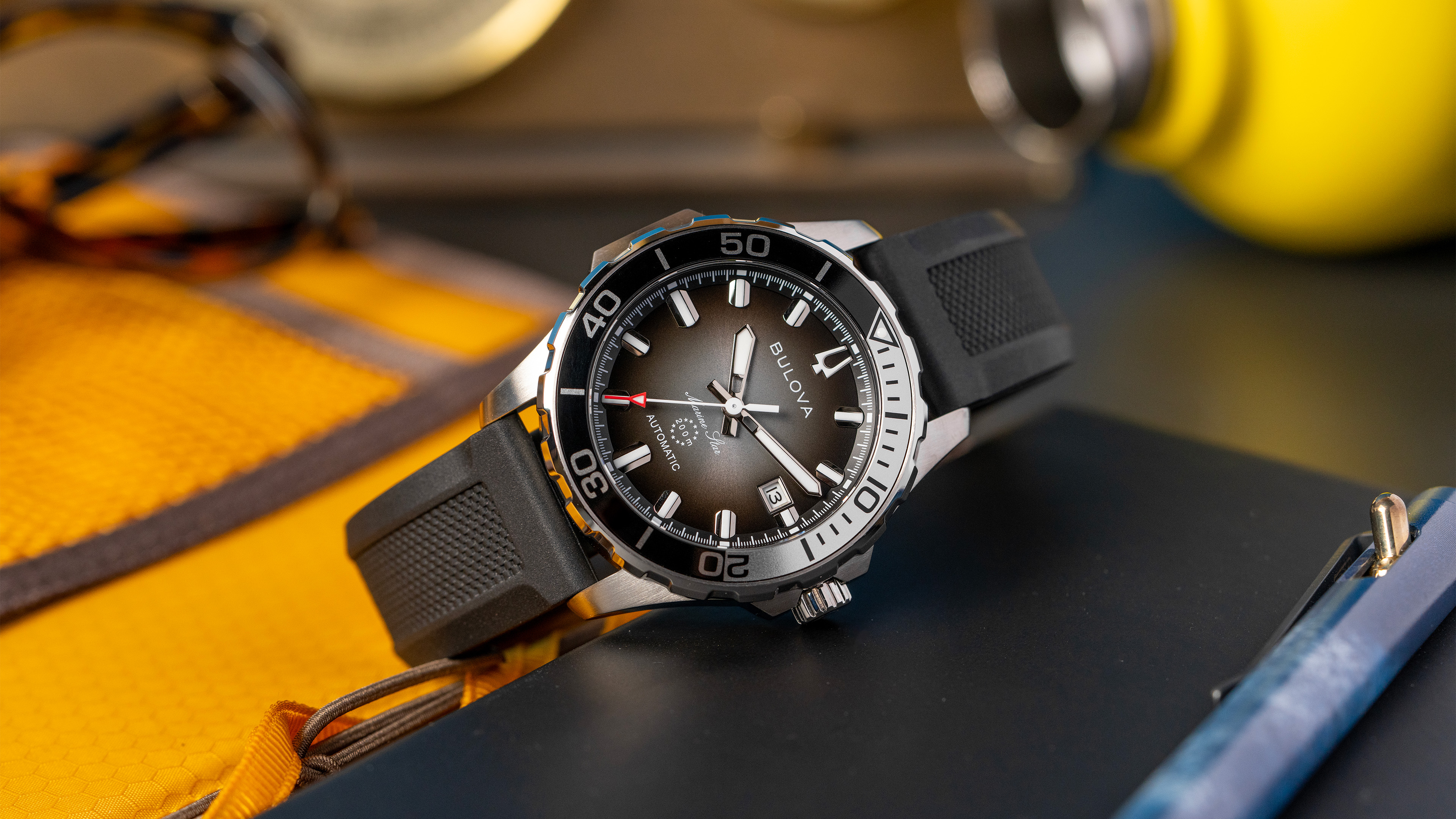 The Bulova Marine Star "Series B" Automatic collection represents a refined evolution of one of Bulova’s most enduring sport lines, blending maritime utility with a contemporary aesthetic. This redesign focuses on a versatile 41mm silhouette that bridges the gap between a rugged tool watch and a polished daily wearer. The collection is available in two primary configurations: the 98B466, featuring a sunray blue-to-black gradient dial on a stainless steel H-link bracelet, and the 98B465, which pairs a silver-to-black gradient dial with a high-performance black HNBR rubber strap.
