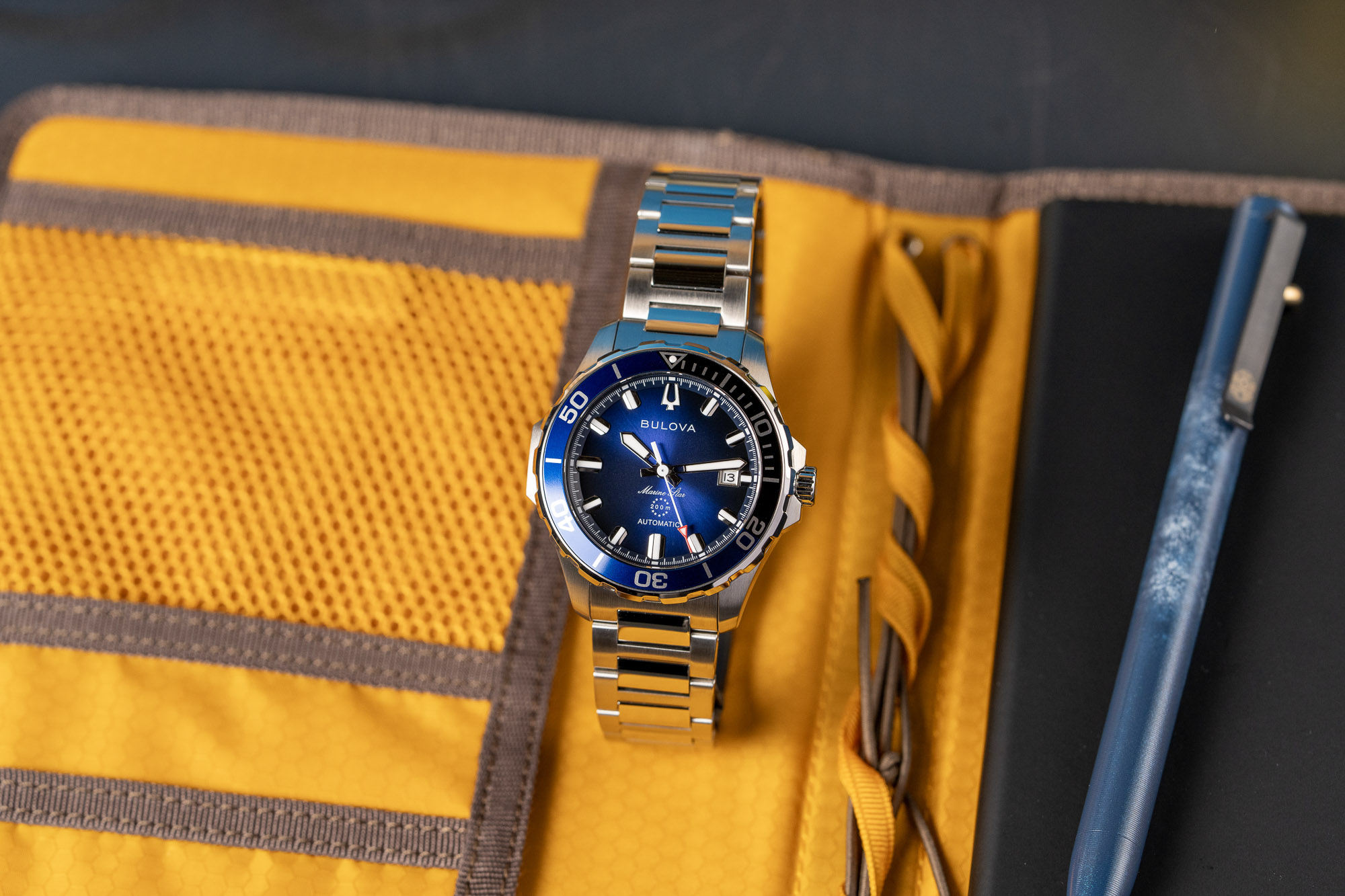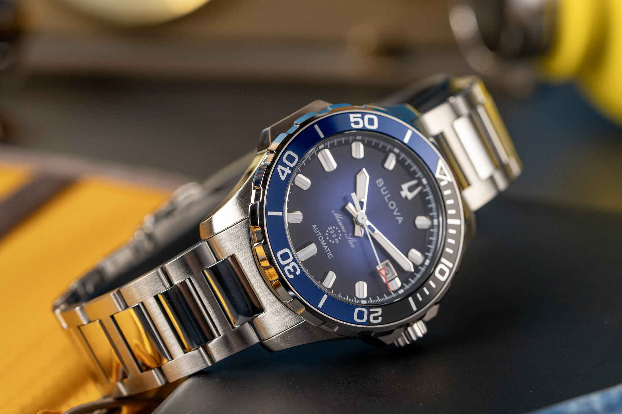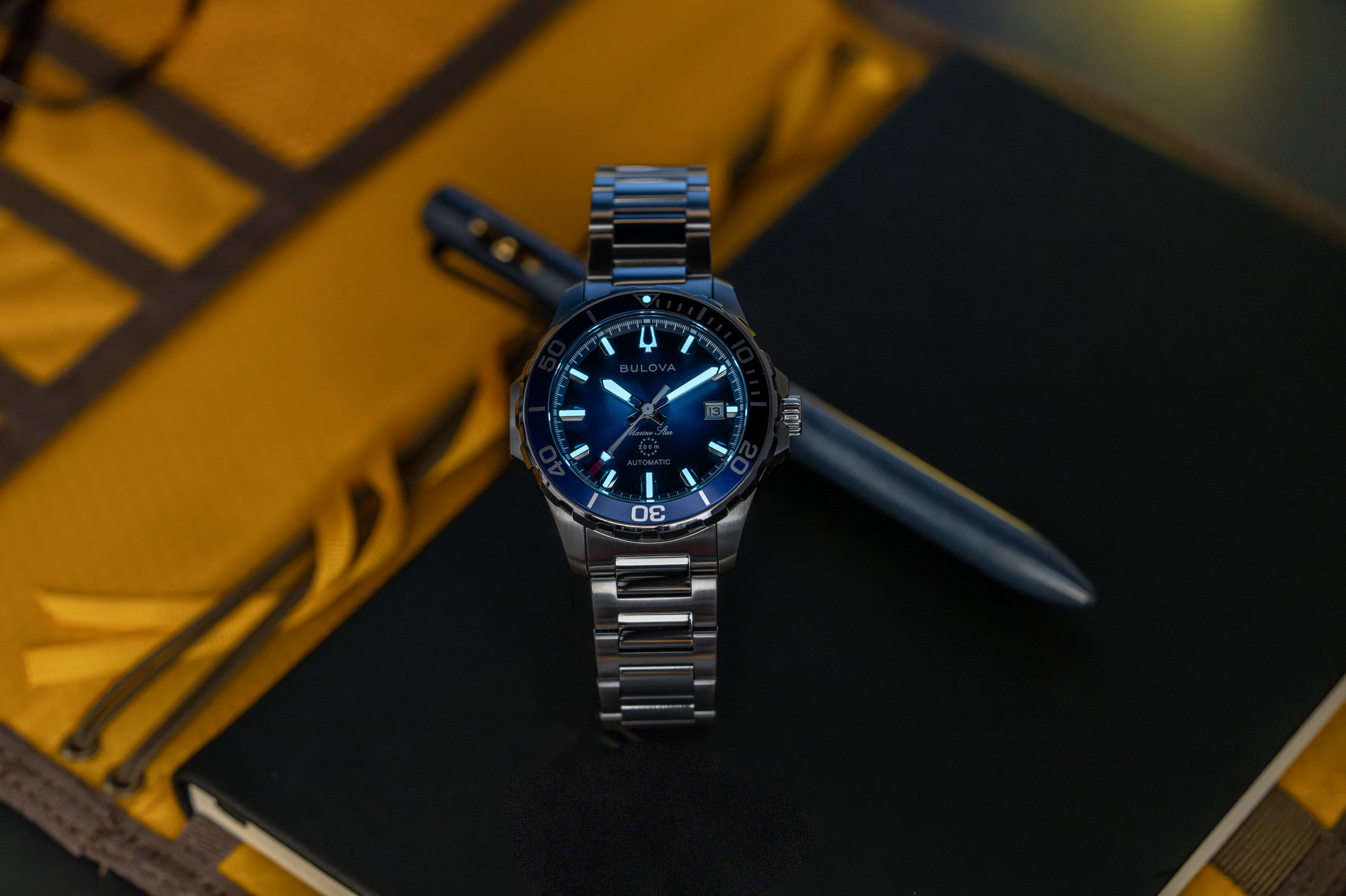 The Bulova Marine Star "Series B" Automatic collection represents a refined evolution of one of Bulova’s most enduring sport lines, blending maritime utility with a contemporary aesthetic. This redesign focuses on a versatile 41mm silhouette that bridges the gap between a rugged tool watch and a polished daily wearer. The collection is available in two primary configurations: the 98B466, featuring a sunray blue-to-black gradient dial on a stainless steel H-link bracelet, and the 98B465, which pairs a silver-to-black gradient dial with a high-performance black HNBR rubber strap.