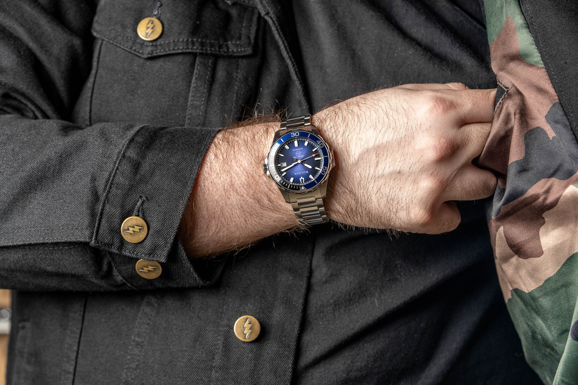 The build quality emphasizes durability and clarity, featuring a 316L stainless steel case equipped with a screw-down crown and a unidirectional rotating bezel with a bi-color aluminum timing insert. The dials are protected by a scratch-resistant anti-reflective sapphire crystal, ensuring maximum legibility above and below the surface. Luminous hands and applied markers provide a strong glow in low-light conditions, while the professional 200-meter water resistance rating makes both variants suitable for swimming, showering, and snorkeling.