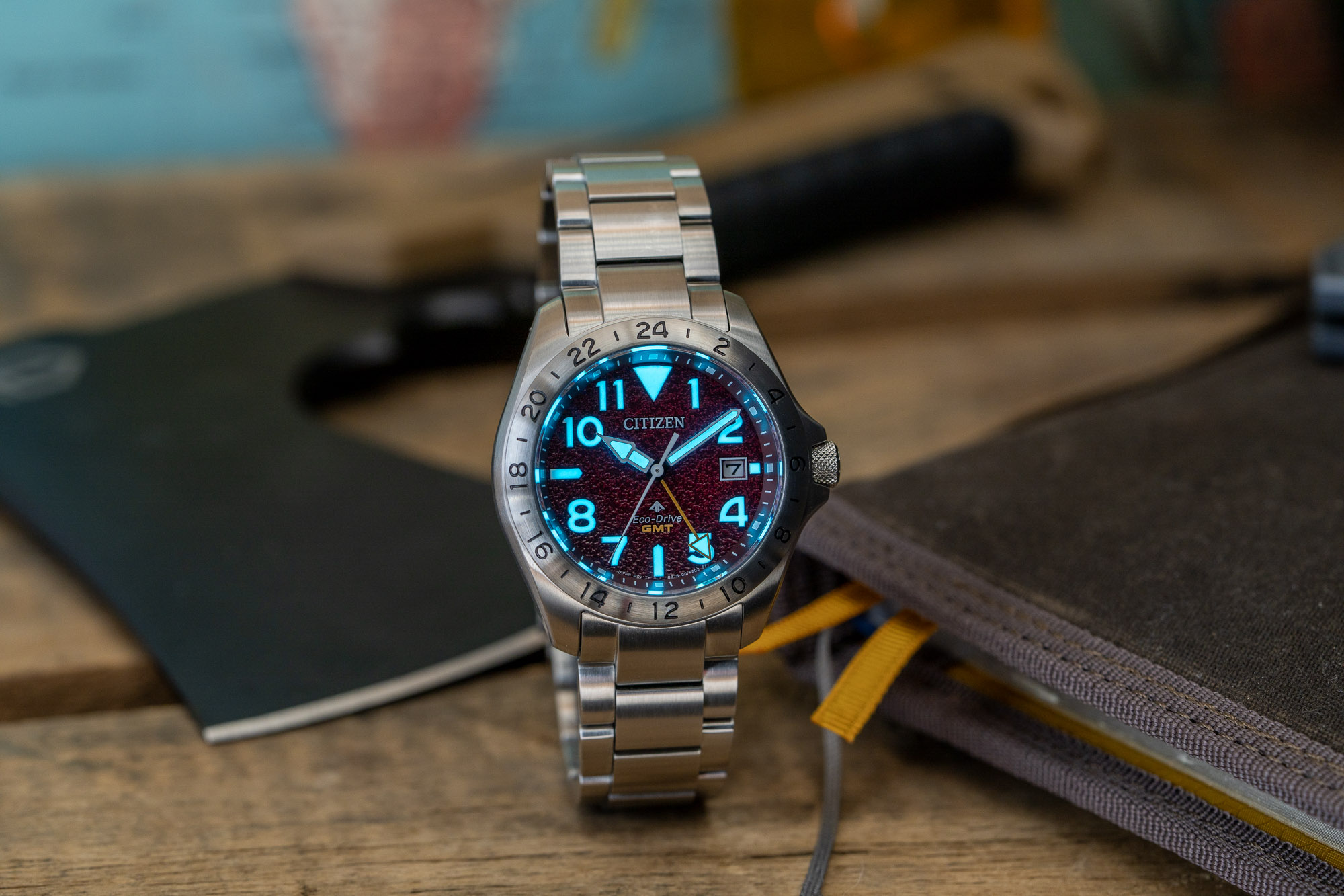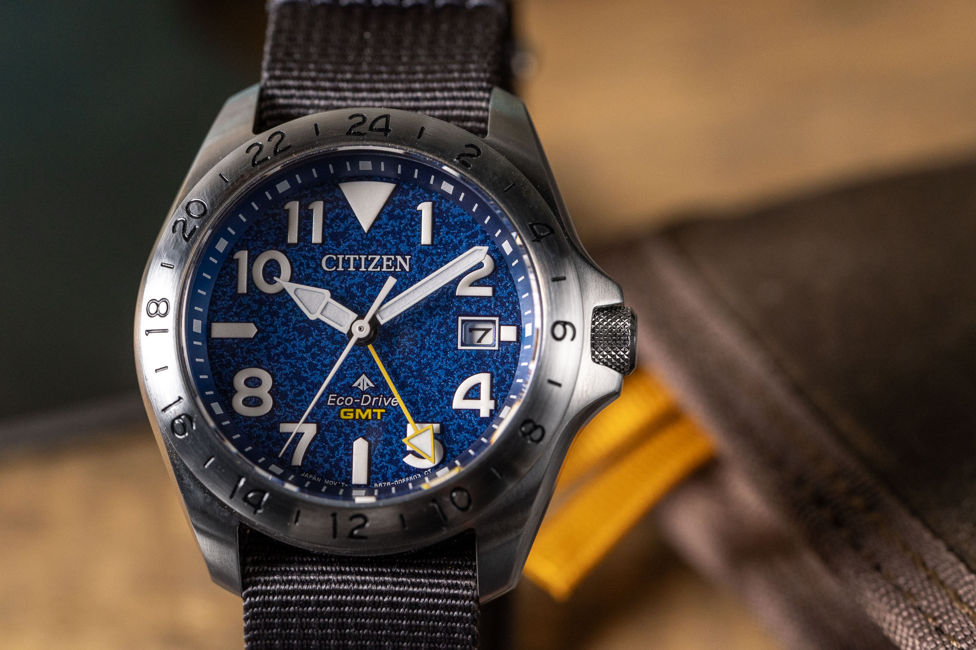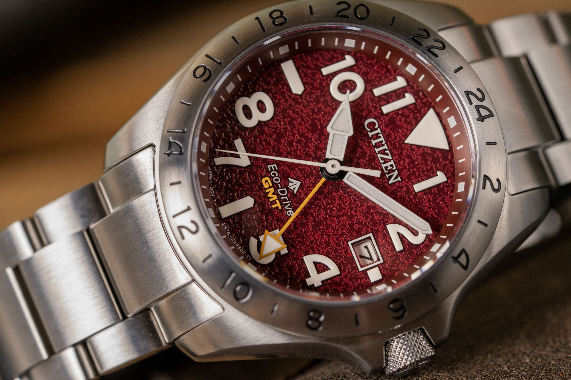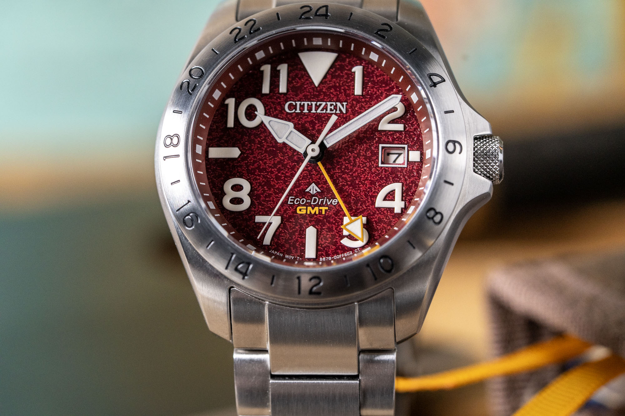 - Movement: Eco-Drive Caliber B877/B878 (GMT / Flyer Function)