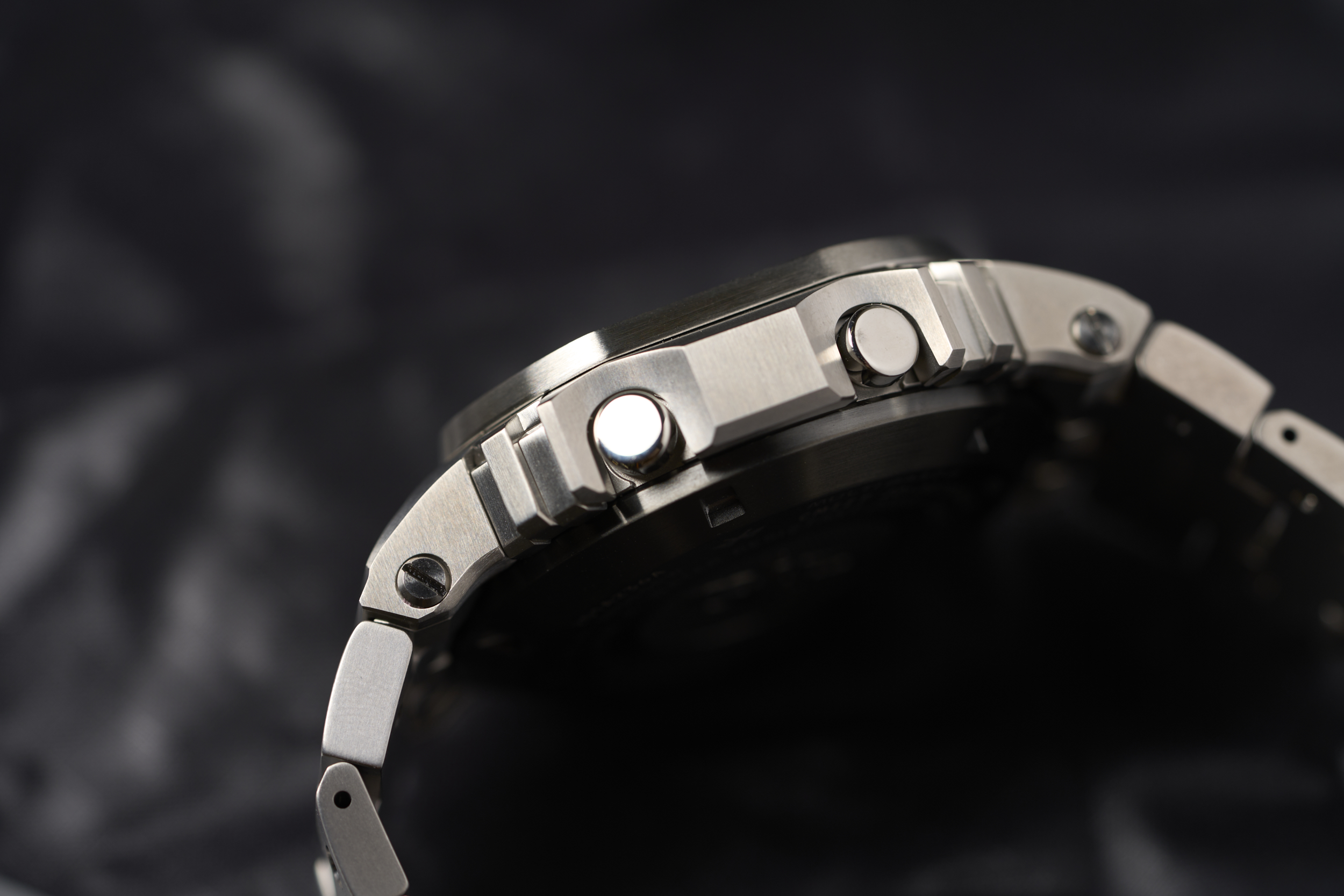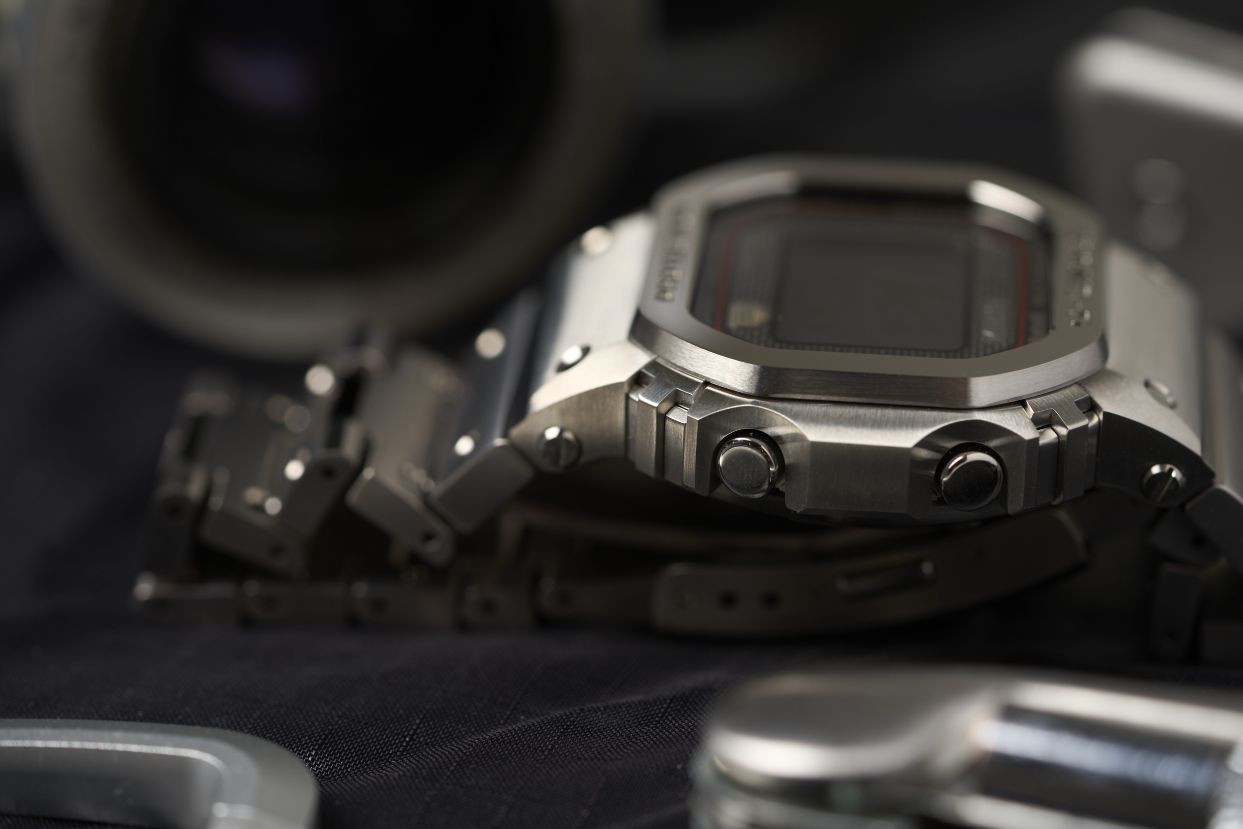 At 12.9mm thick, the 43.2mm wide by 49.4mm lug-to-lug cases retain the highly versatile proportions of the original model, and the watches even feature the same “brick” pattern and red outline around their digital displays as a tribute to the inaugural design. However, that is where the similarities end, as their cases are crafted from a special blend of Ti64 titanium, while their solid-link bracelets are made from DAT55G, a different titanium-based alloy with a hardness rating of about three times that of pure titanium.