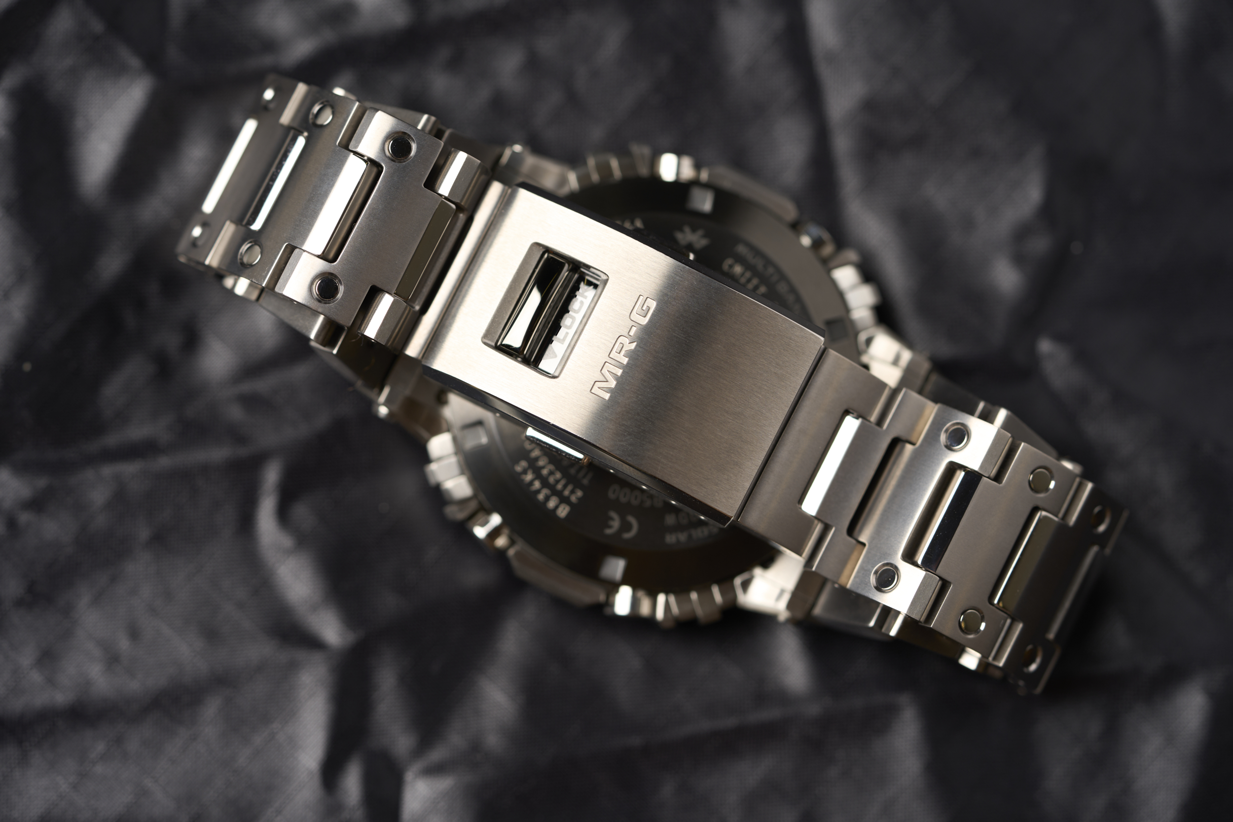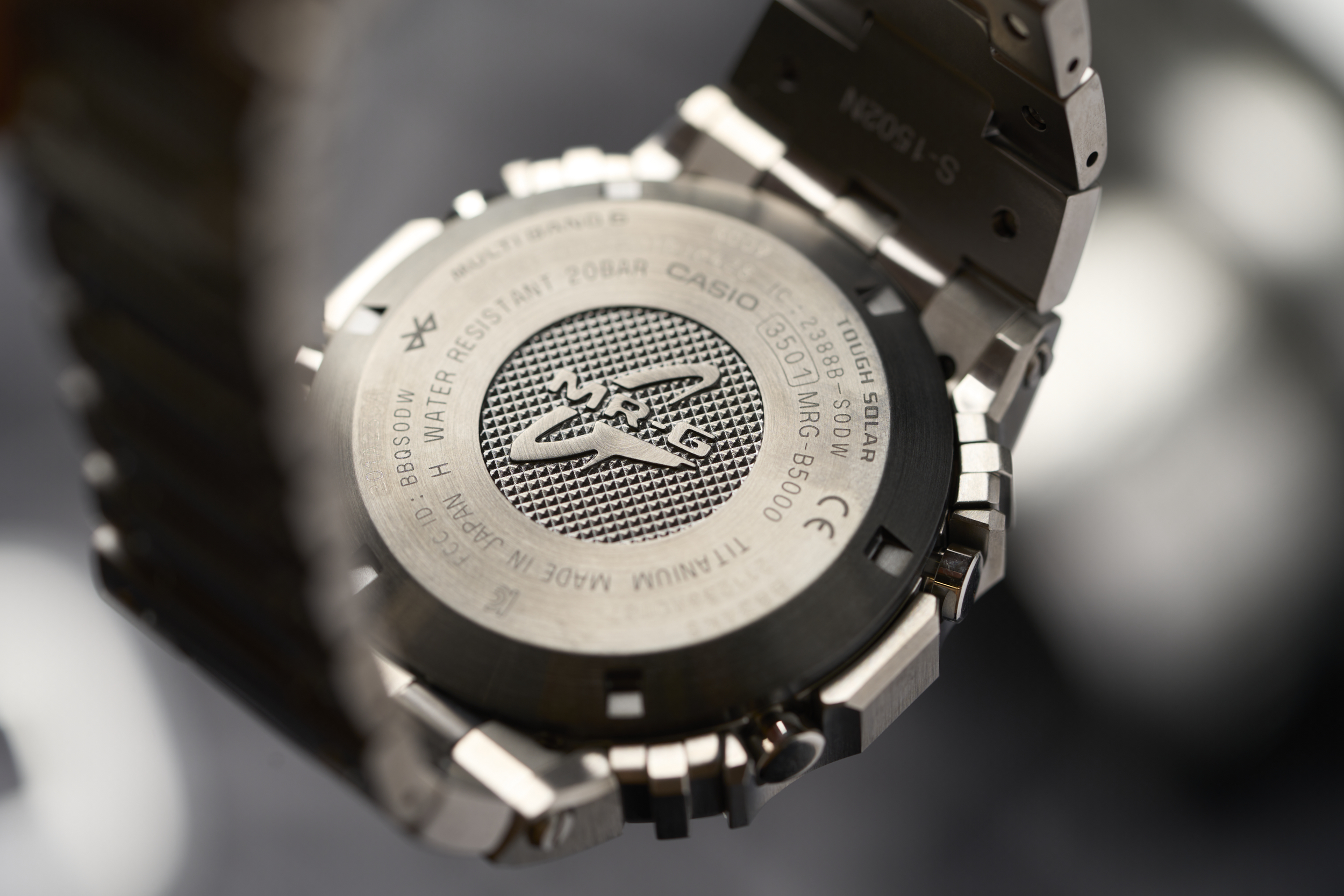 To further enhance their scratch resistance and elevated aesthetic, the top sections of their immaculately constructed, 25-component bezels are rendered in COBARION®, a cobalt-chrome alloy that offers a brilliant shine similar to platinum, while simultaneously being four times harder than standard titanium. The MRG-B5000D-1 is coated in titanium carbide for a brilliant metallic finish, while the MRG-B5000B-1 receives a gloss black DLC (diamond-like carbon) coating that is intended to emulate the appearance of the very first G-SHOCK’s black resin bezel and strap.