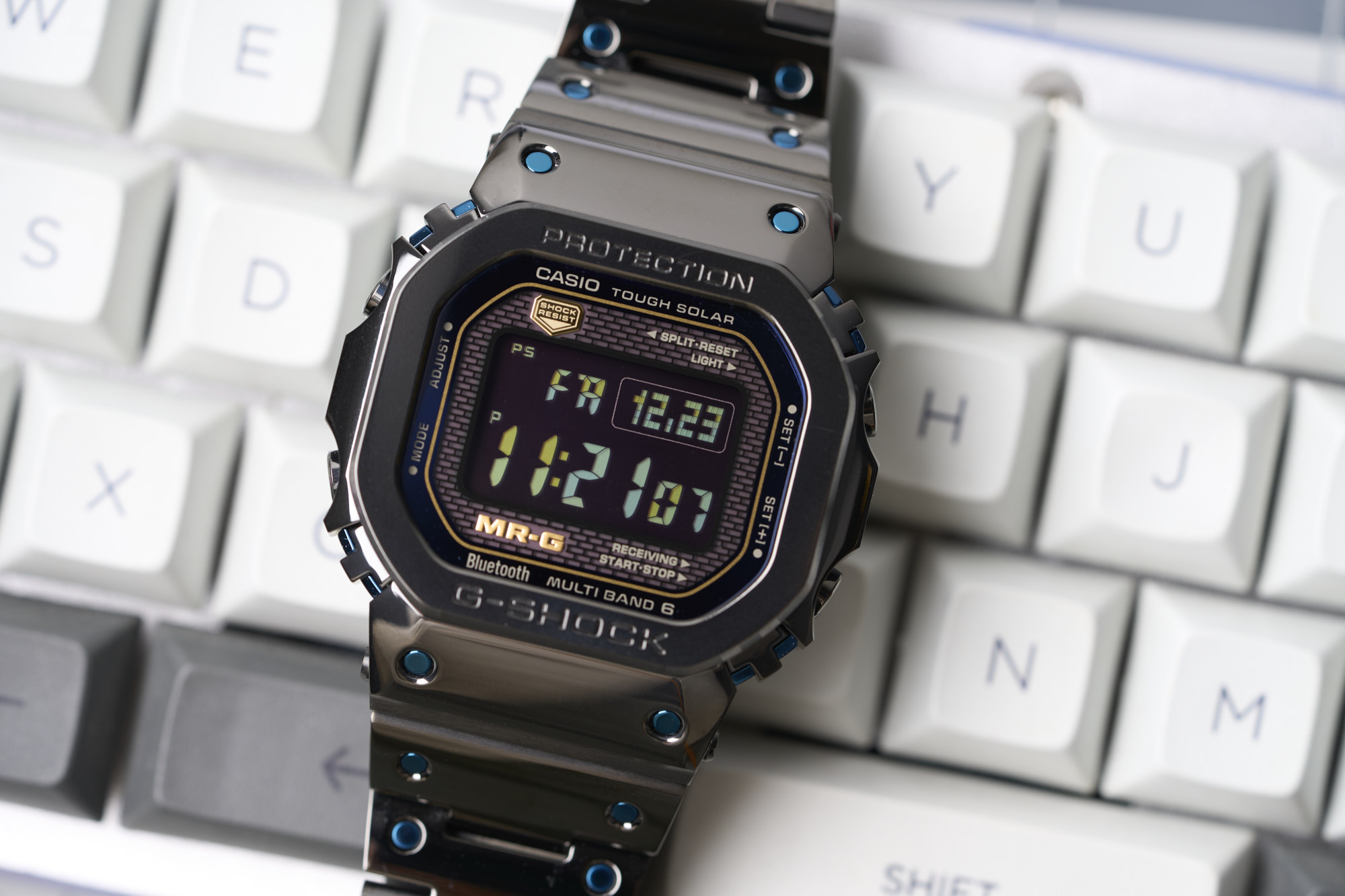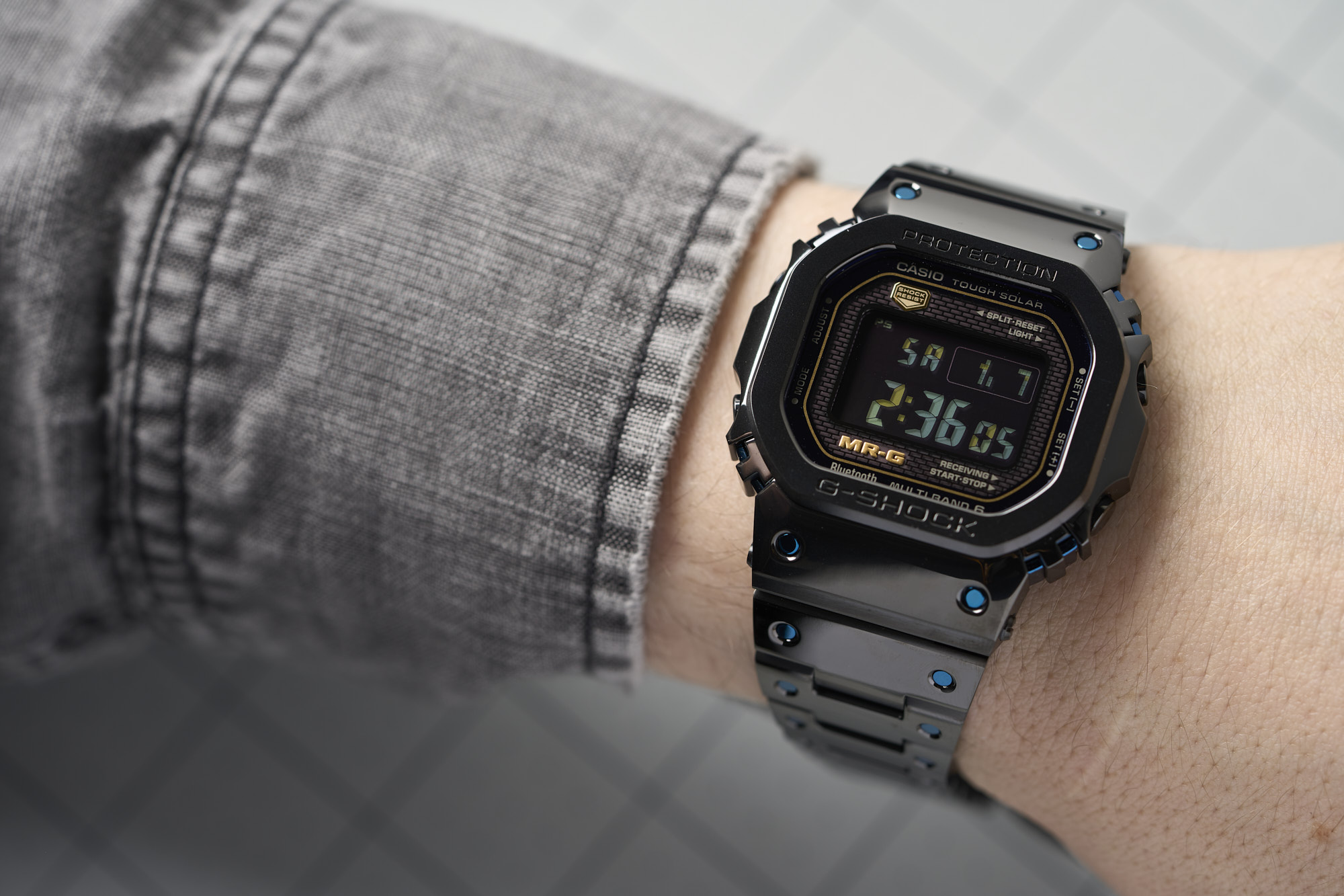 G-SHOCK’s “MR-G” series represents the brand’s flagship line of ultra-durable timepieces that combine cutting-edge technology with beautifully-finished metal cases and bracelets. Drawing inspiration from the very first G-SHOCK ever created, the MRG-B5000D-1 and MRG-B5000B-1 reimagine the classic fan-favorite “square” silhouette with Bluetooth-equipped movements and state-of-the-art materials, including two different types of titanium and an extra-hard proprietary alloy known as COBARION®.