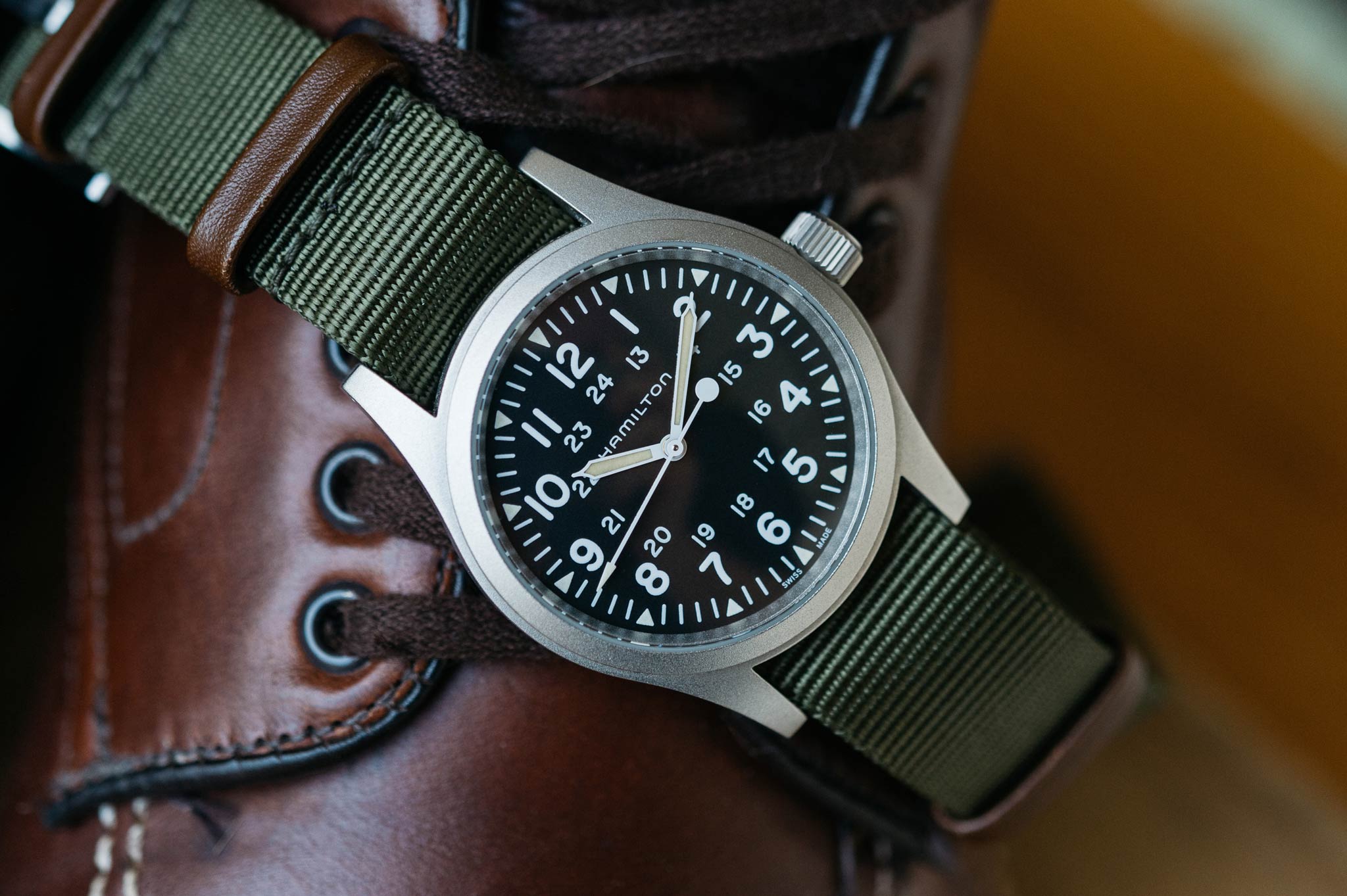 In 2017, Hamilton reissued, so to speak, this classic field watch design with the Khaki Field Mechanical. Now sporting 38mm cases with sapphire crystals, Hamilton stuck to the typography, hand design and general layout of that original mil-spec to create a perfect balance of modern watch with vintage styling. A true go anywhere, do anything tool watch, the Khaki Field Mechanical is the kind of timepiece you put on and never take off.
