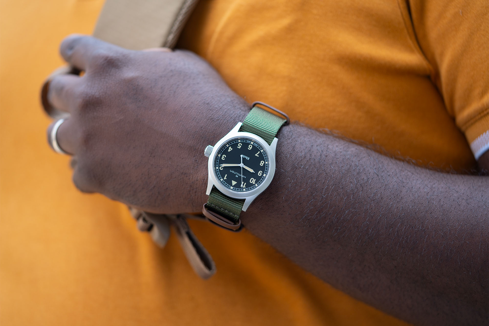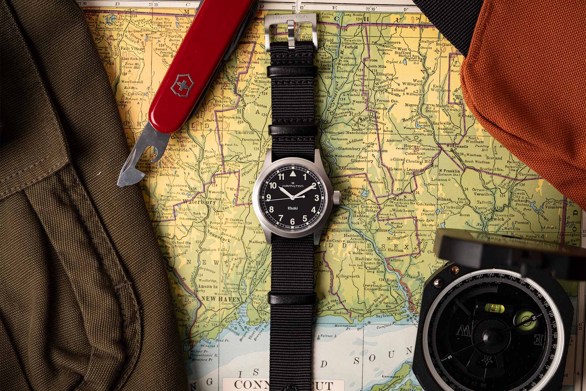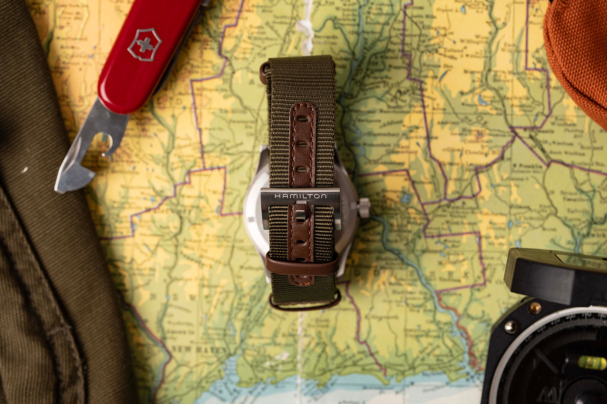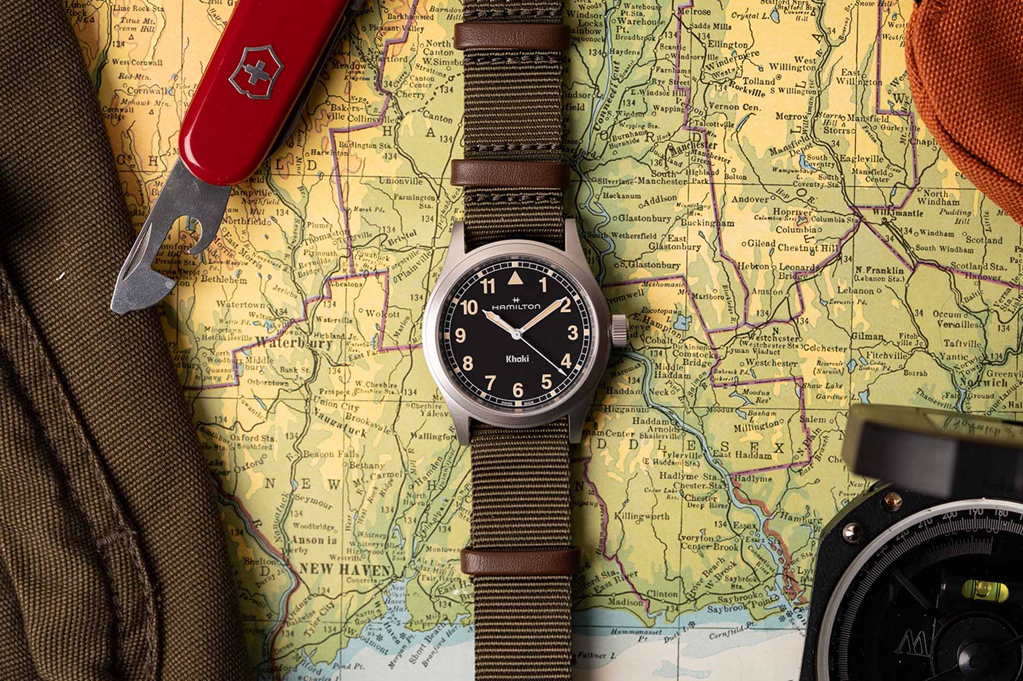 Hamilton’s Khaki line of field watches traces its lineage across two world wars and over half a century of supplying the American and British militaries with rugged tool watches. Specifically produced for the civilian market, the Khakis have brought Hamilton’s mil-spec design to the masses since the 1980s. Compact, tough, and legible, the Khaki Field Quartz is a rugged companion for whatever awaits in the field.