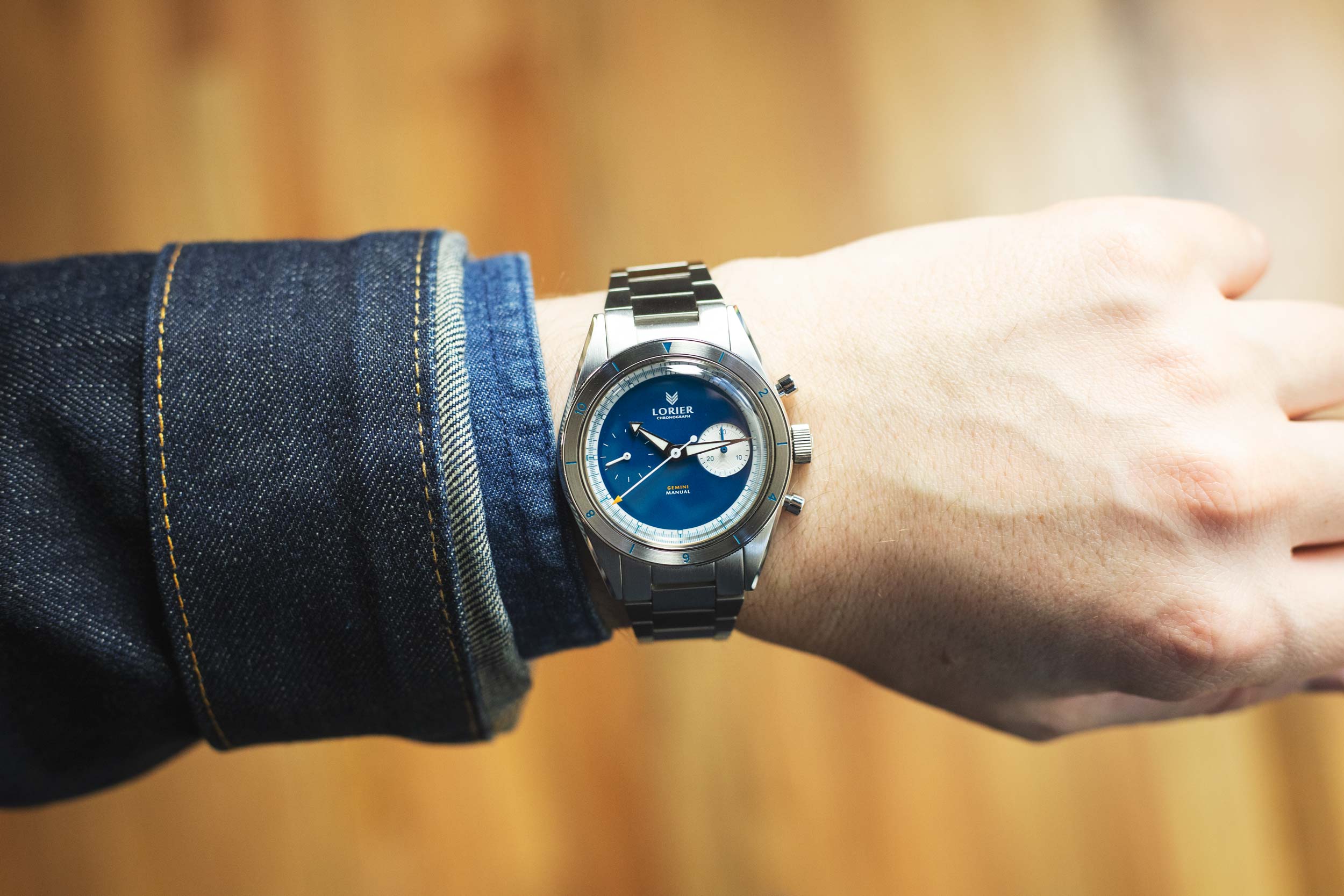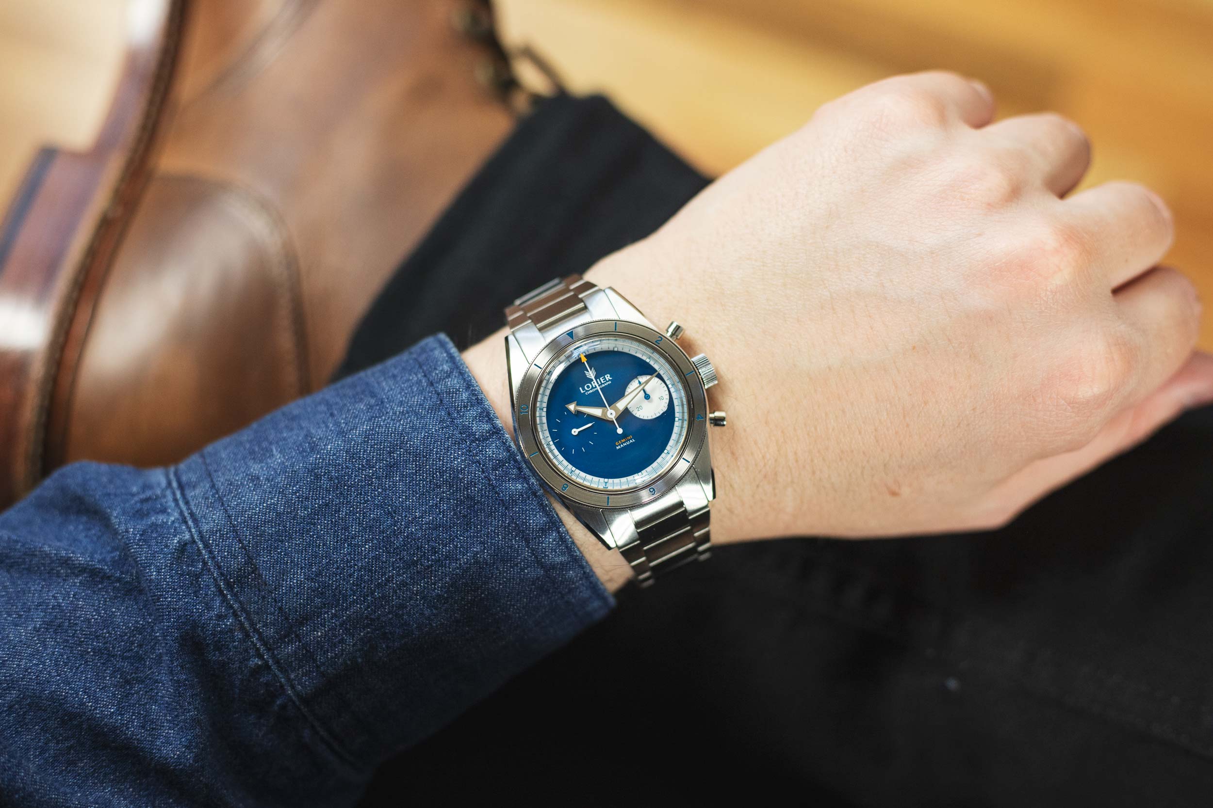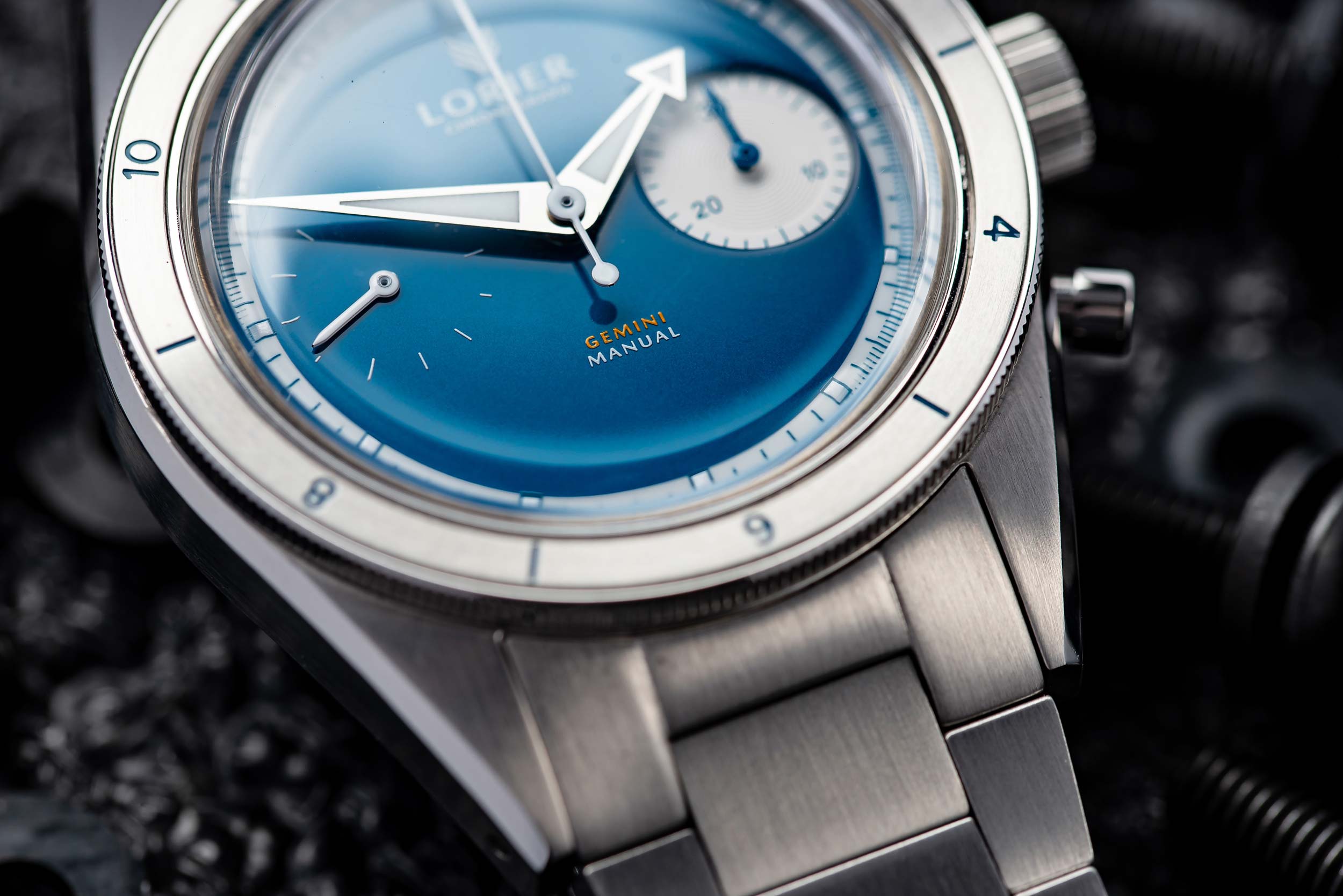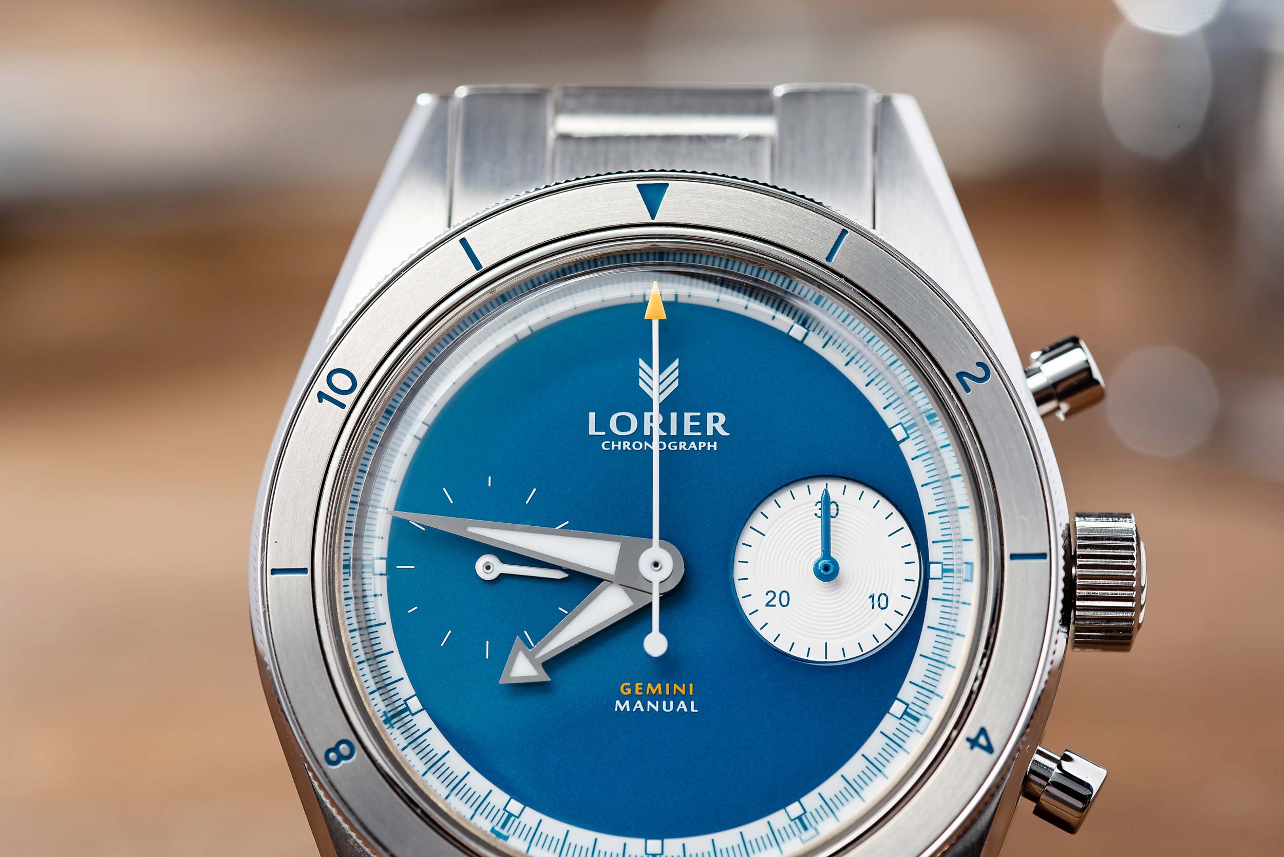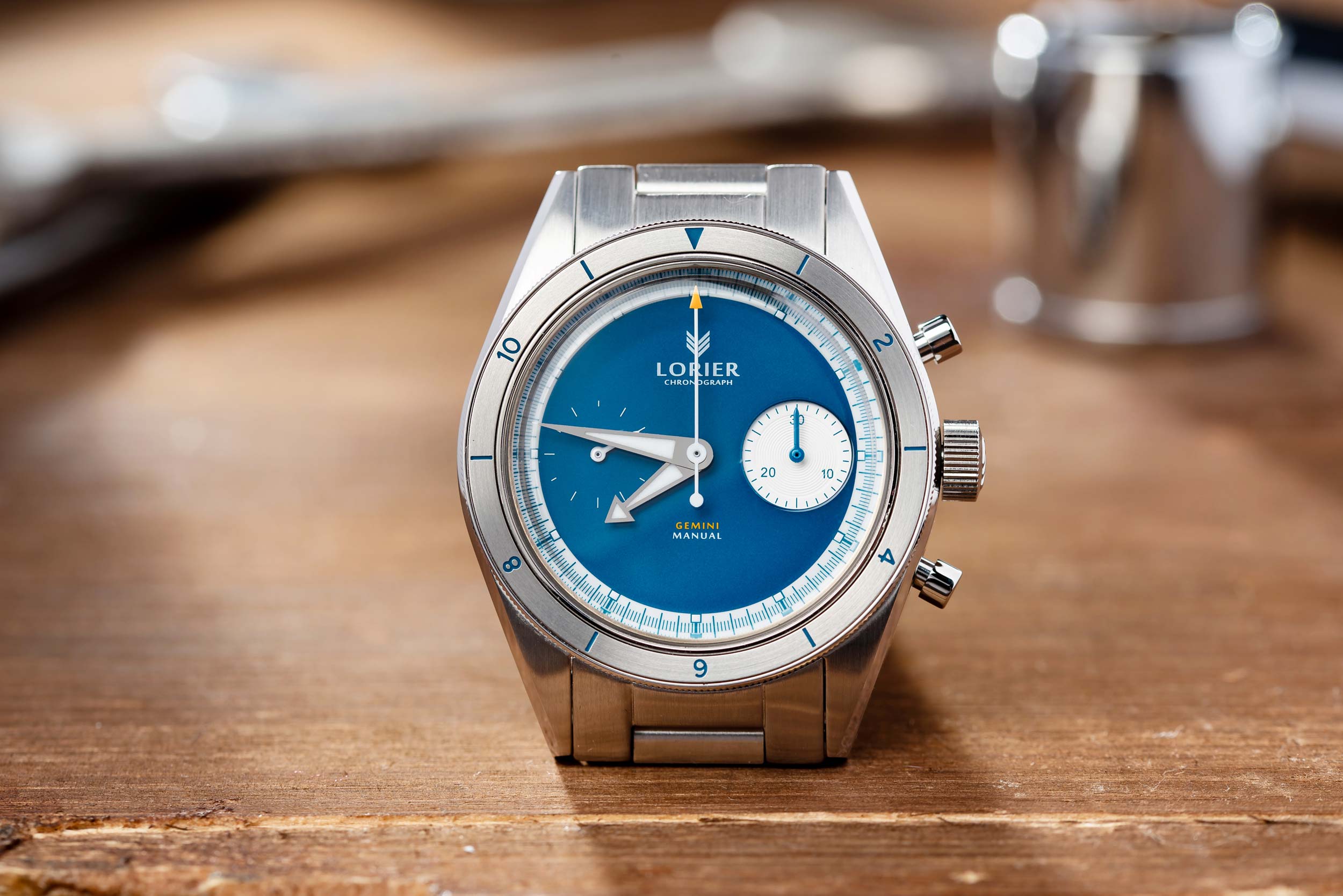Lorier is a young, NYC-based watch brand that has seen a lot of success since launch. Specializing in midcentury-inspired sports watches, they've quickly become known for their attention to detail, finishing quality and approachable price point. The most recent addition to their collection, the Gemini, is a 39mm hand-wound "bicompax" chronograph. Featuring a massive domed acrylic crystal, bi-directional 12-hour bezel, and their signature flat-link bracelet, it has unparalleled style and charm that make it stand out from other vintage-inspired chronographs.