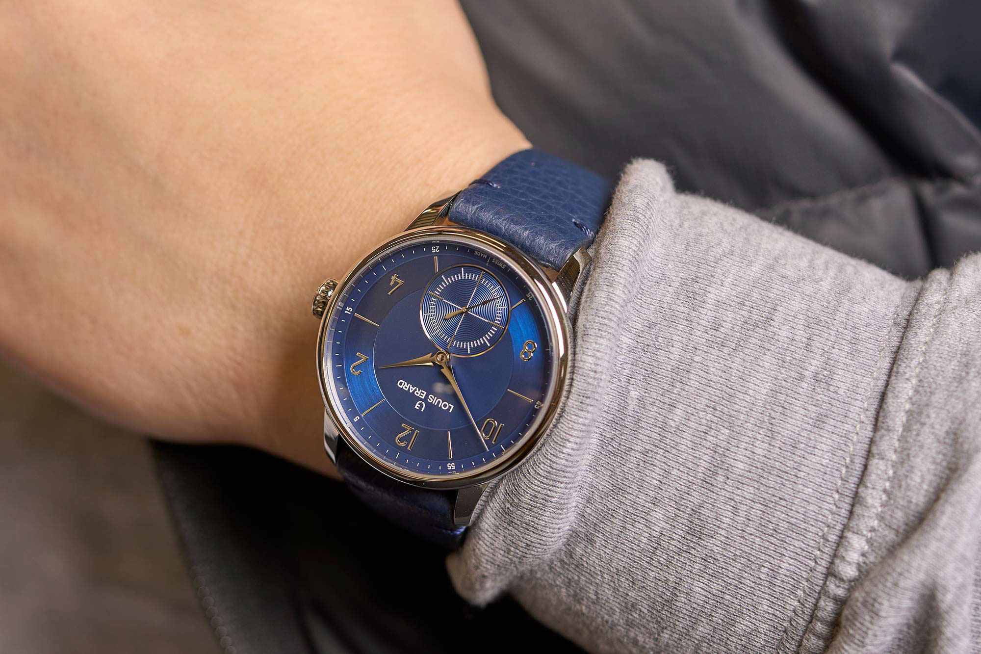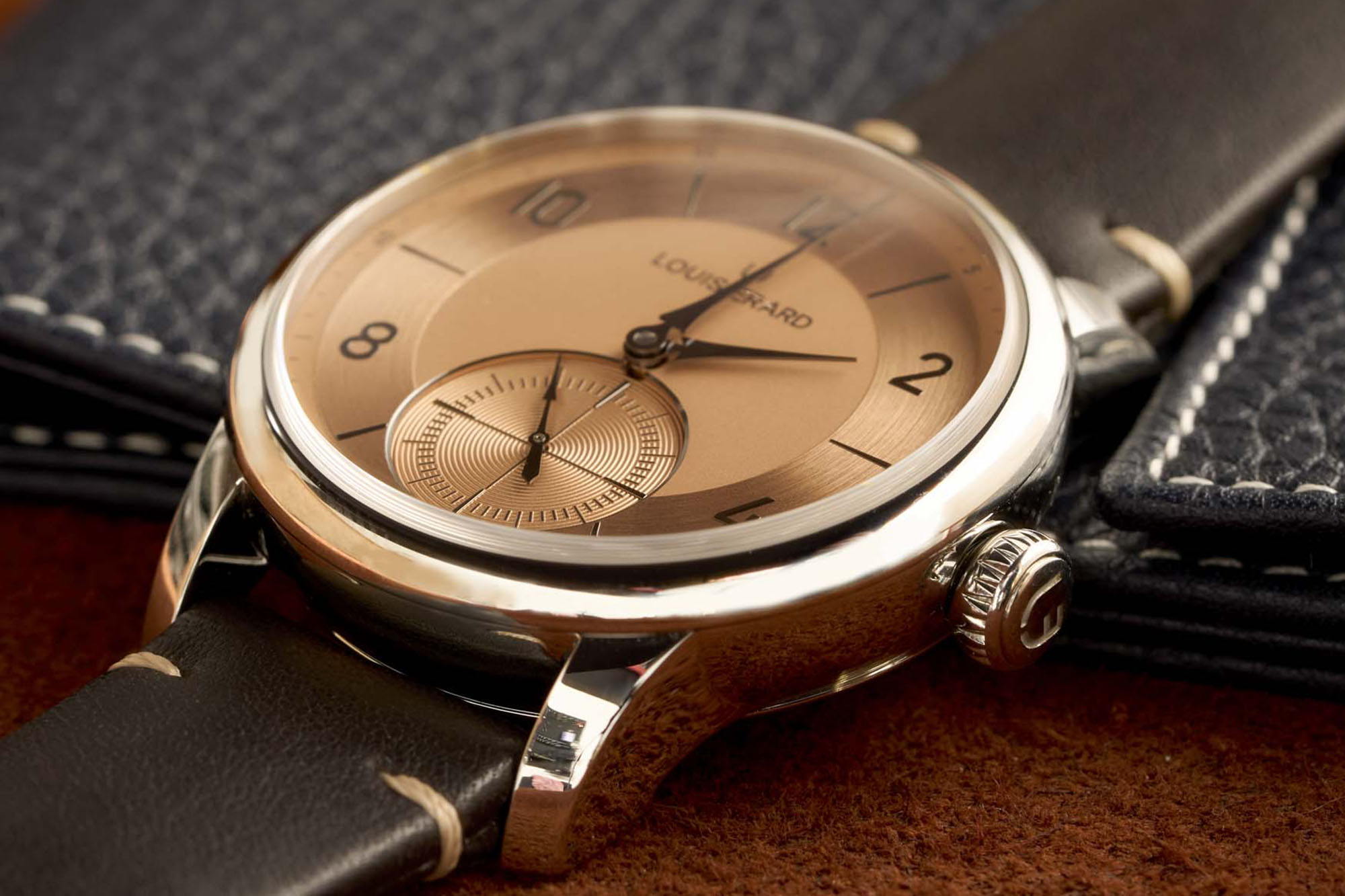 A core model of the Louis Erard catalog, the Excellence Petite Secondes watches are refined and sophisticated. They are rare, too, with only around 100 made per color per year. The dial is a variation on a “sector” layout with numerals, markers, and textures laid out along concentric circles with an oversized sub-seconds dial at six o’clock. Long arrow hands with impossibly thin points clearly point to the time and contribute to the overall elevated aesthetic.