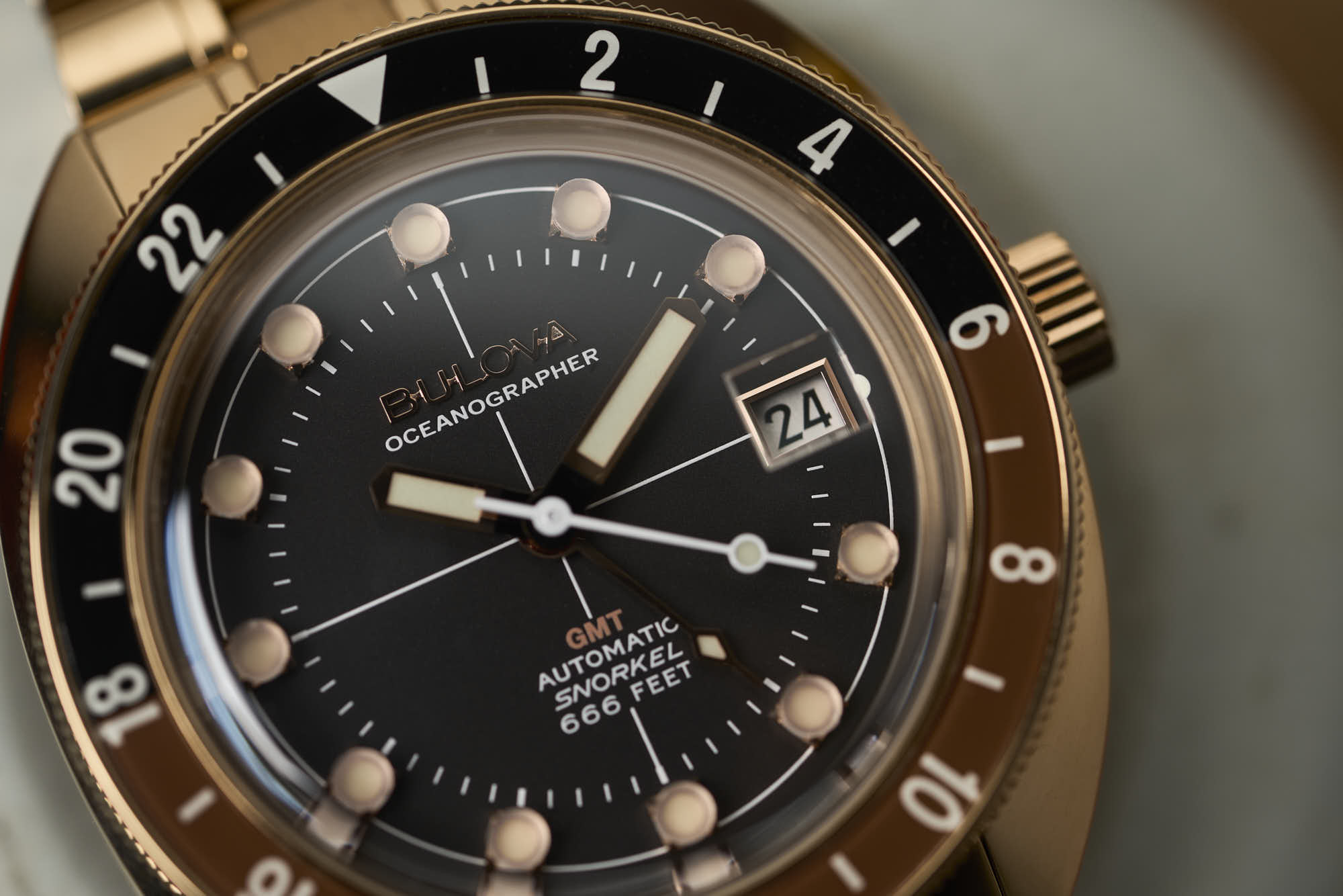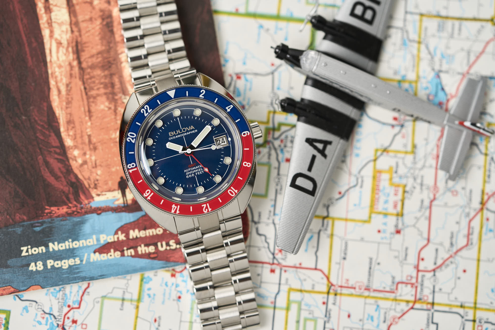 Introducing the Bulova Oceanographer GMT, a remarkable timepiece that combines iconic design with precision engineering. This watch is designed to meet the needs of adventurers and watch enthusiasts alike, making it the perfect companion for journeys both on land and underwater.