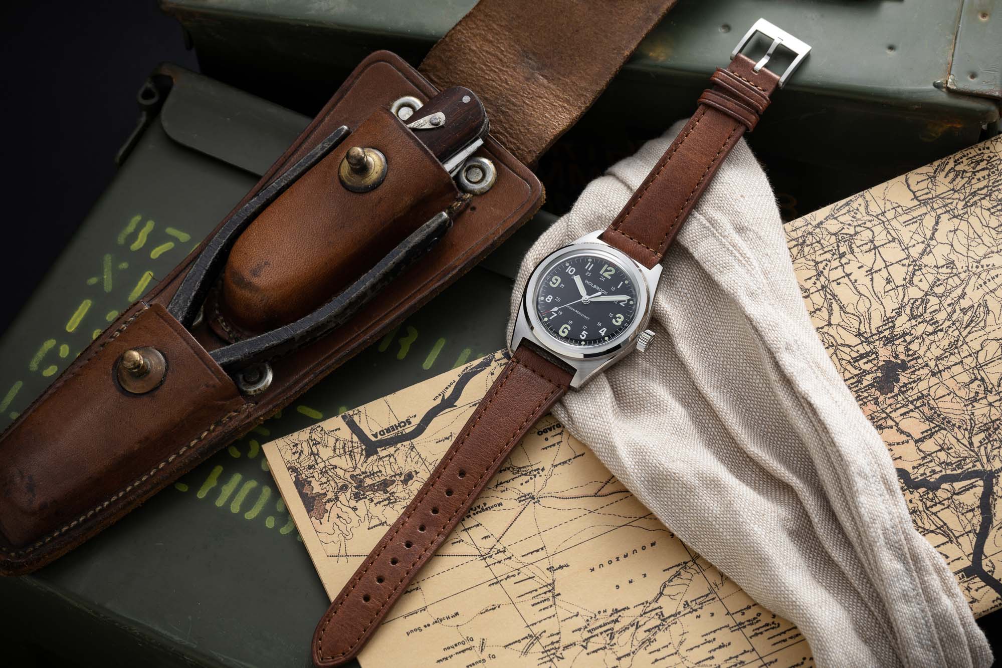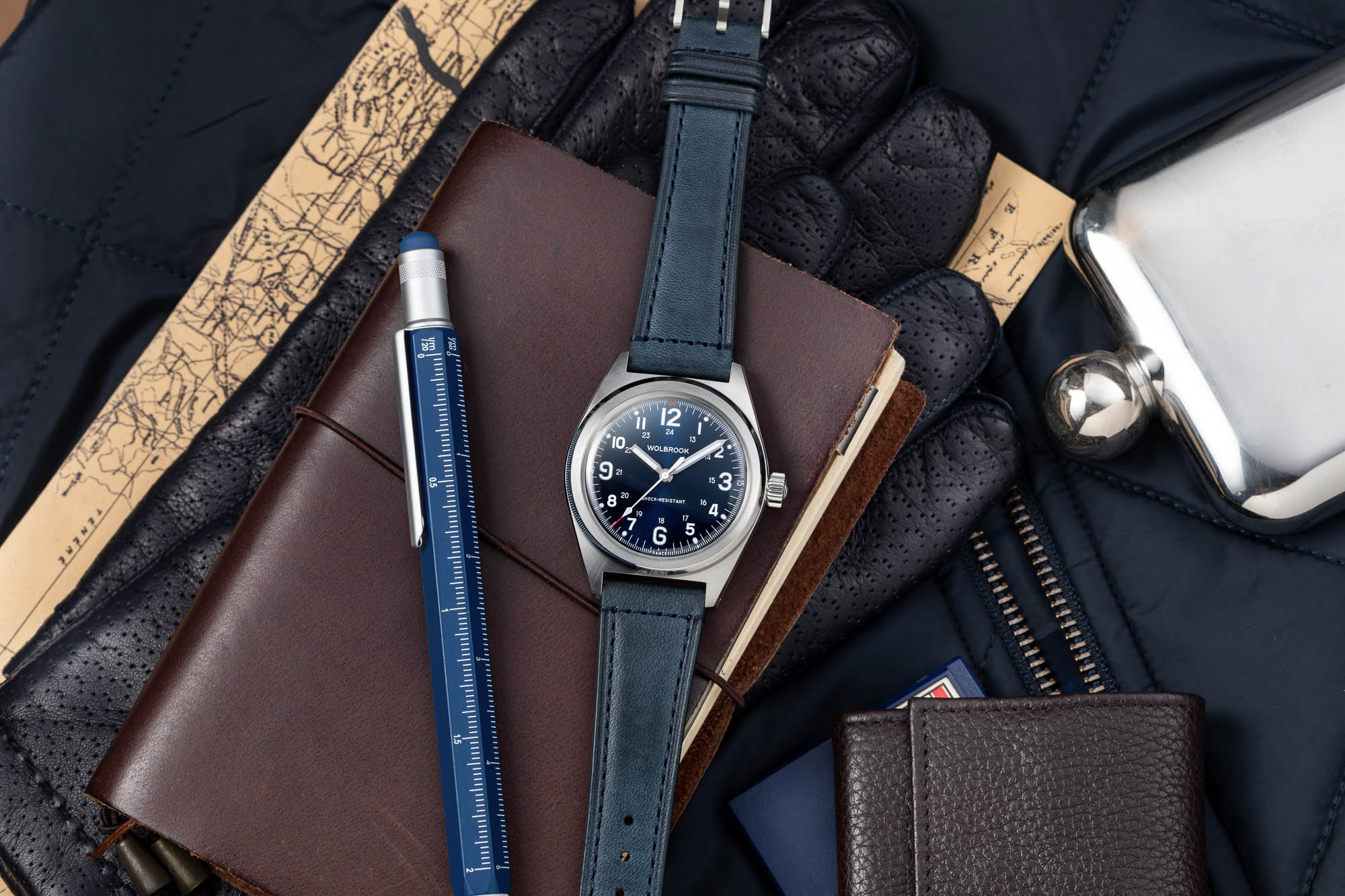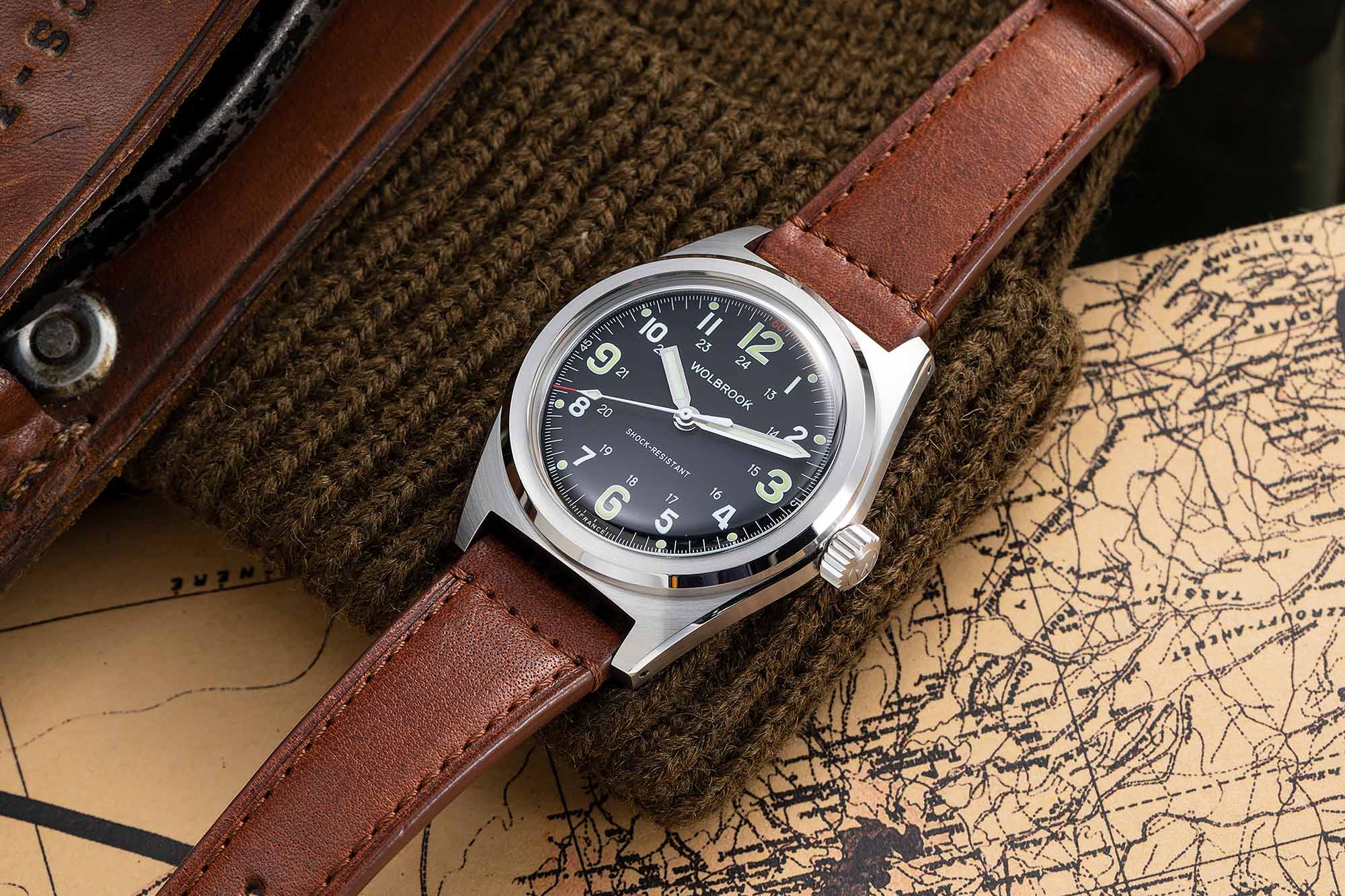 Inside is the Miyota 8315 automatic movement, modified in-house by Wolbrook's French watchmakers. They remove the date mechanism entirely for dial symmetry and regulate each movement to ±15 seconds per day—tighter than factory spec. With 60-hour power reserve and hacking seconds, it delivers proven reliability. What makes the Outrider special is honest vintage design meeting tool-watch capability and thoughtful French assembly at fair pricing—a field watch built for real use.