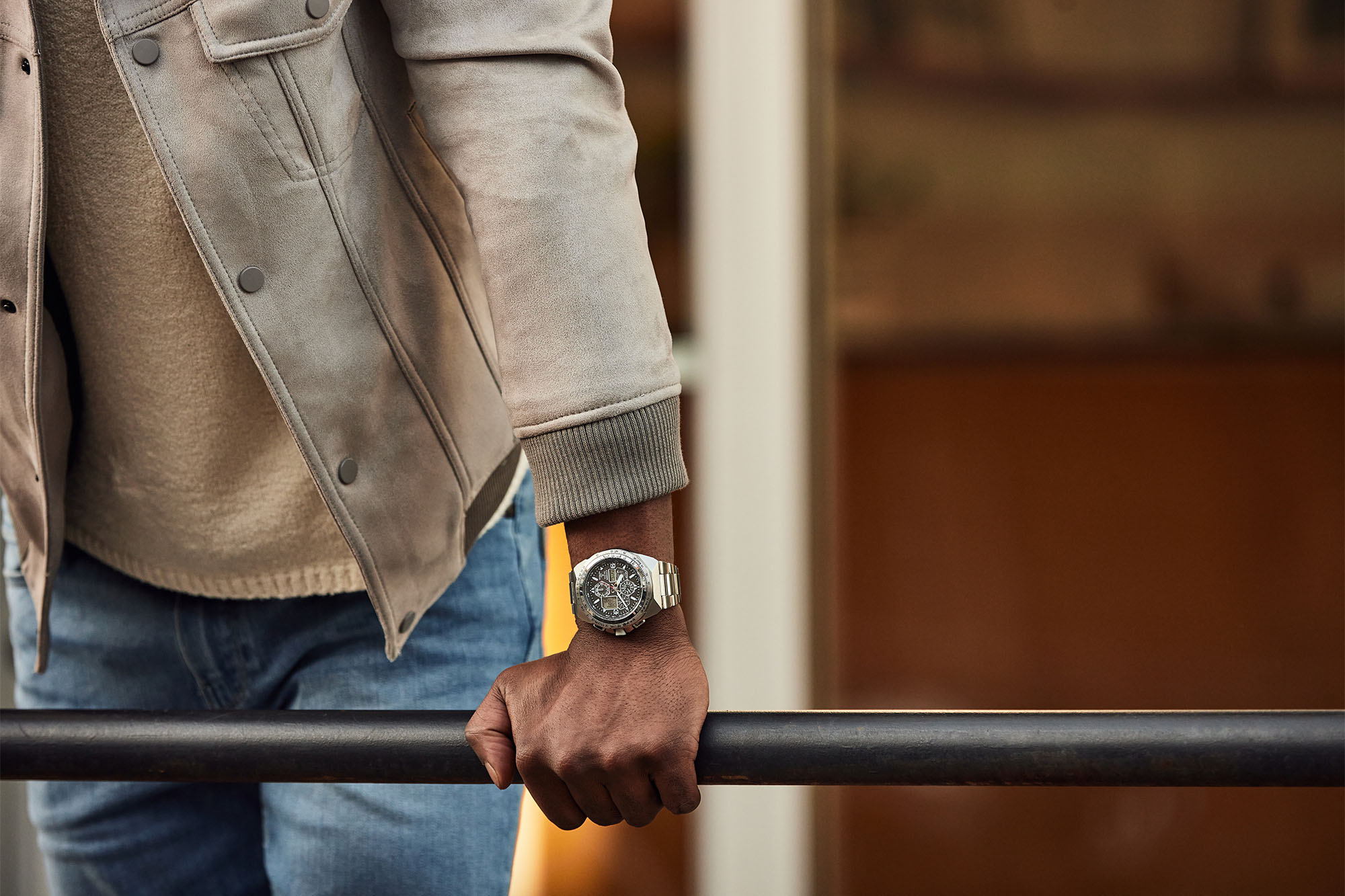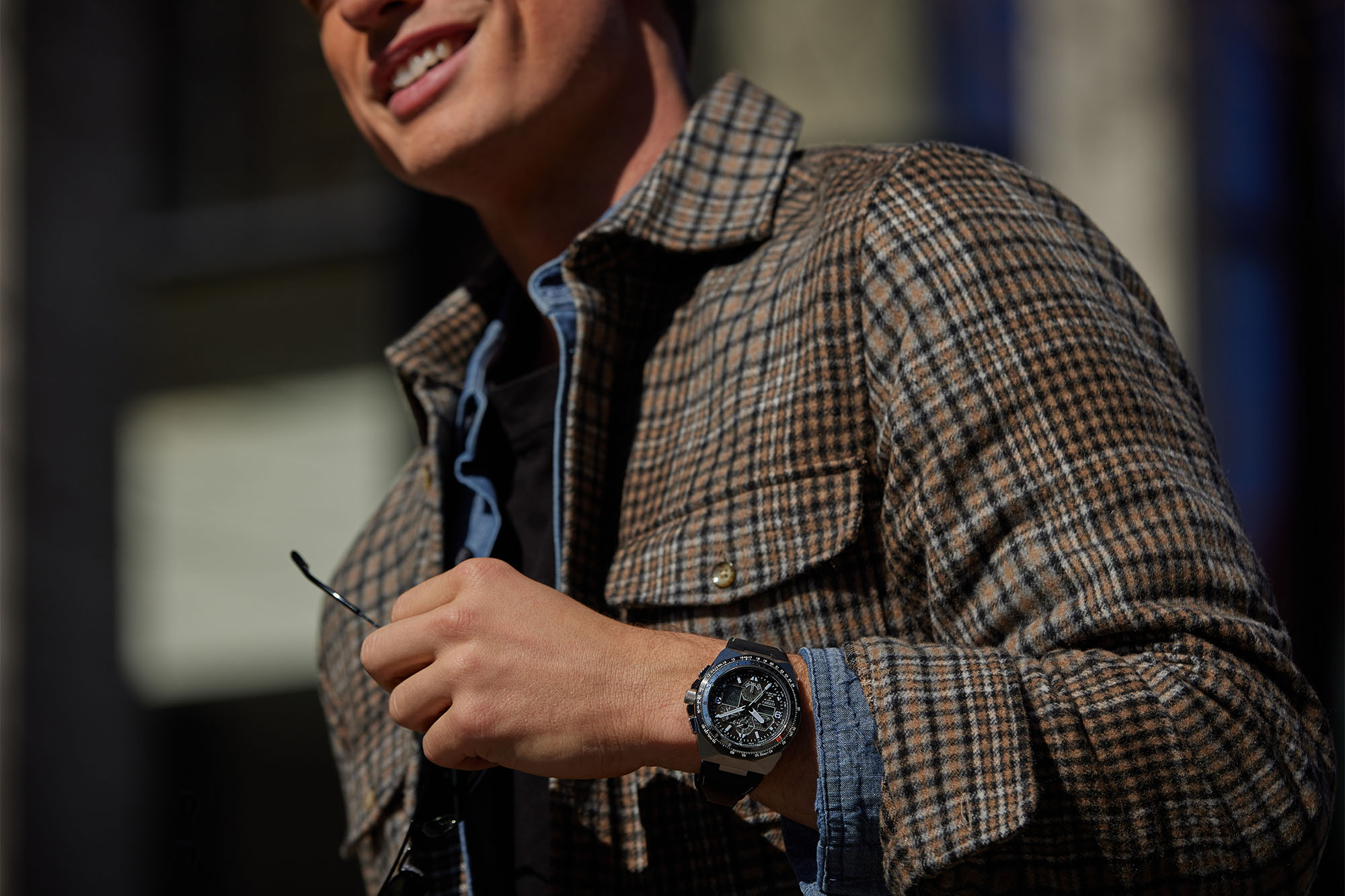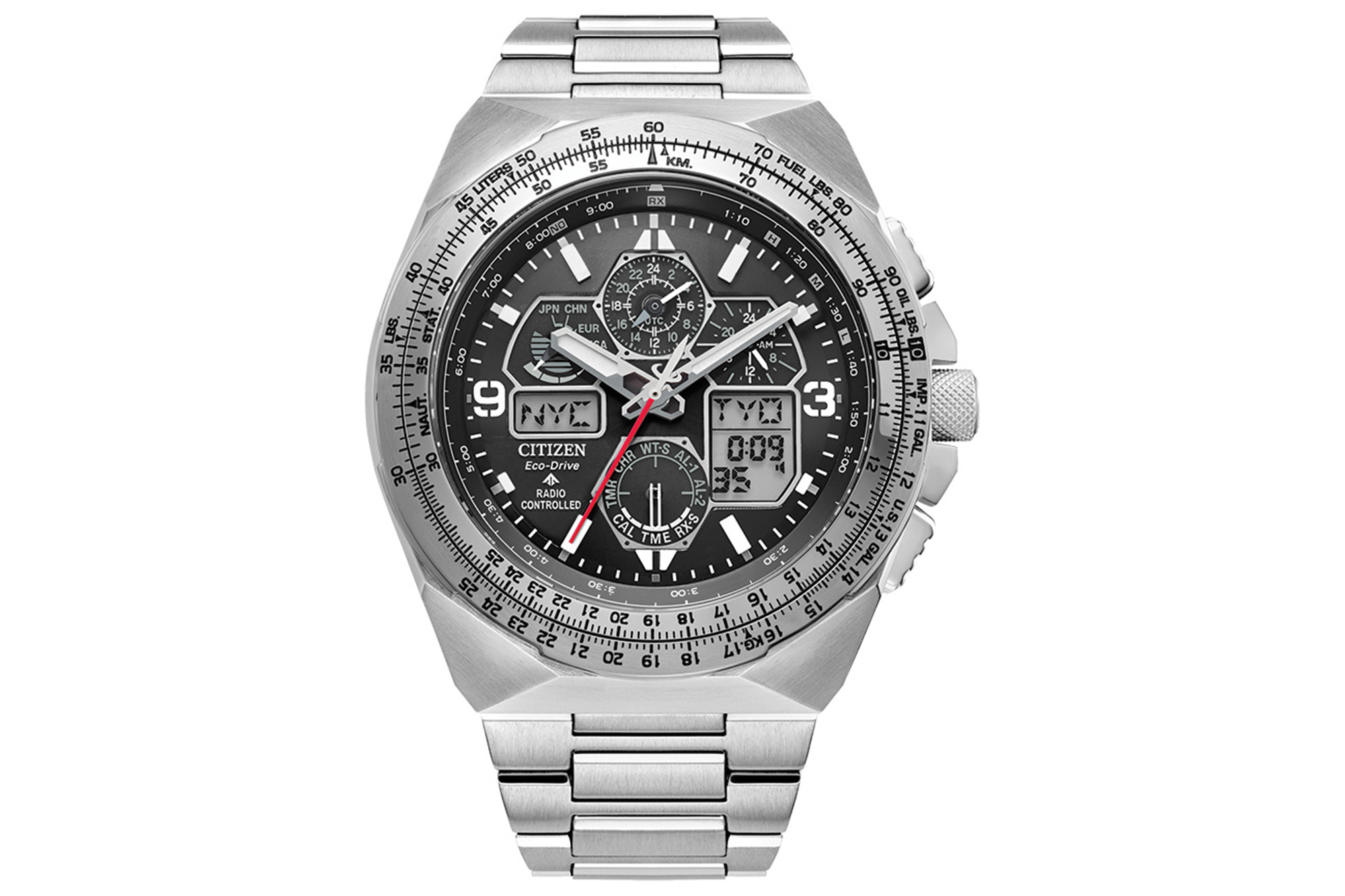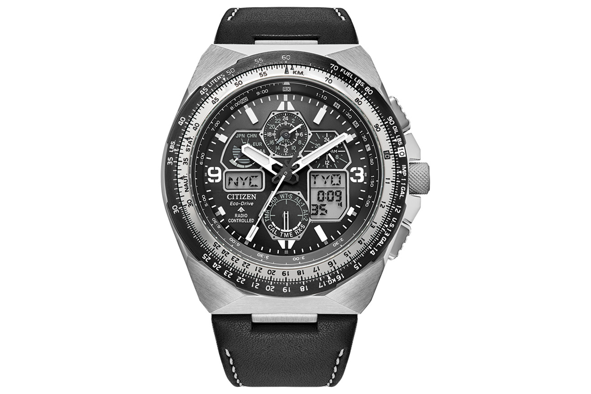 Powering the Skyhawk A-T is one of Citizen’s iconic Eco-Drive movements, the U680. Leveraging light into energy, the watch forgoes the need for battery changes while still maintaining a large feature set. Chronograph, Perpetual Calendar, Dual-Time, UTC Display, Two Alarms, 99-minute Countdown Timer and a Power Reserve Indicator on the dial. Functions that are easily legible with the Skyhawk's 46mm case.