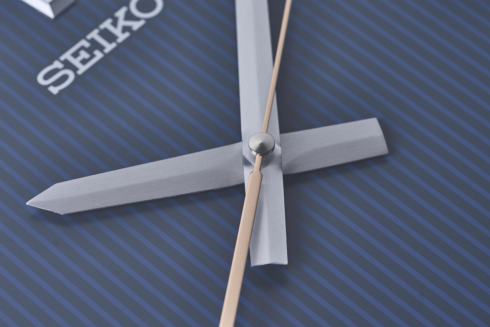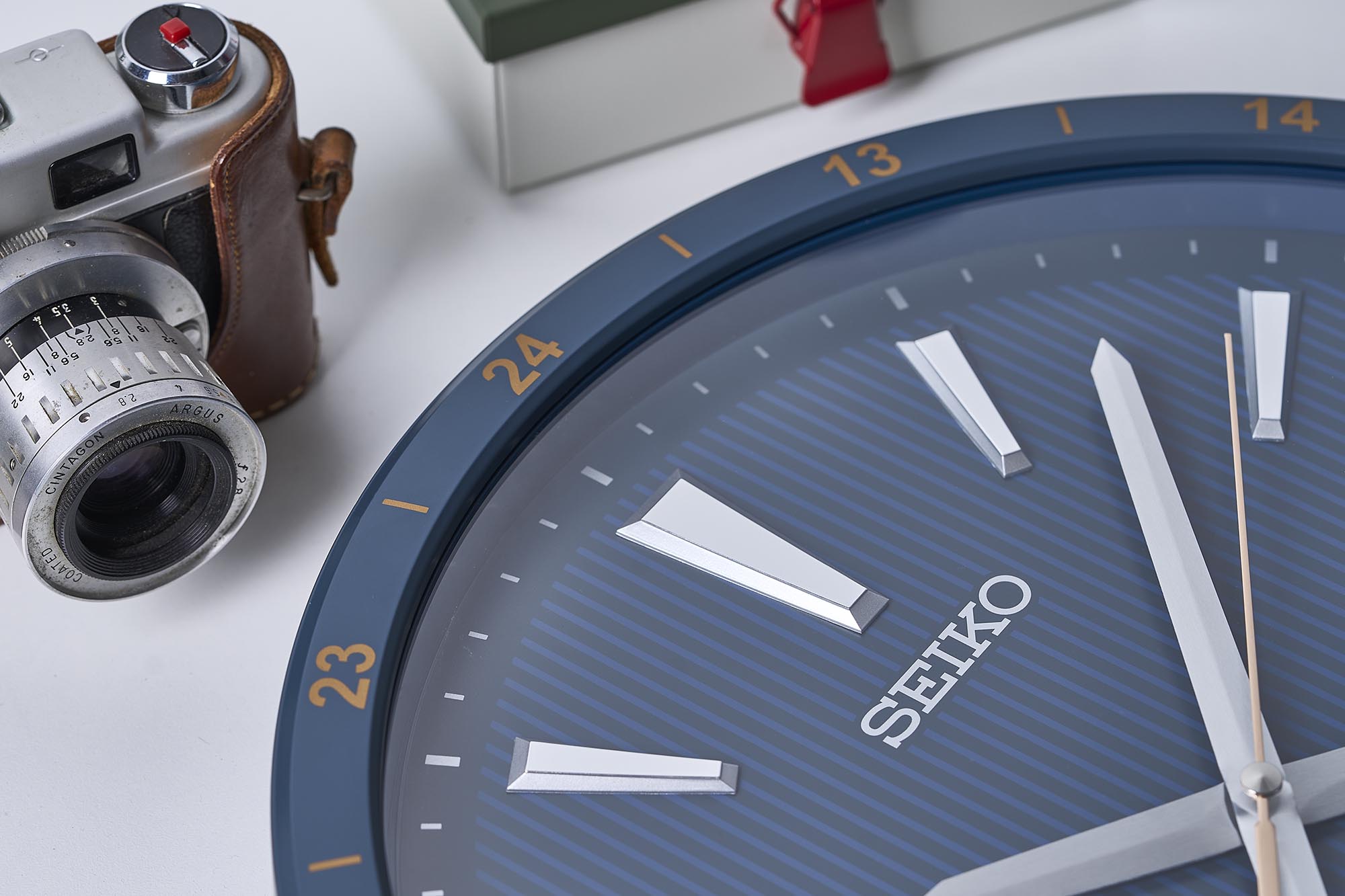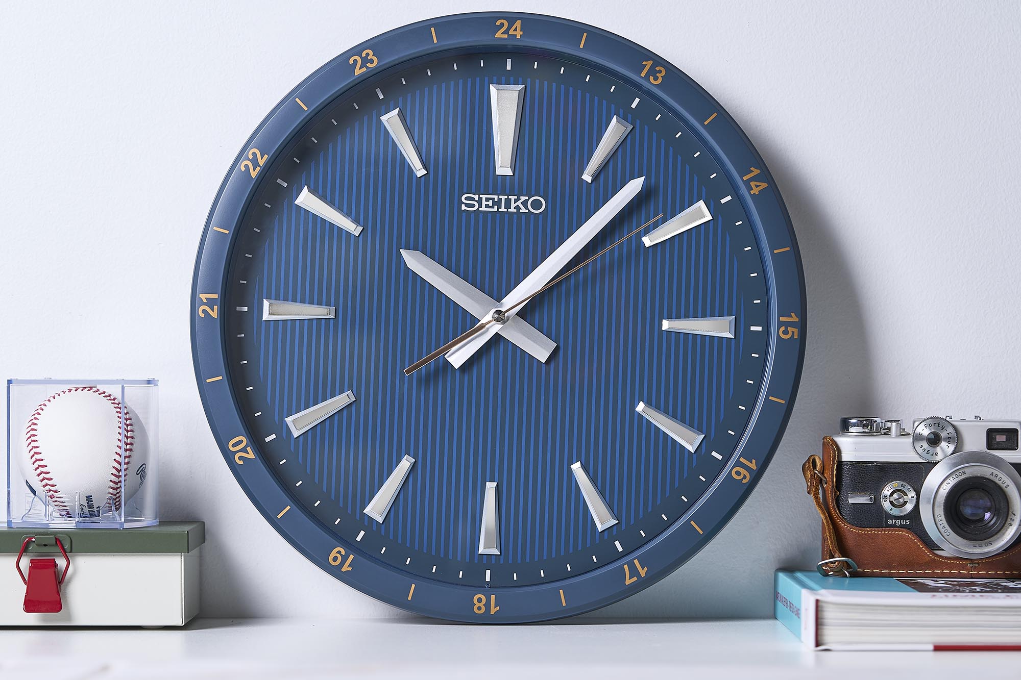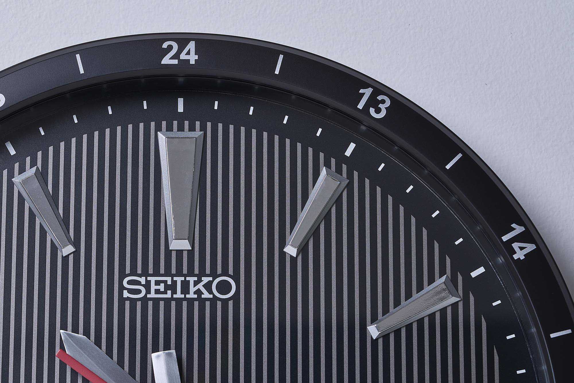 The QXA802J, QXA802K, and QXA802L clocks have white, black, and dark blue dials, respectively. A closer look reveals thoughtful and tasteful details like the subtle vertical linen texture in the center of the dial. The outer track of the clock is smooth and features minute markers with accents on each five-minute counter. The hour markers are reminiscent of elegant Seiko watches with their faceted edges, and the hands match that style. On the outer edge of the clock is a 24-hour bezel, an homage to Seiko sport watches.