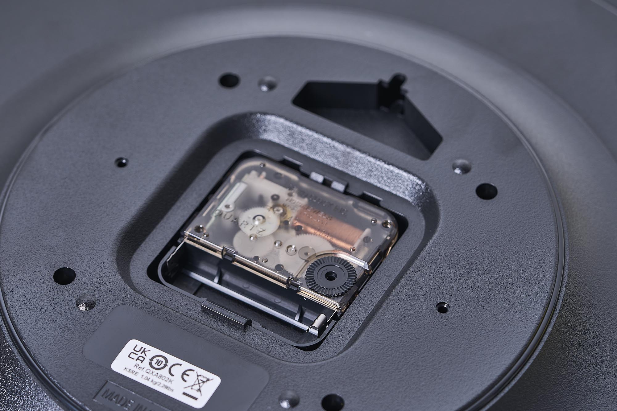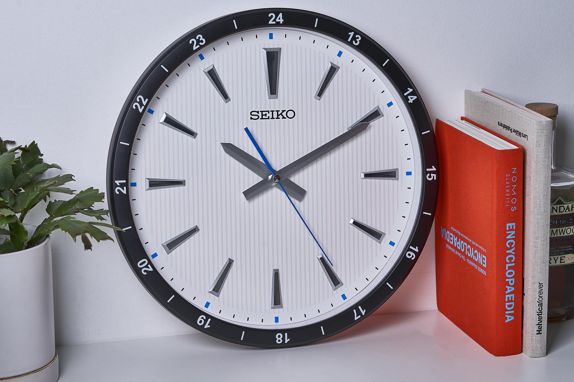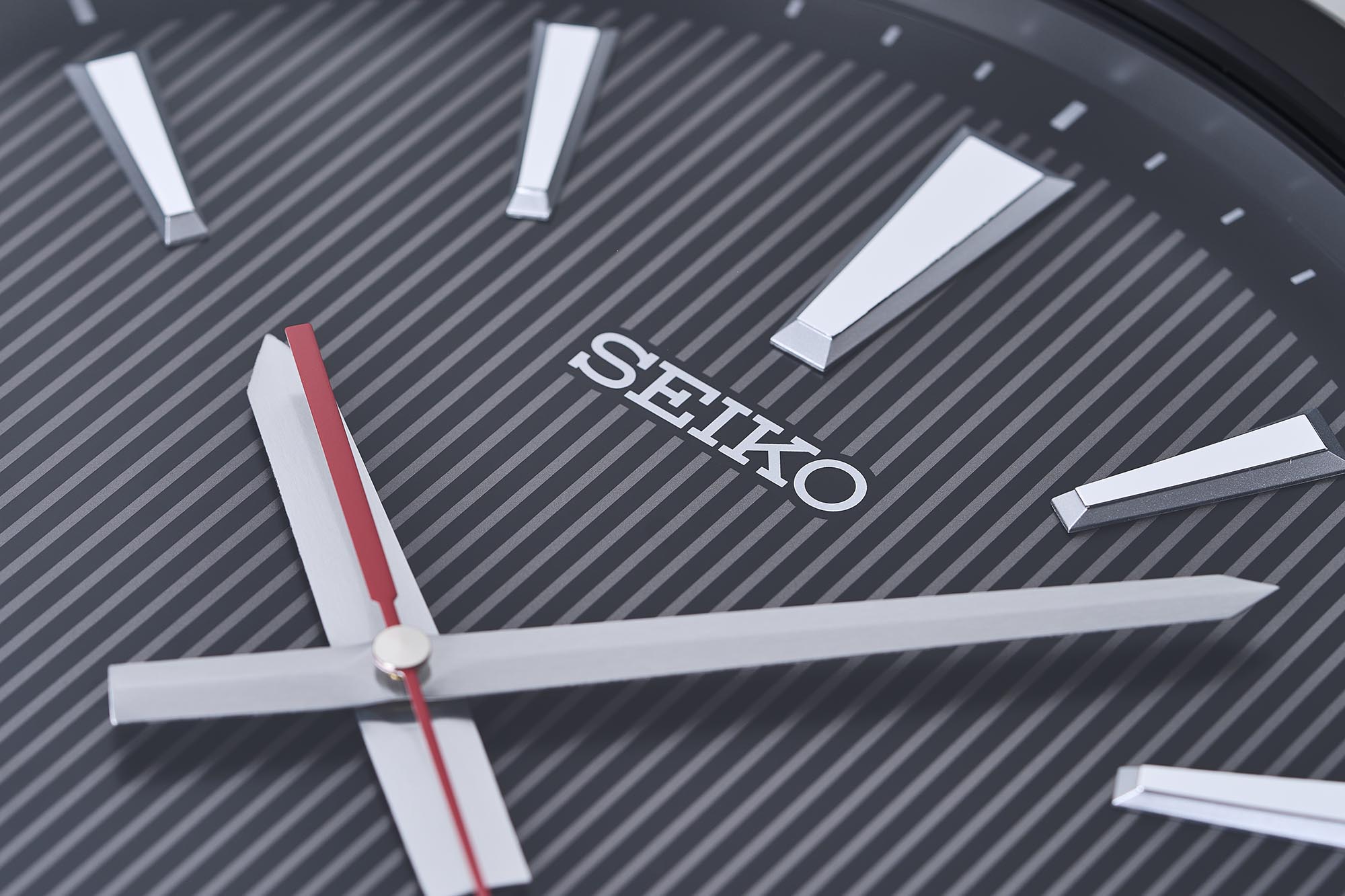 The Seiko QXA802-series clocks are quartz powered and feature a smooth sweeping seconds movement for a refined operation. The clocks are 35cm wide, 4.5cm thick, and come with a AA battery included.
