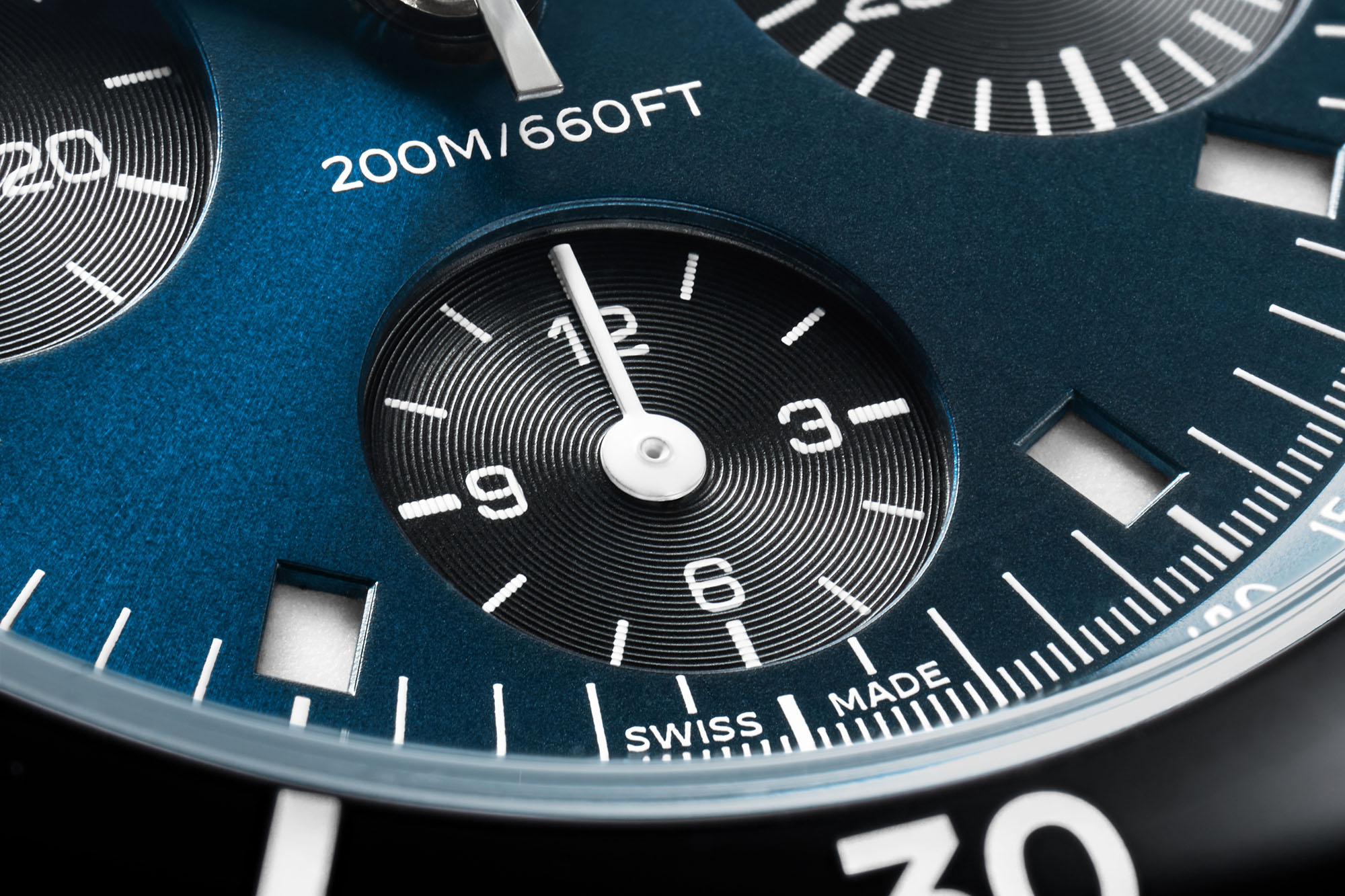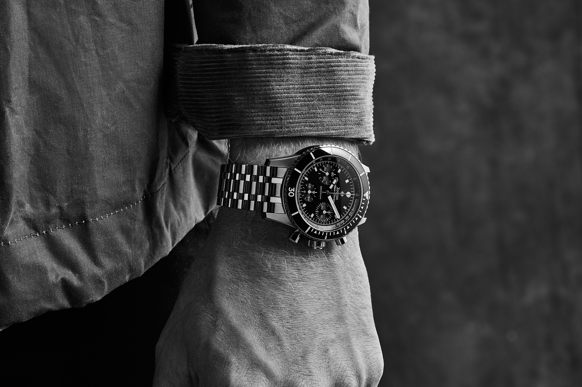 Originally launched in the late 60s, the Zodiac Sea-Chron was introduced as an evolution of the iconic Sea Wolf design. Today’s reissue features a 20-minute elapsed timing bezel and added chronograph function with a tachymeter inscribed around the edge of the dial, bringing an entirely new level of engagement, durability and utility to the newly minted Chronograph platform.