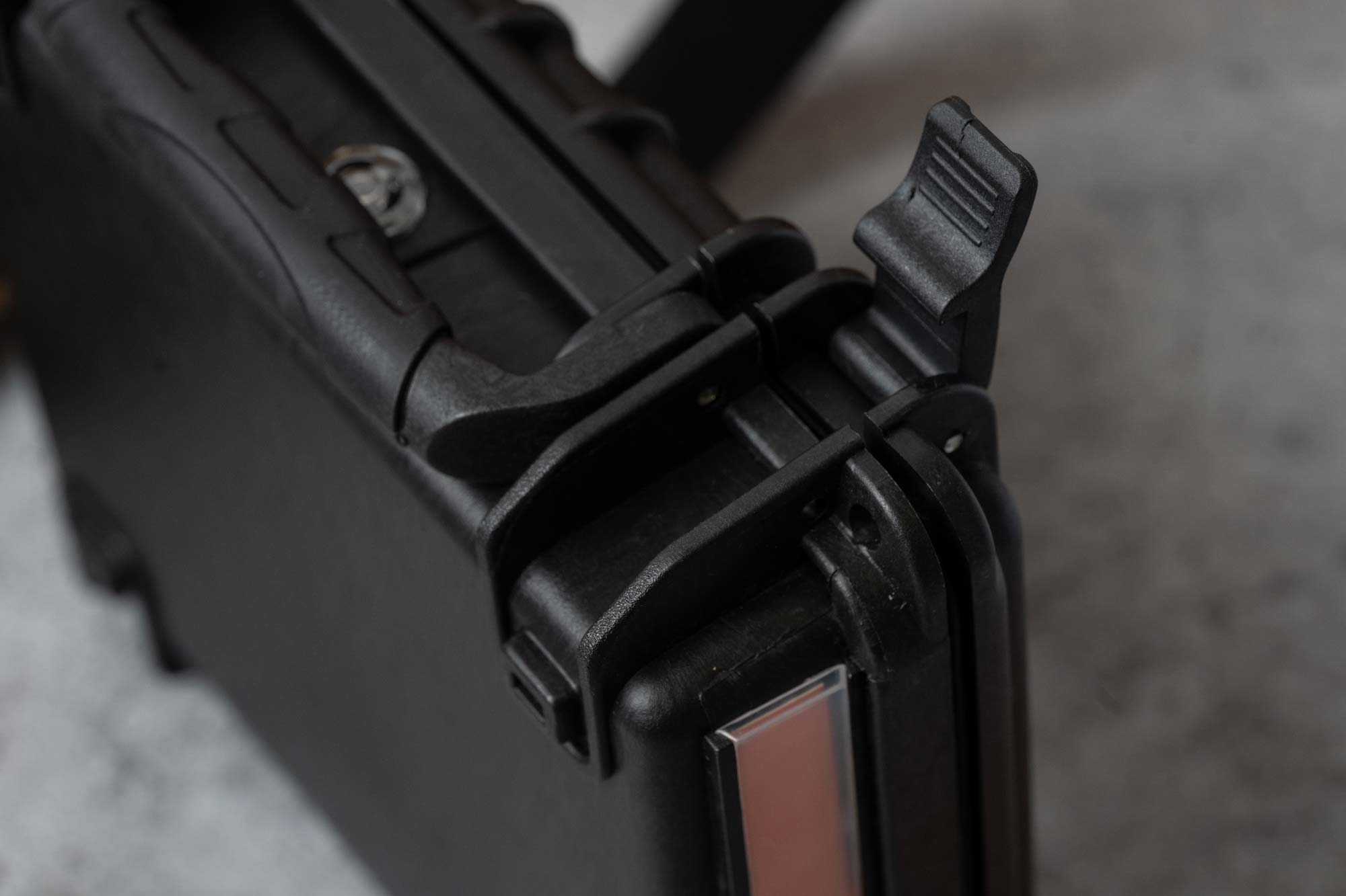 On the outside of the case, you'll find a pressure valve to ensure the sealed contents do not create a vacuum. On each side of the two latches, you'll find two padlock shackle holes which can take a 3/16 inch diameter shackle. On the right side, there is a plastic label to note the contents of the case. Overall, the Boldr Supply Co. Three Watch Storage Case measure 19cm wide, 17.5cm long and 6.1cm tall.