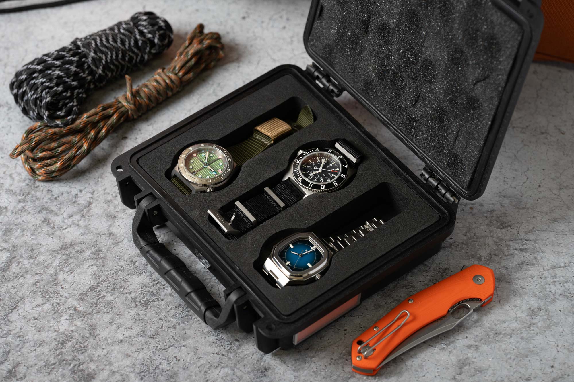 Boldr Supply Co. is known for its tough and affordable line of watches. They have decided to extend their skill and knowhow into new lines of gear, culminating with this latest release; the Three Watch Storage Case.