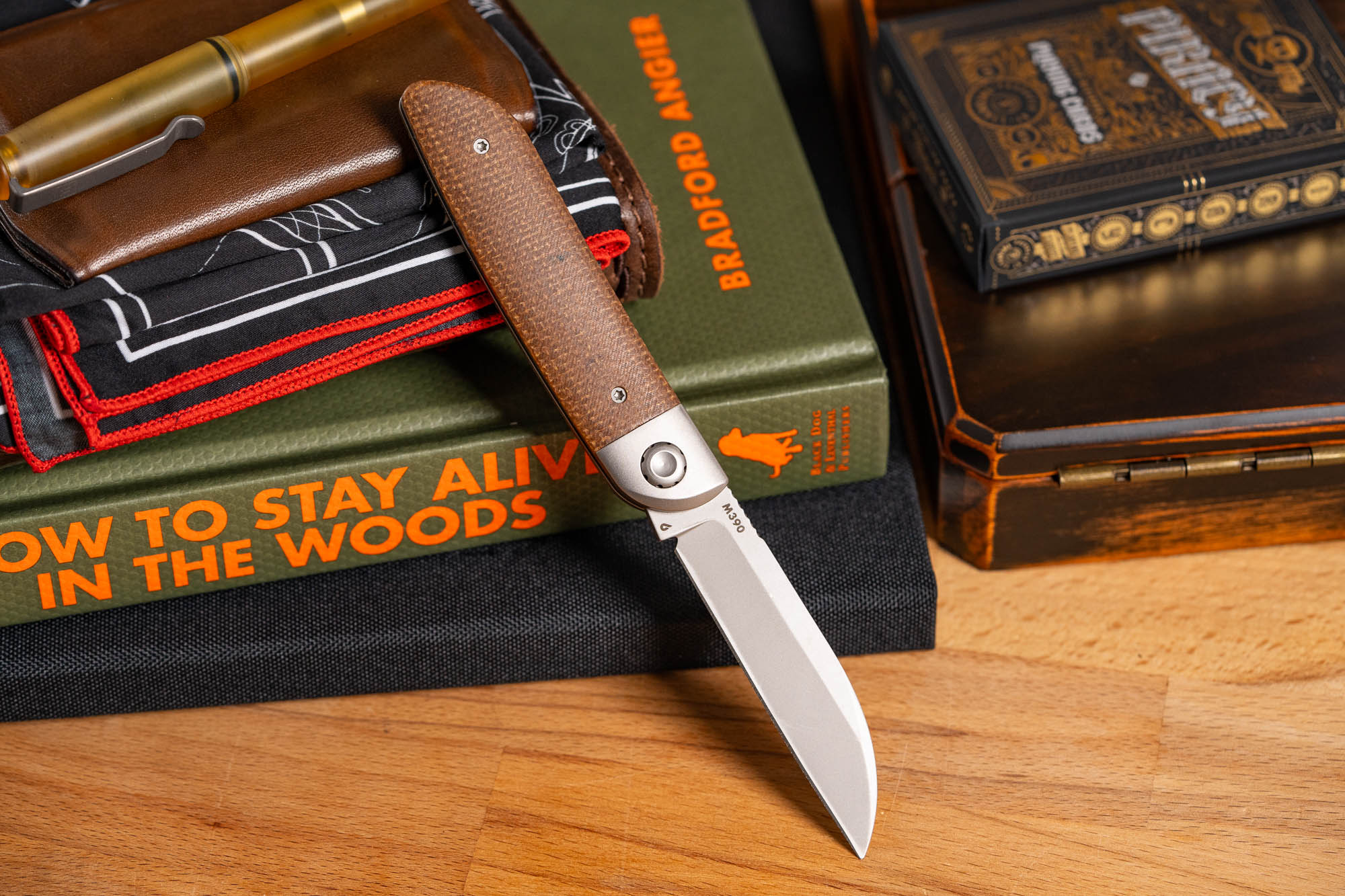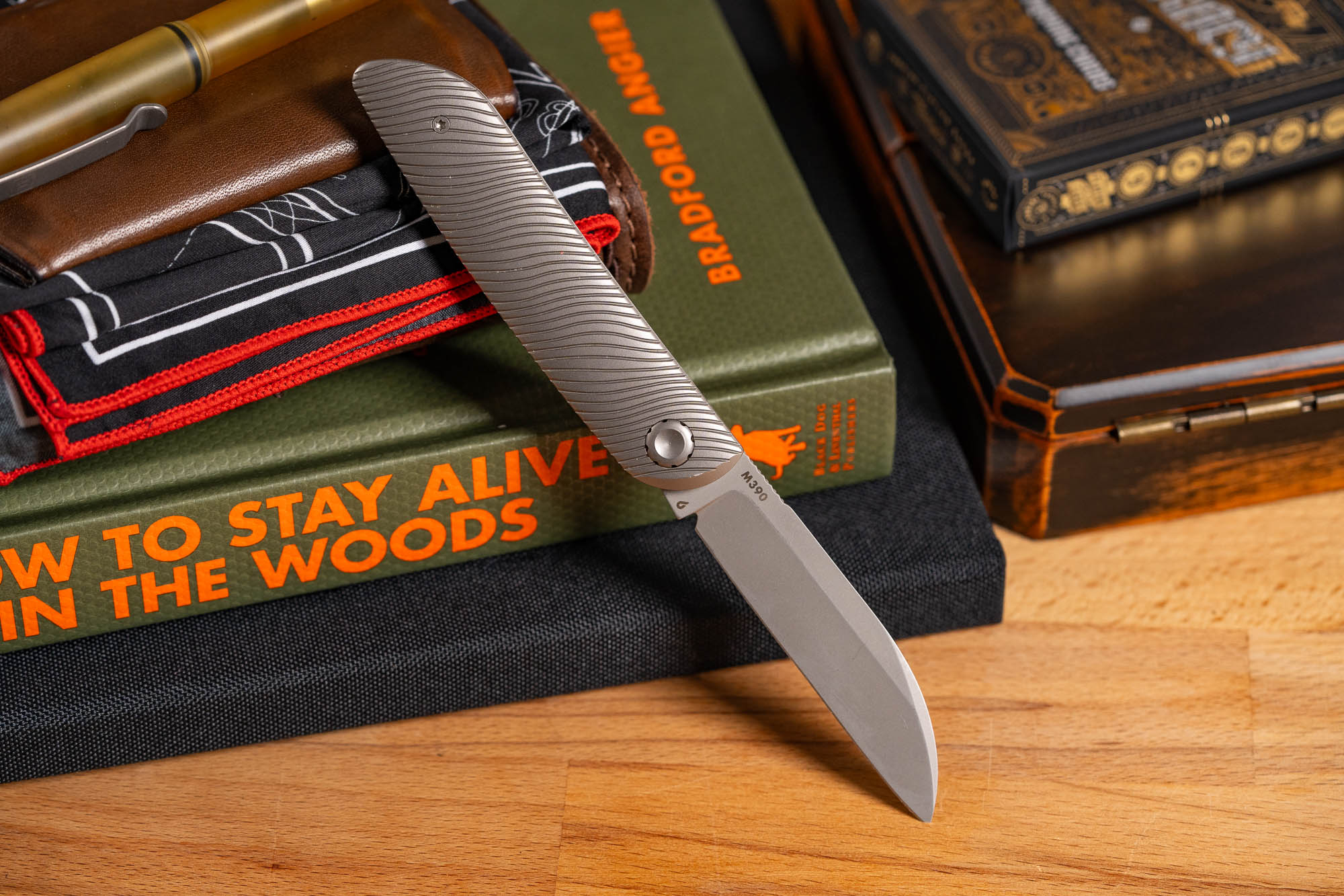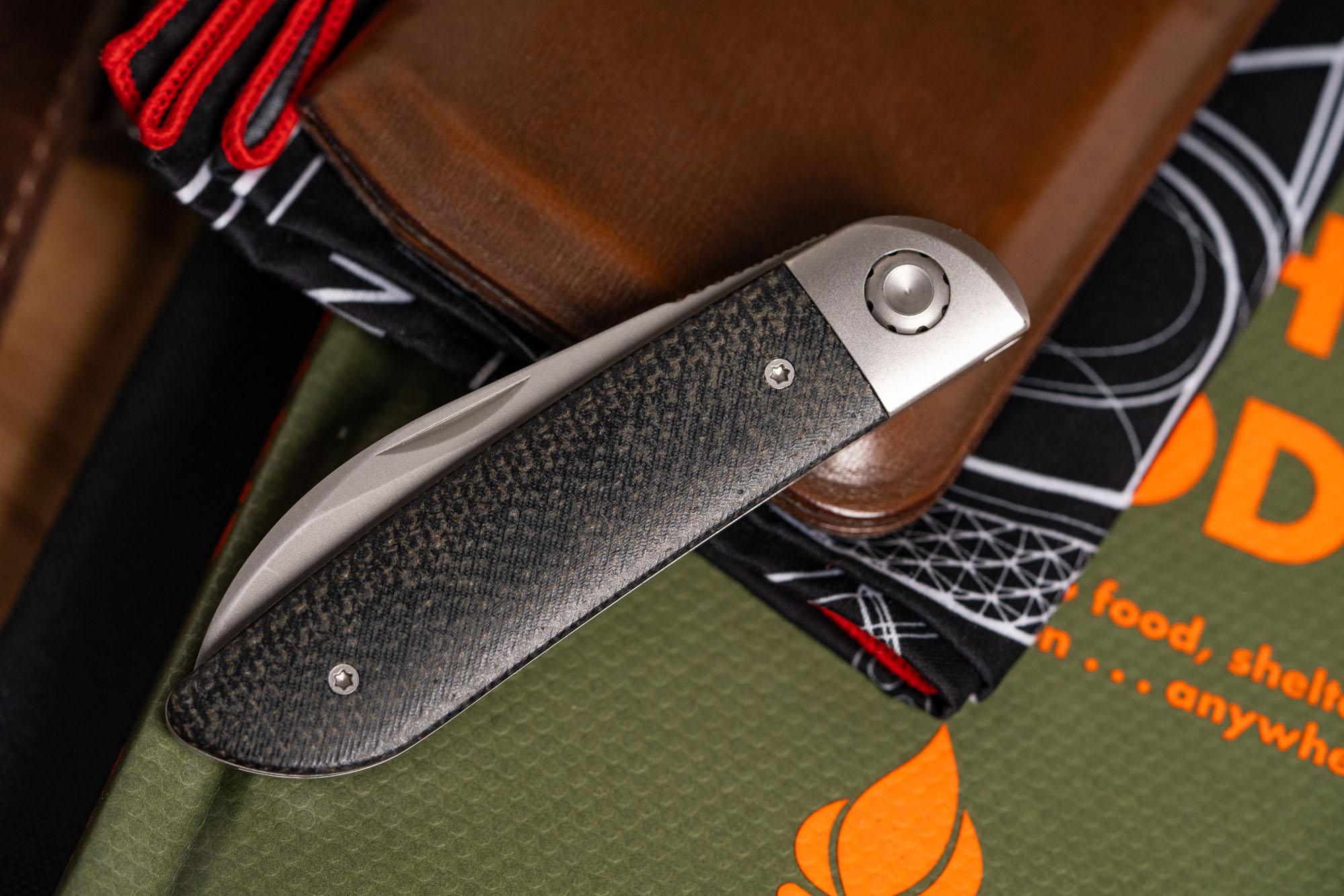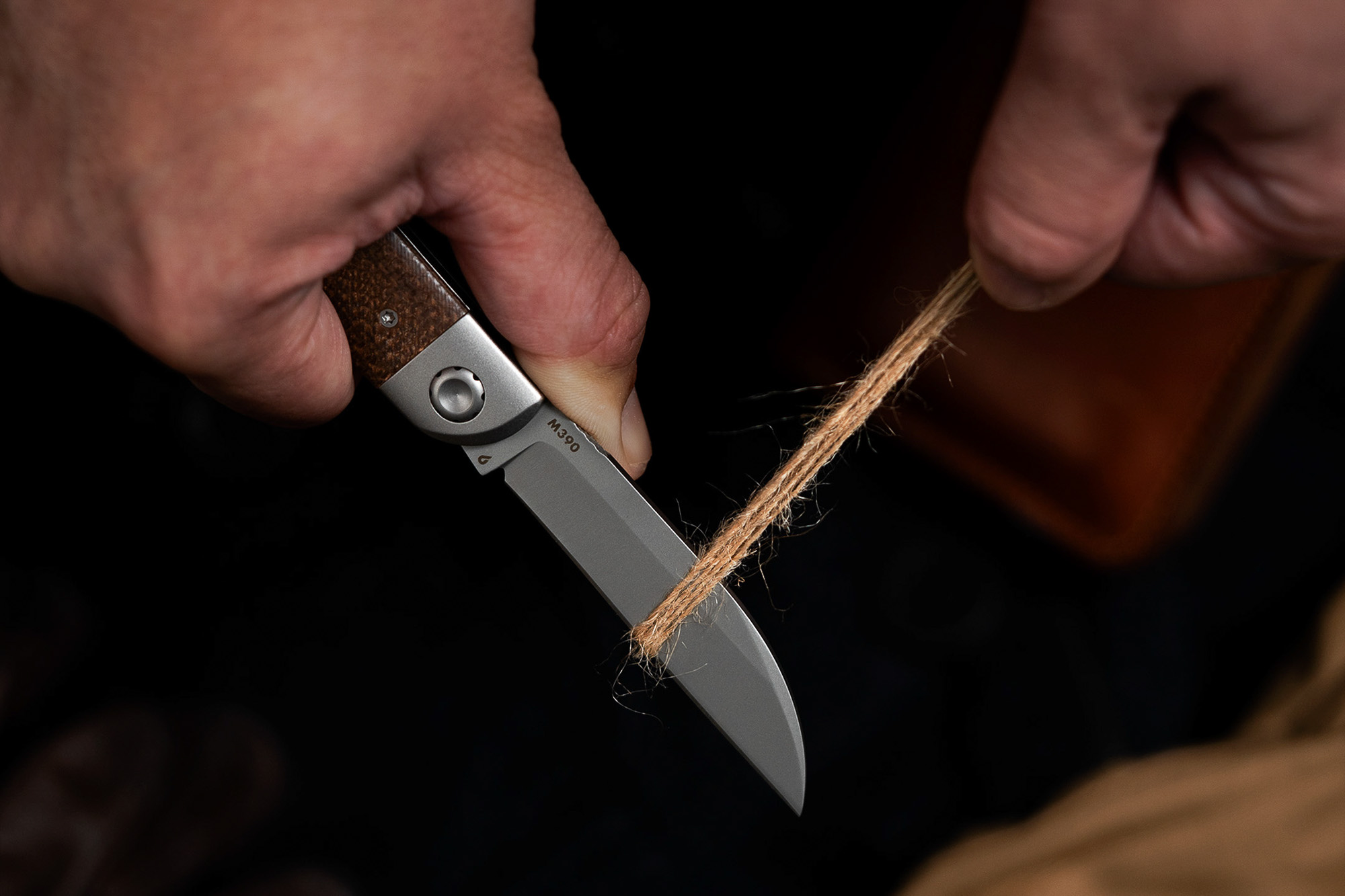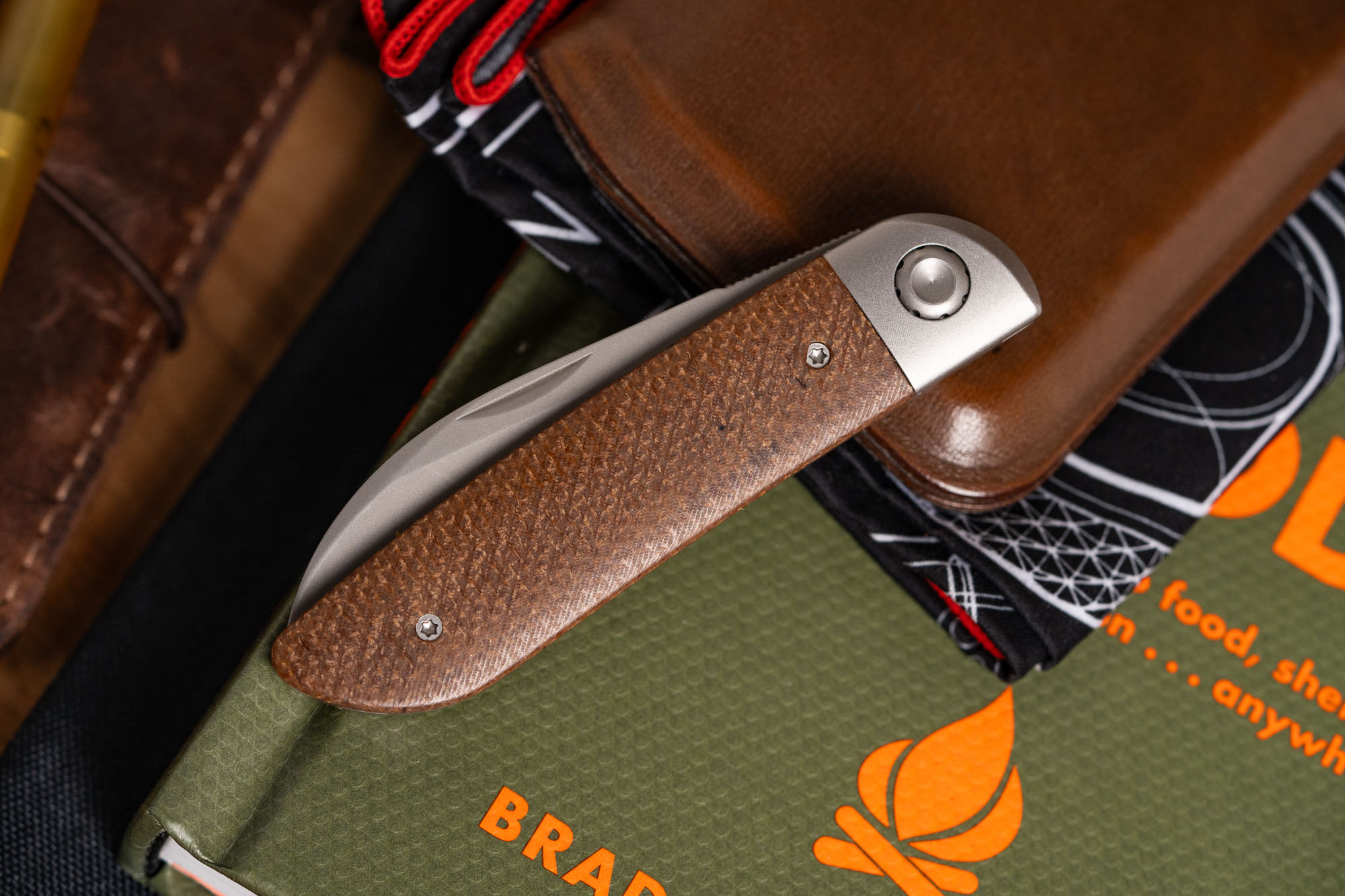 The Wildman elevates the classic folding utility knife with premium materials and thoughtful design. Its lightweight micarta or titanium handle features a textured, non-slip surface for a secure grip, ensuring comfort and confidence in any situation. Paired with a tough M390 steel, this utility knife is ready for everything—chopping firewood, cutting rope, or even opening a letter with precision and ease.
