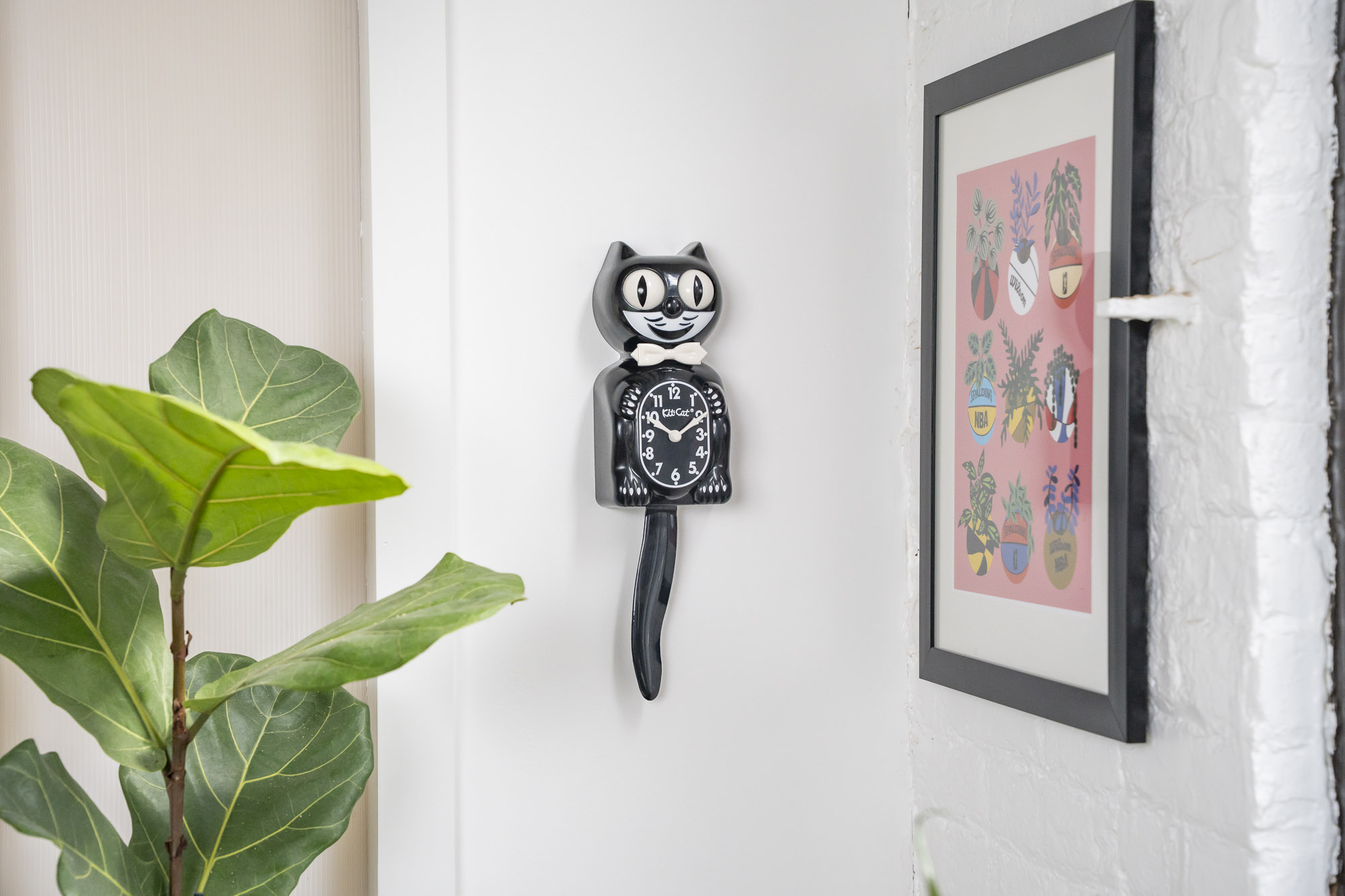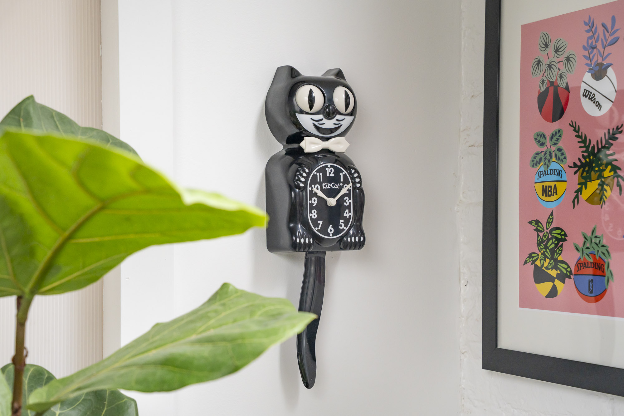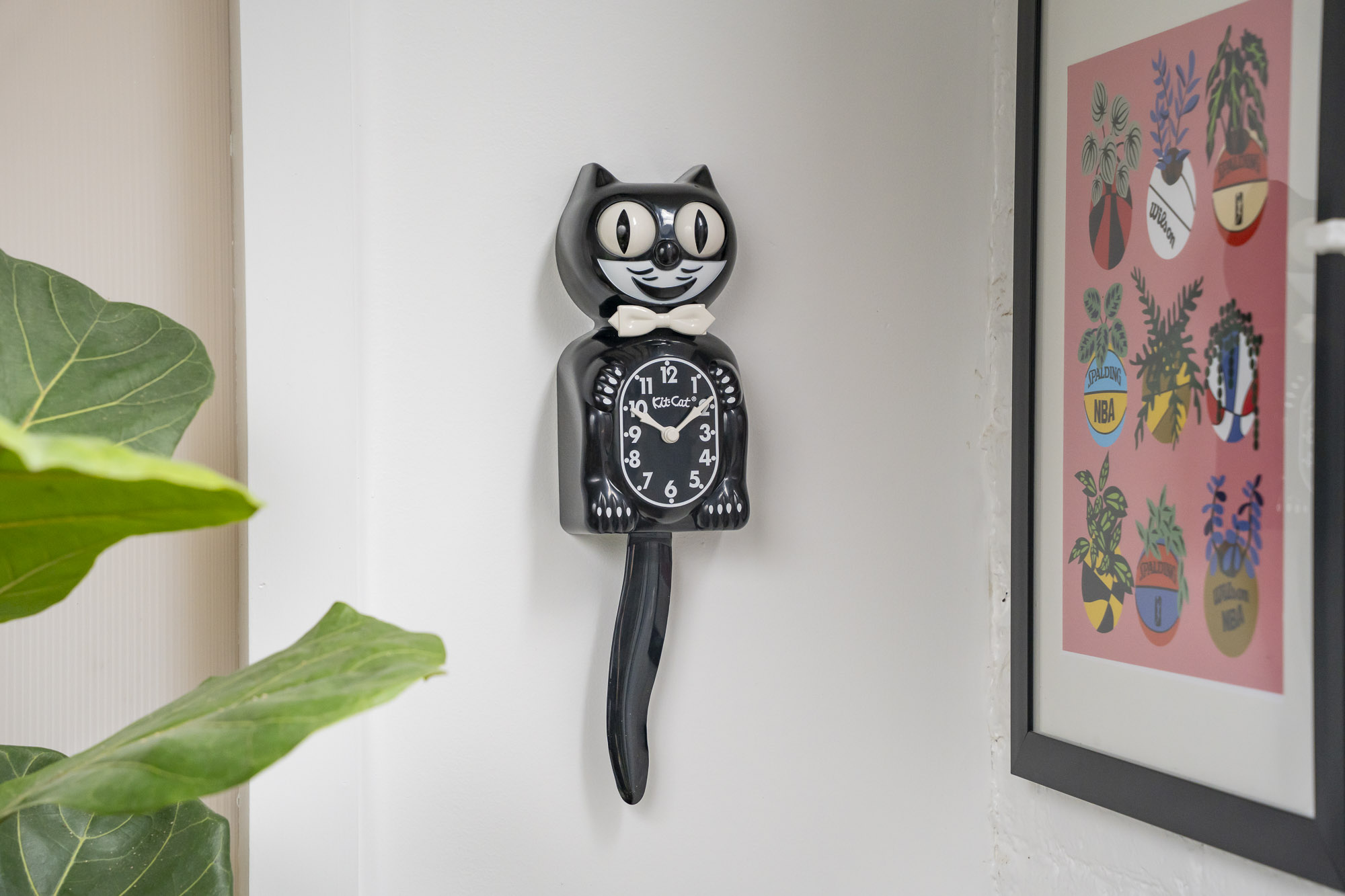 The Classic Kit-Cat Klock is an enduring symbol of American design, bringing joy and nostalgia to homes since its debut in 1932. Measuring 15.5 inches from ears to tail, this original-sized timepiece features the iconic rolling eyes, wagging tail, and infectious smile that have made it a beloved fixture in American culture.