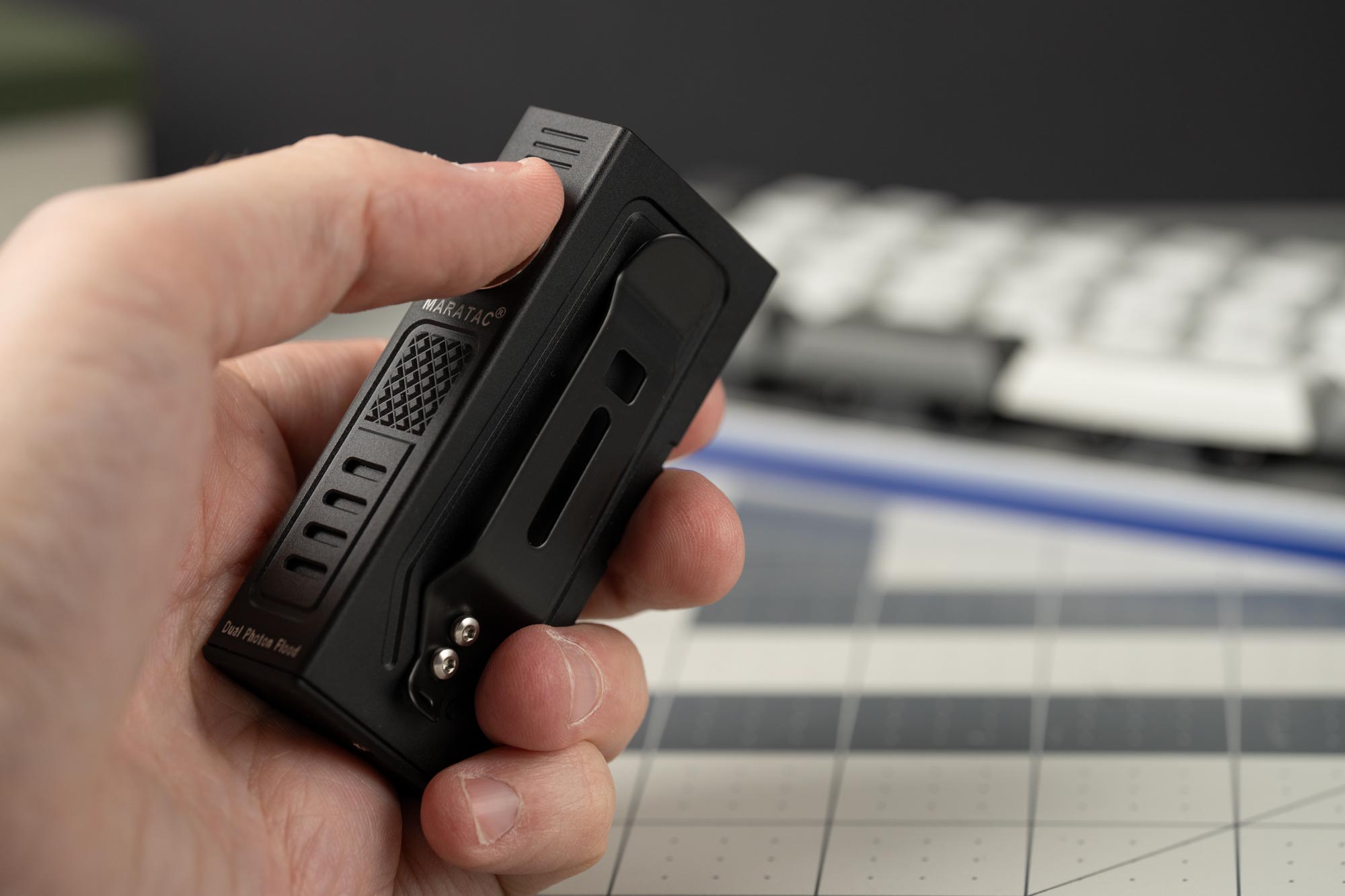 The Dual Photon Flood 14500 Flashlight by Maratac® delivers an astonishing 3600 lumens in Turbo Mode—all in a body that fits in the palm of your hand. Built for maximum output per cubic inch, this is the brightest compact flashlight we offer, perfect for professionals, gearheads, and anyone who takes lighting seriously.