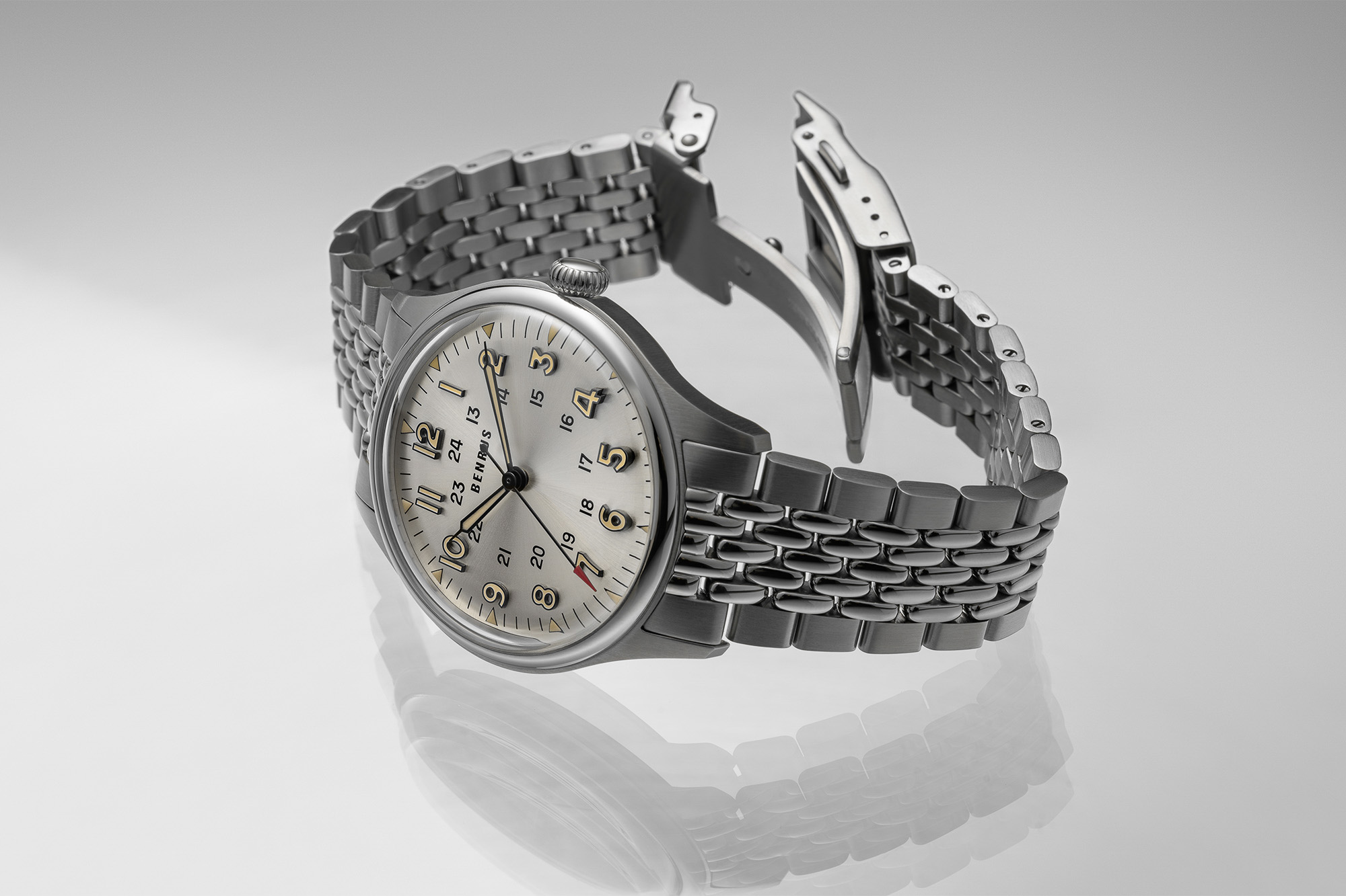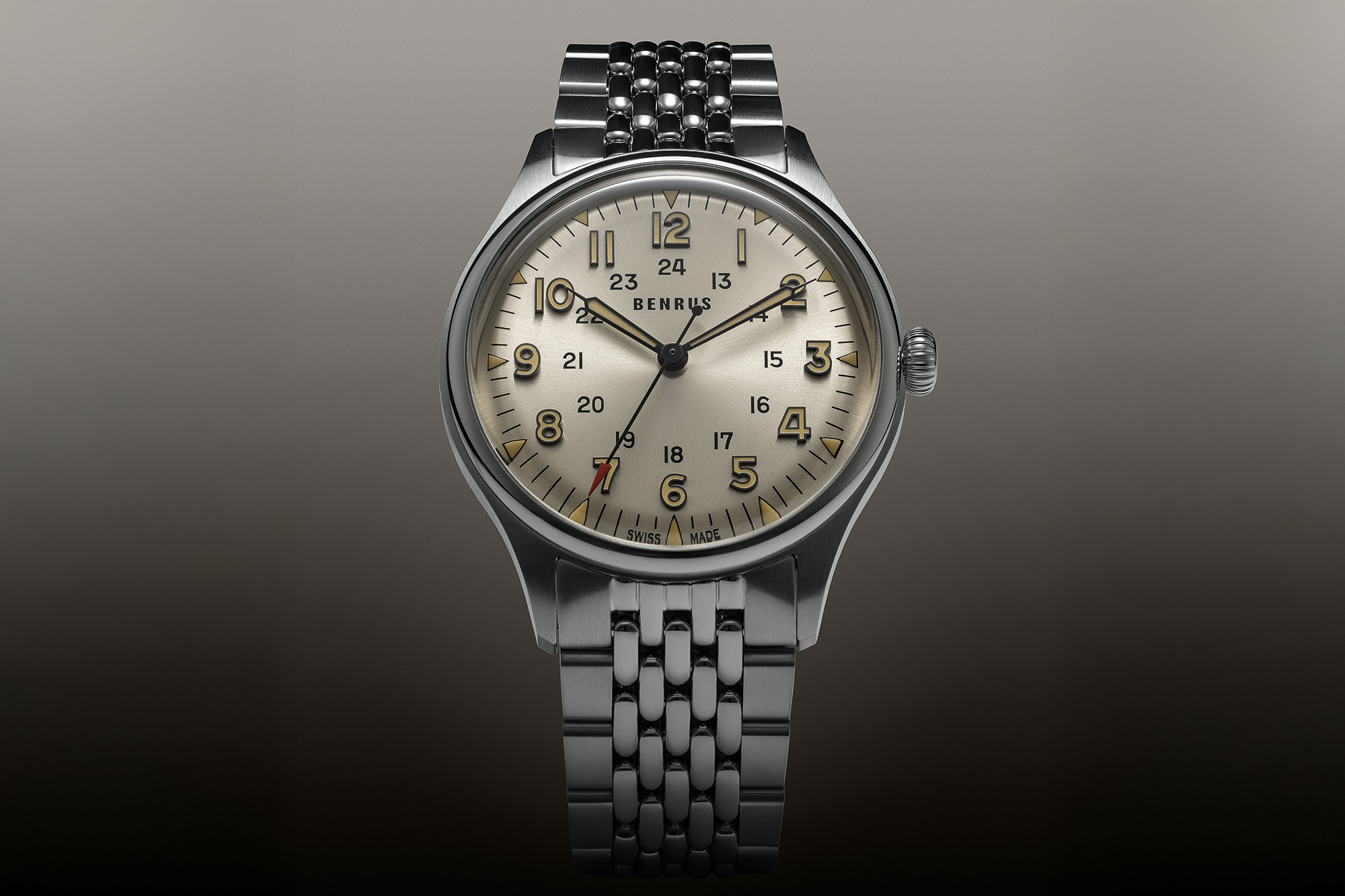 Founded in New York City by three Romanian-American brothers in 1921, BENRUS has been making history for more than a century. The 3061 Collection pays tribute to the series of mil-spec field watches sold by Benrus on the civilian market as famously worn by Steve McQueen in 1968’s Bullitt.