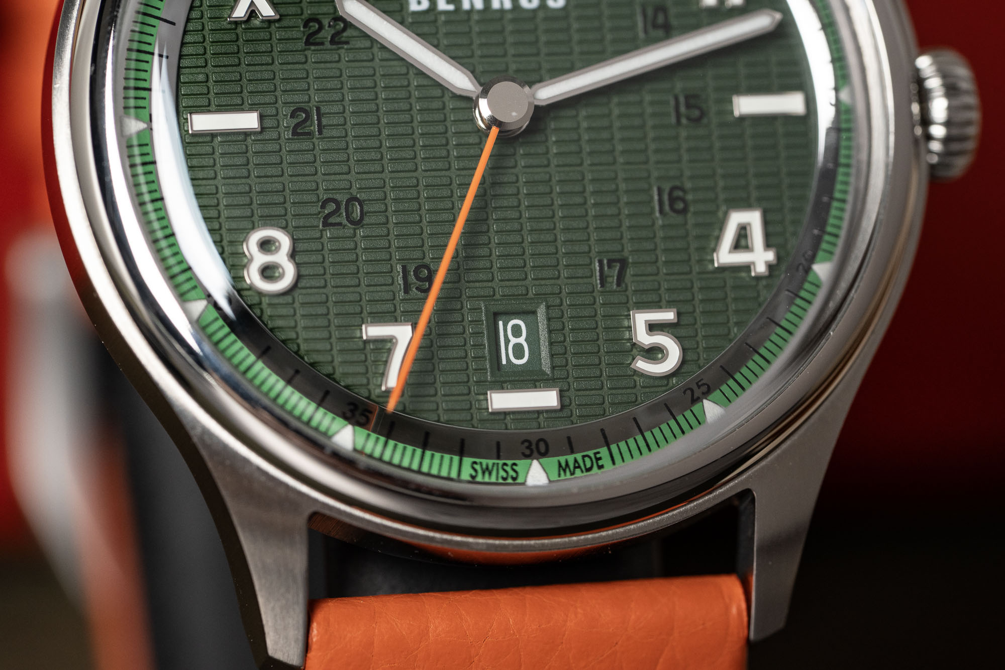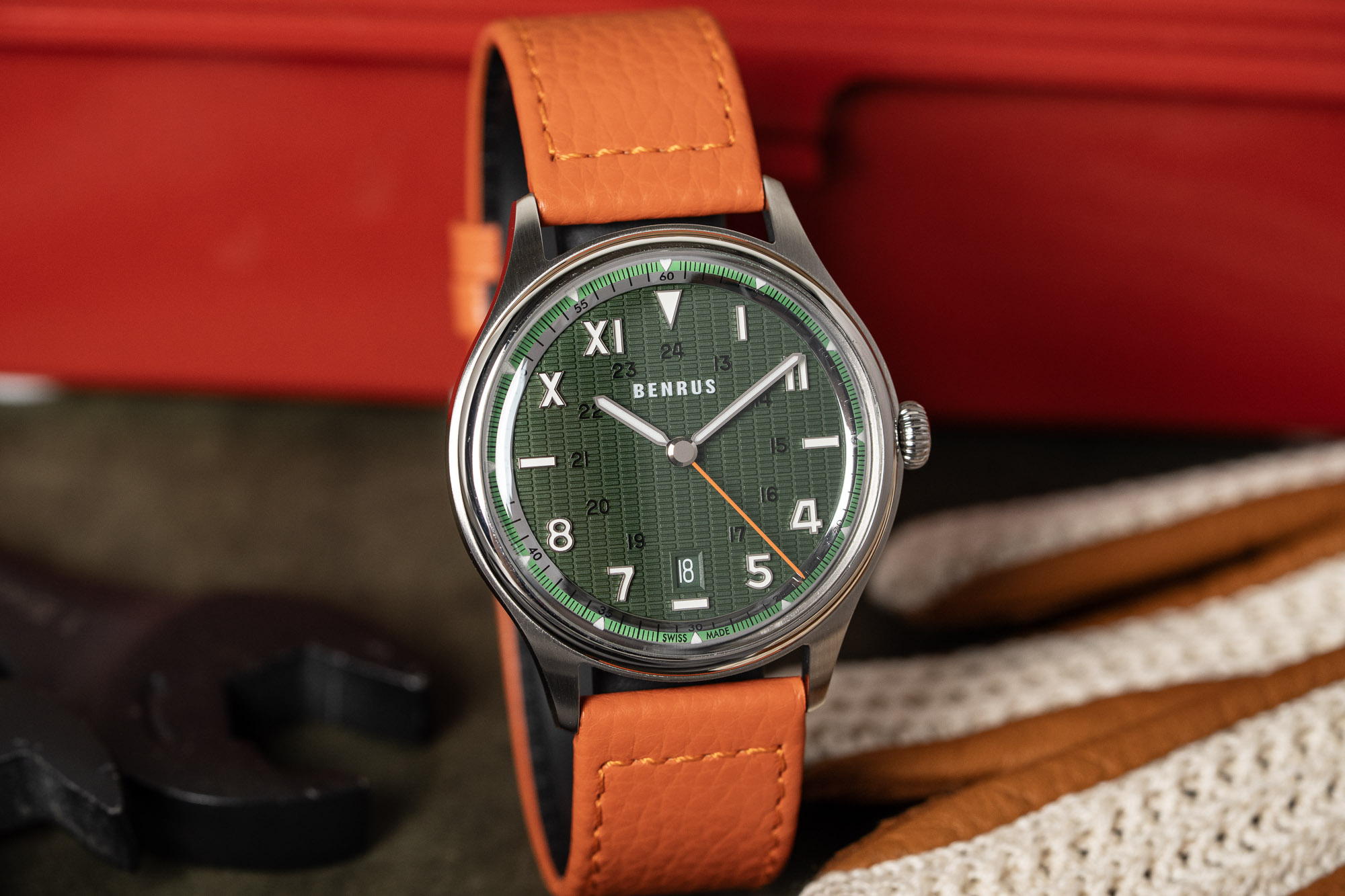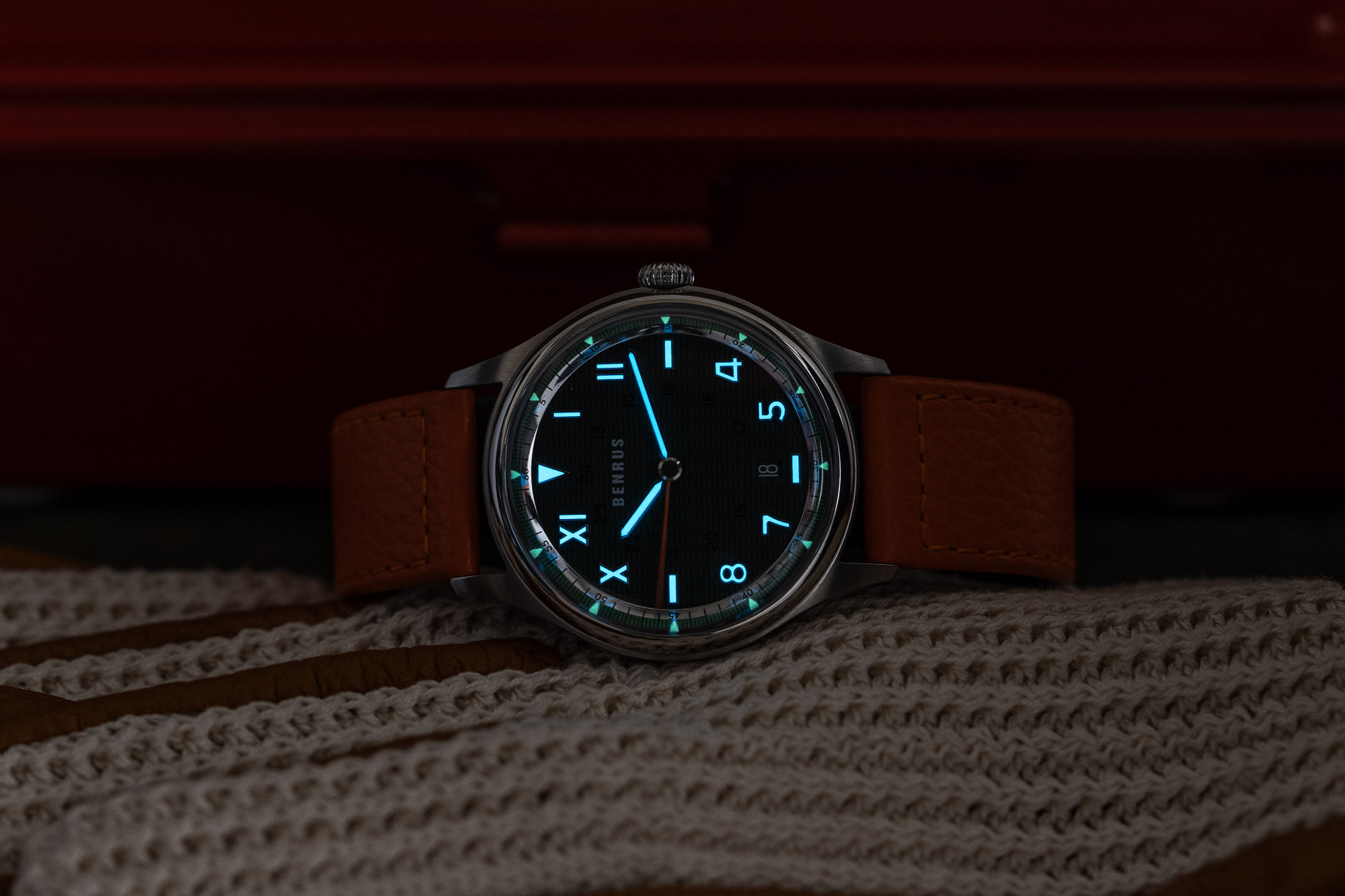 Under the hood, the 3061 GT runs on Swiss muscle: the ETA 2892 automatic movement with a 42-hour power reserve, housed in a 39.5mm brushed and polished stainless steel case and protected by a double-domed sapphire crystal. Urban, versatile, and cinematic, the Benrus 3061 GT is a field watch reimagined for life in the fast lane.