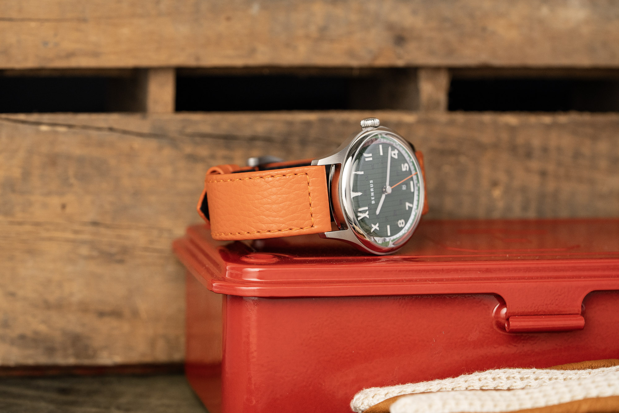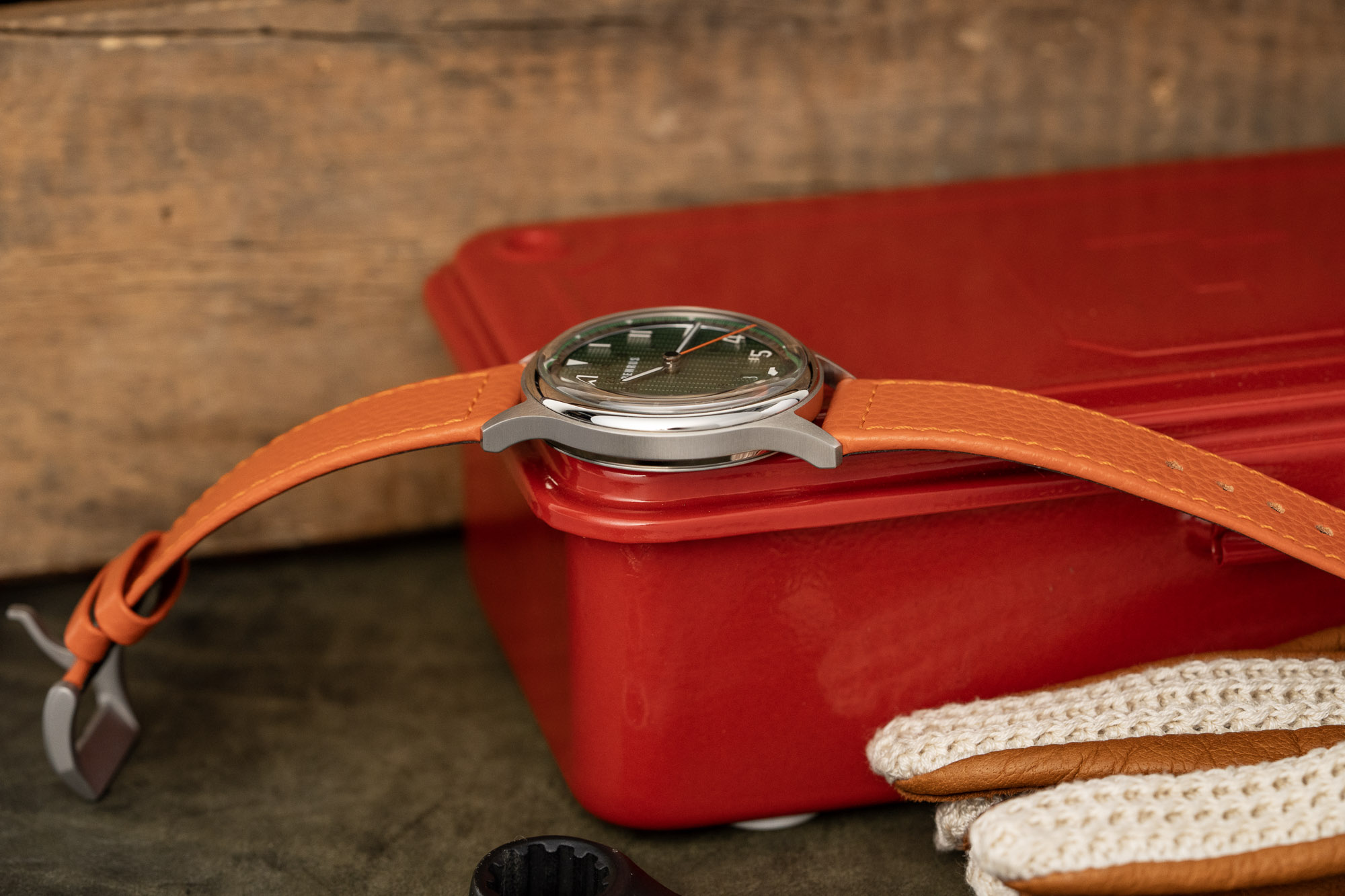 In Bullitt, McQueen famously wore a BENRUS #3061, and it’s that spirit — rugged, sharp, and unmistakably American — that drives this modern interpretation. The Highland Green dial echoes the shade of the legendary Mustang GT Fastback, with a textured surface that maps the streets where cinema’s most famous car chase roared to life. A bold orange seconds hand and 60-minute indicator nod to the car’s speedometer, while for the first time, BENRUS introduces a California dial—with ton-sur-ton 24-hour numerals that frame the brand’s owl emblem at 12 o’clock.