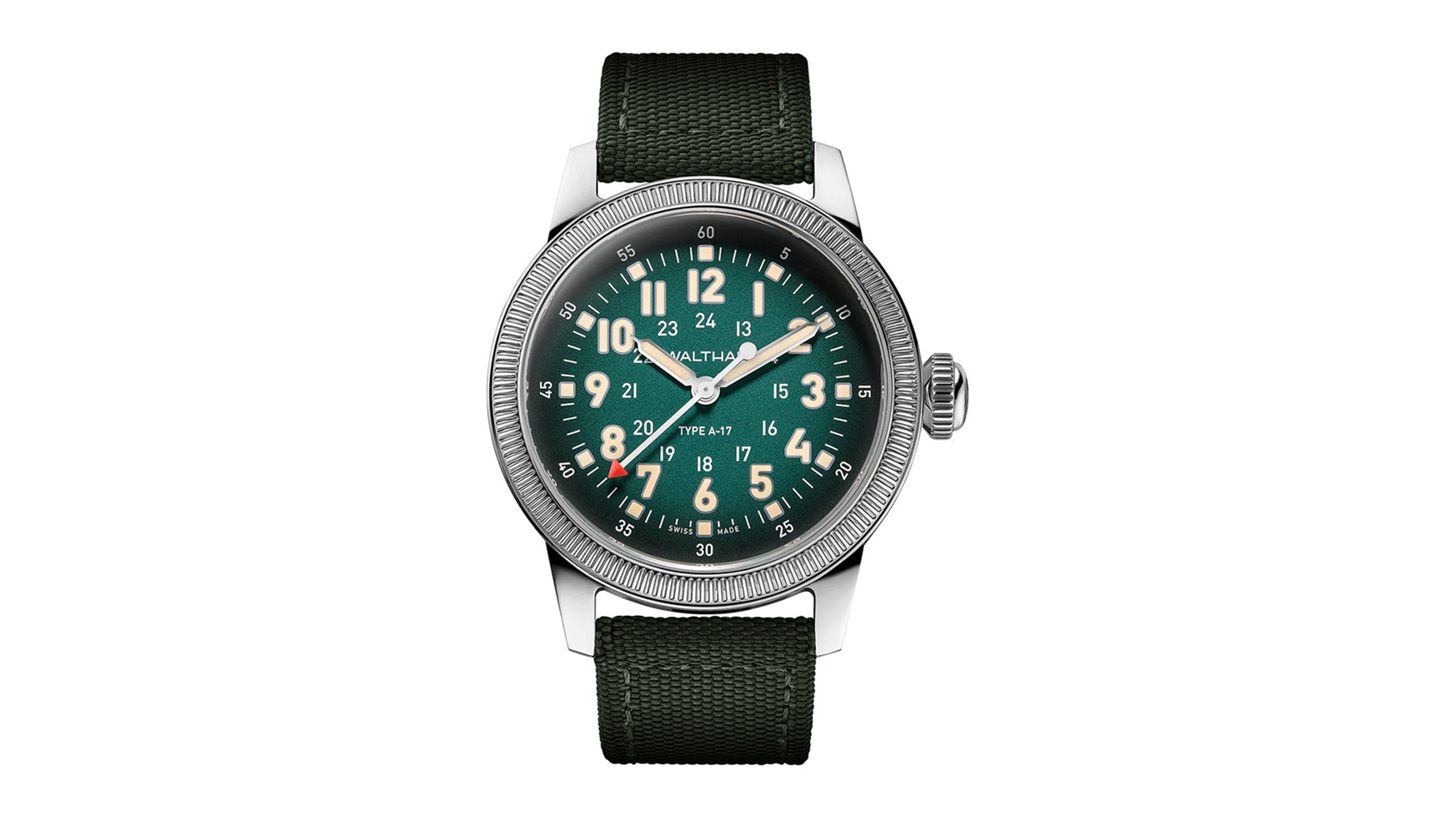 The Waltham A-17 Pilot Collection is a faithful revival of one of military aviation’s most respected tool watches. Originally developed under the MIL-W-6433 specification in the late 1940s, the A-17 was issued to U.S. Air Force navigators and pilots during the early Cold War. This modern interpretation holds true to that legacy, blending rugged performance, sharp legibility, and clean mid-century military aesthetics. The signature 24-hour inner track and fully lumed numerals evoke the clarity and purpose of cockpit instruments, while contemporary upgrades ensure the watch is ready for today’s daily missions—on land or in the sky.